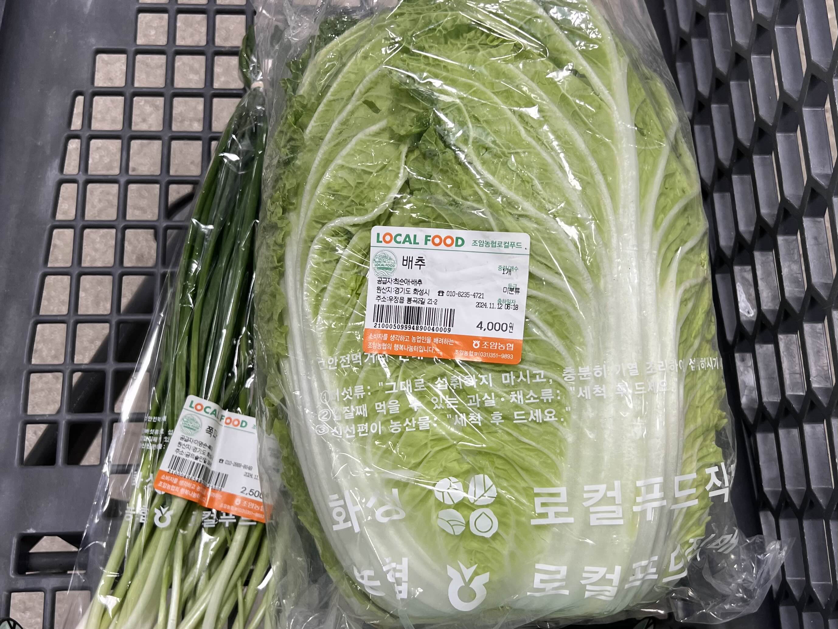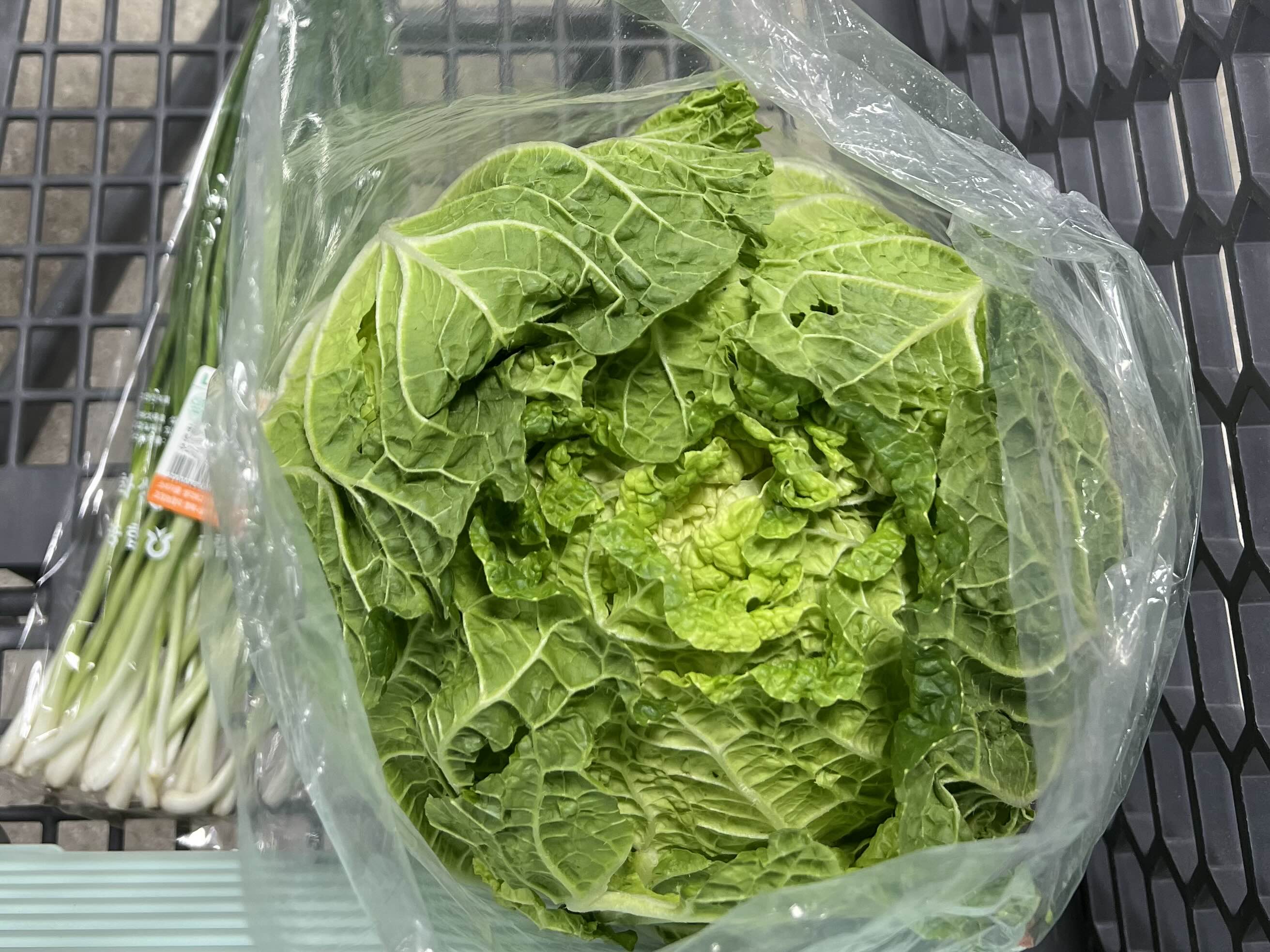마트에 갔더니 시원한 맛을 내는 파란잎과 고소한 맛을 내는 노란잎이 적절히 섞인 예쁜 배추가 있어 한 포기 사왔다.