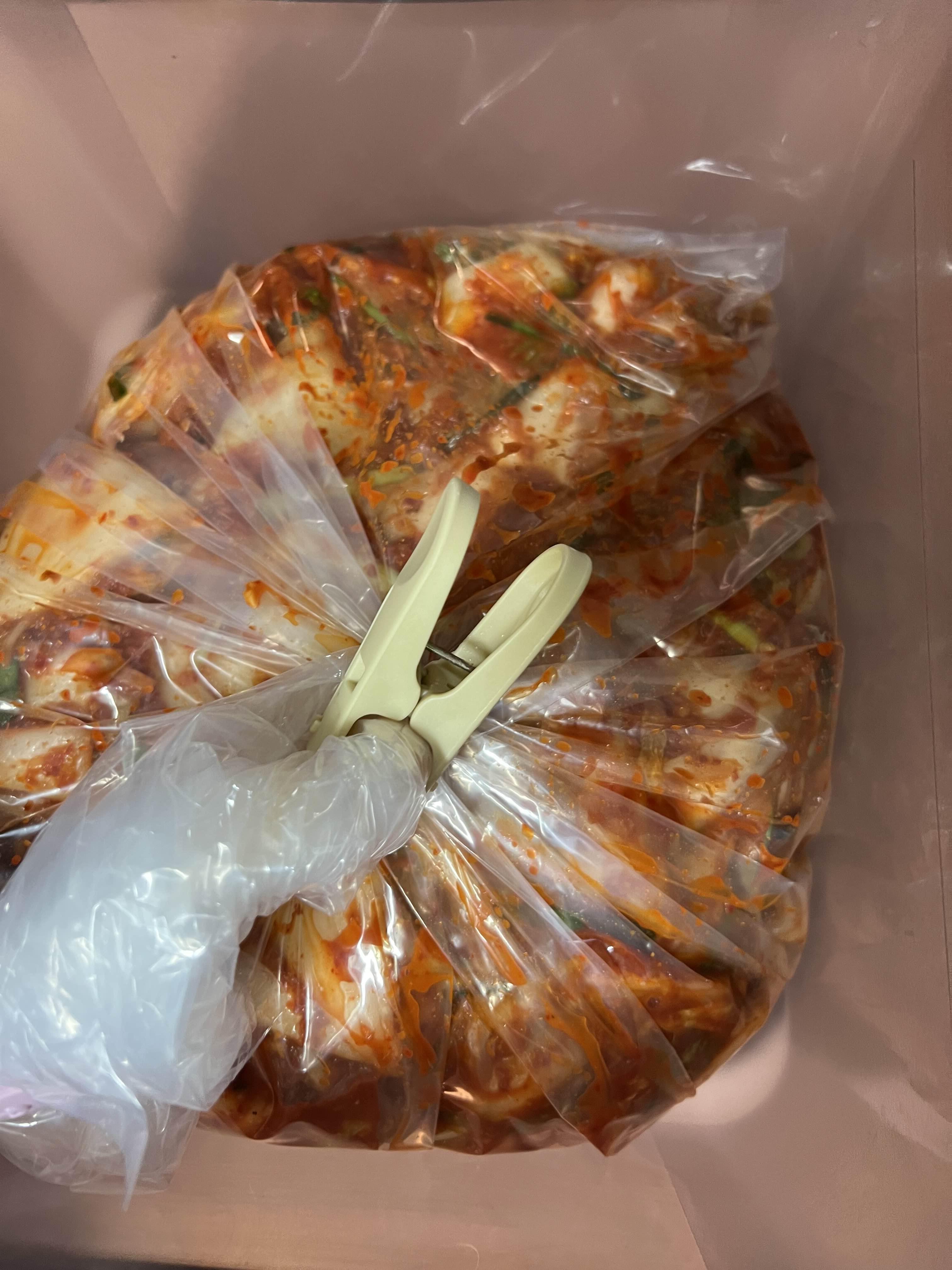 김장비닐에 담아 베란다 같은 곳에 하루 놔두고 김냉으로~