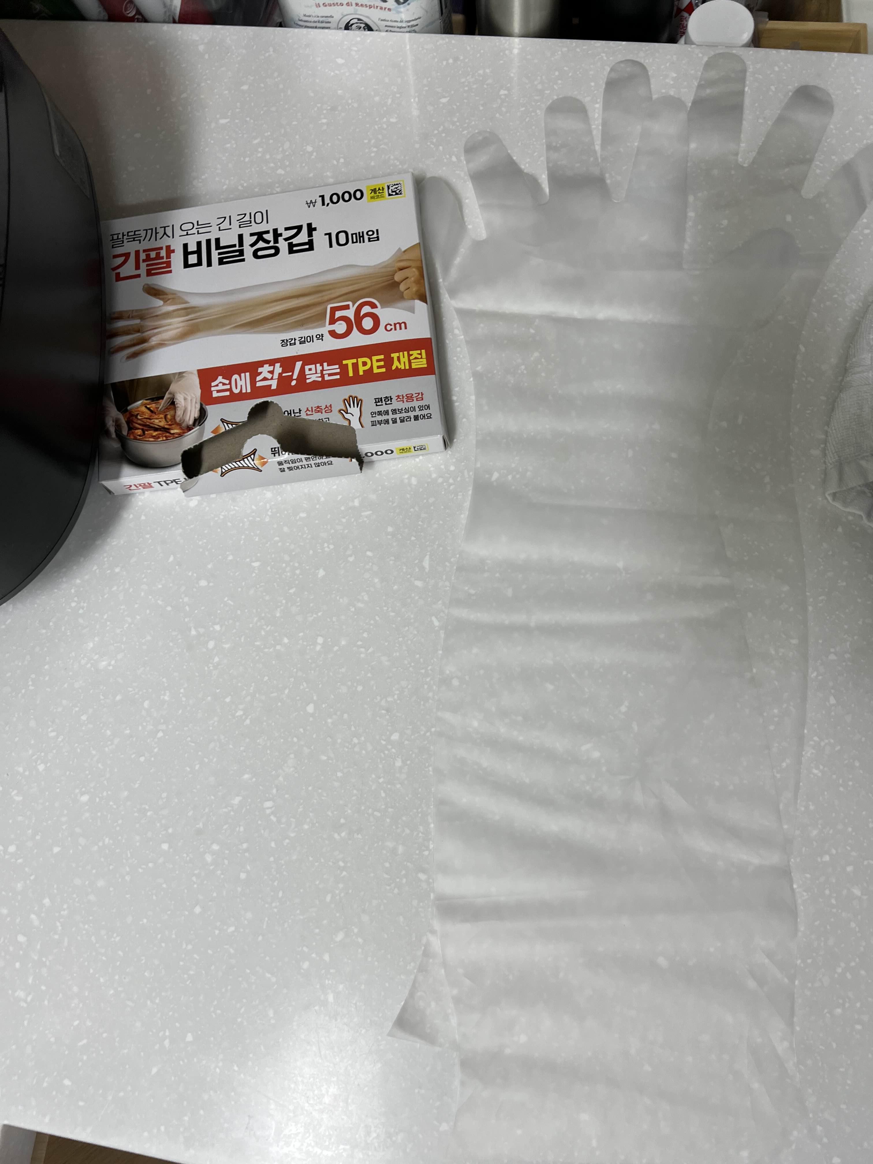 팔뚝까지 오는 엄청 긴 길이라 김치 담글 때 팔에 양념이 뭍지를 않는다!!