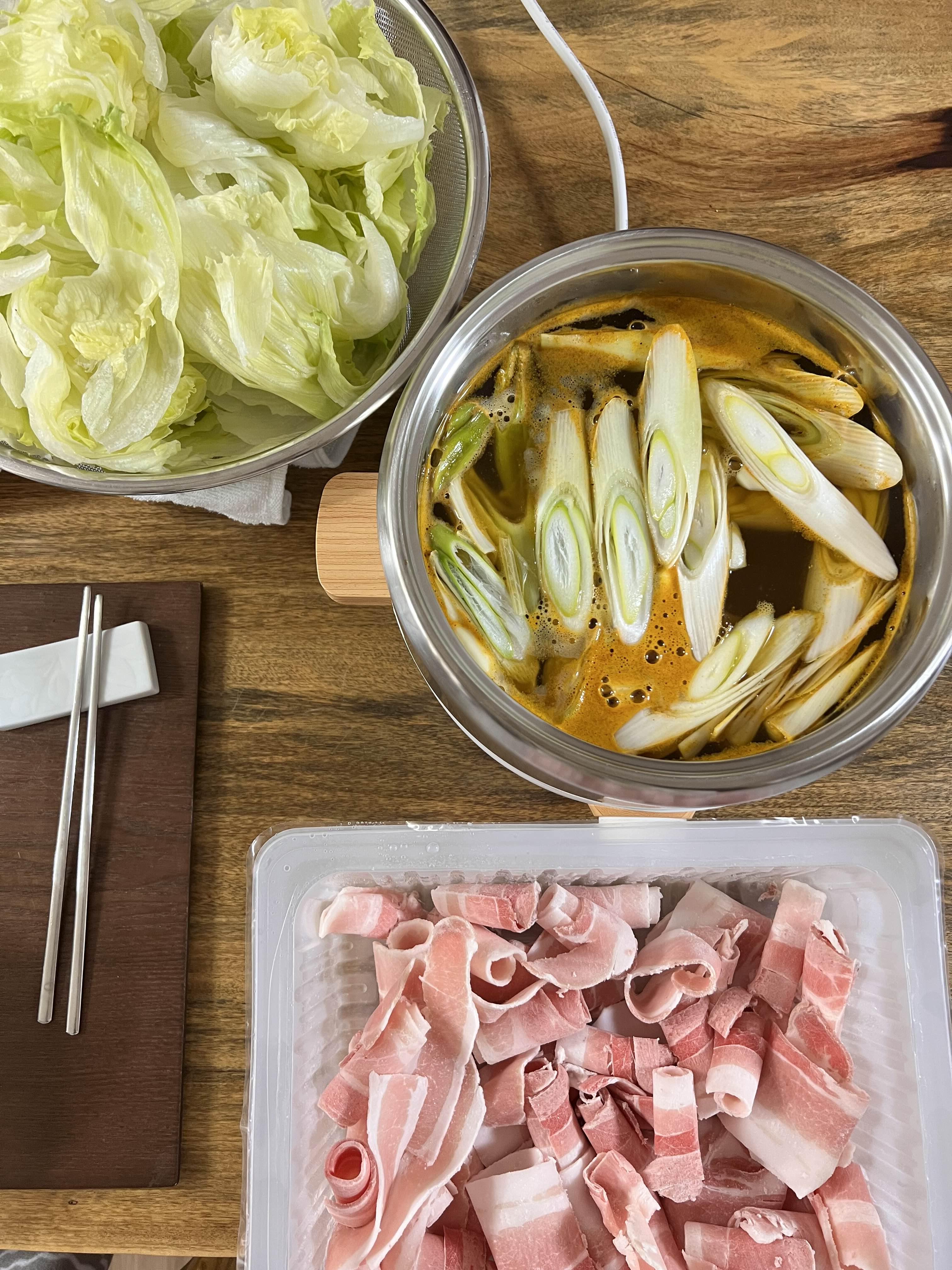 카레 샤브에 적셔 먹는 양상추 아삭하고 진짜 맛있다.