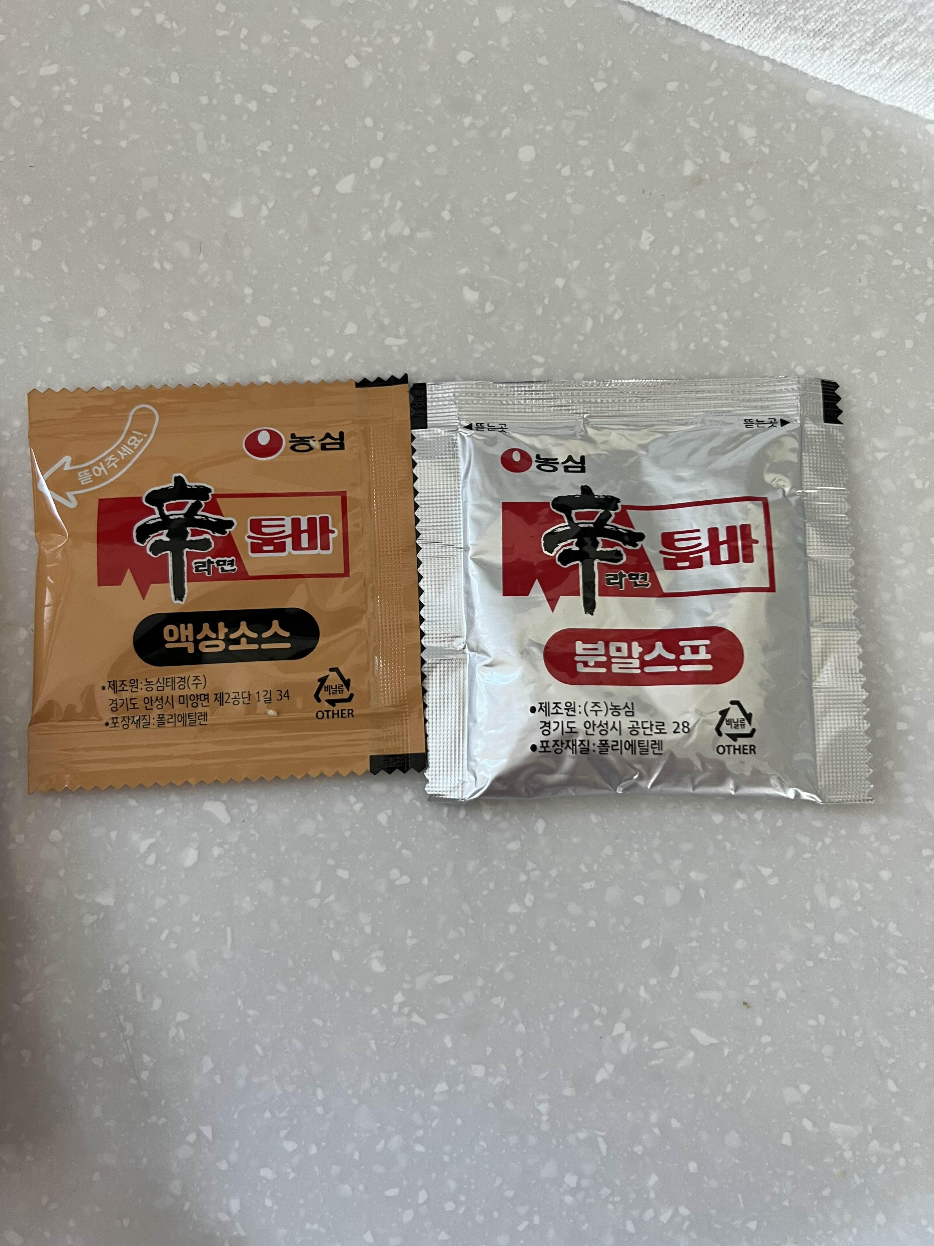 짜파게티처럼 물 부어 면 익히고, 물 따라 내고 스프 2개를 부어 섞으면 된다.