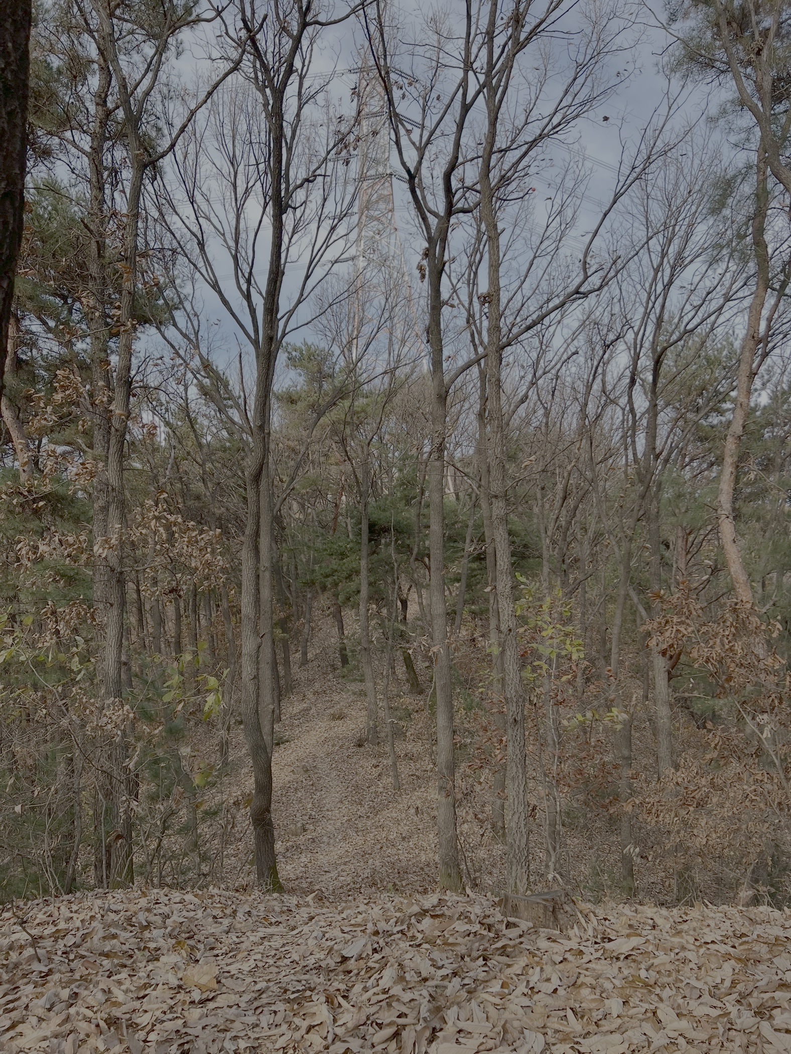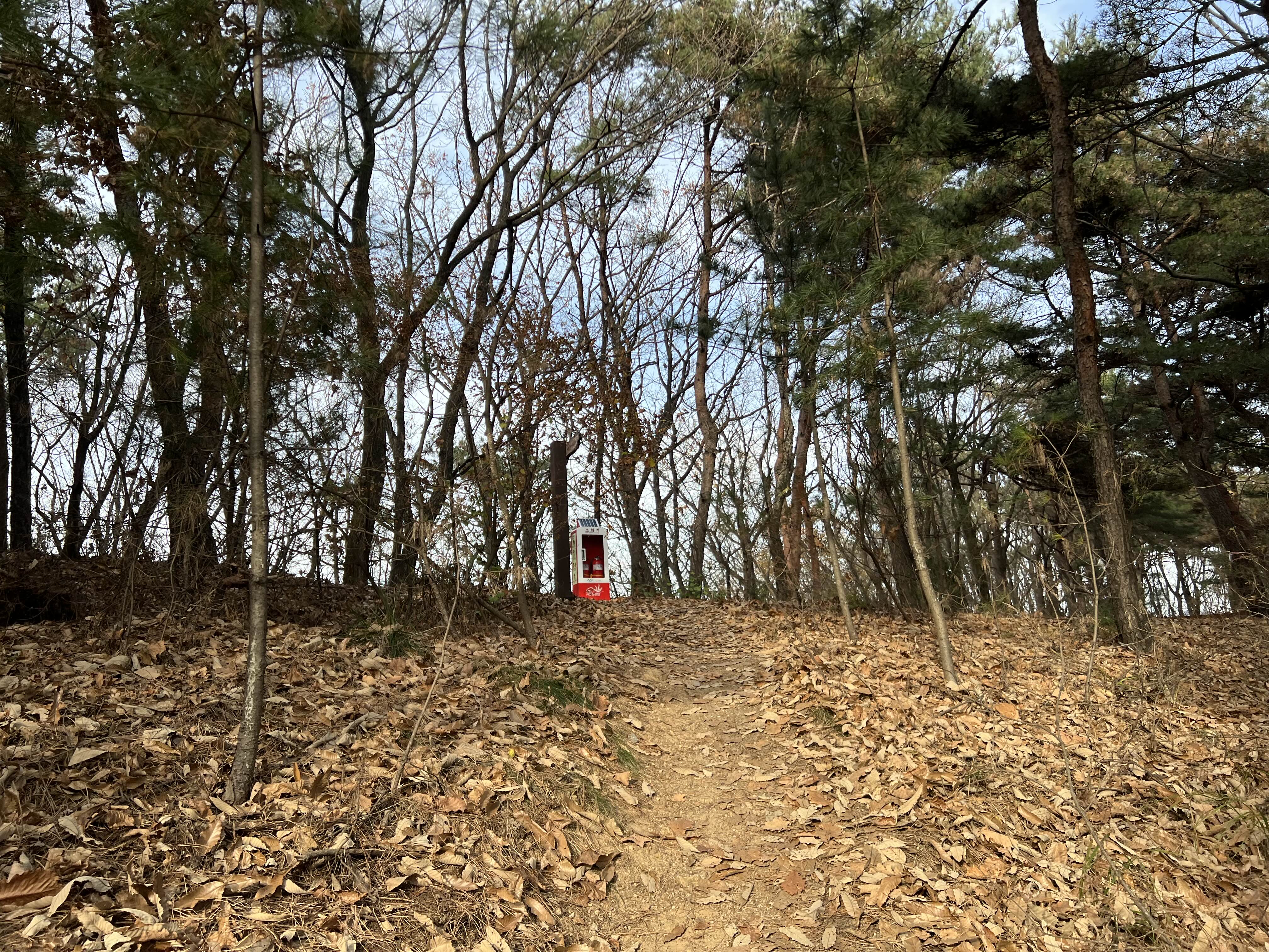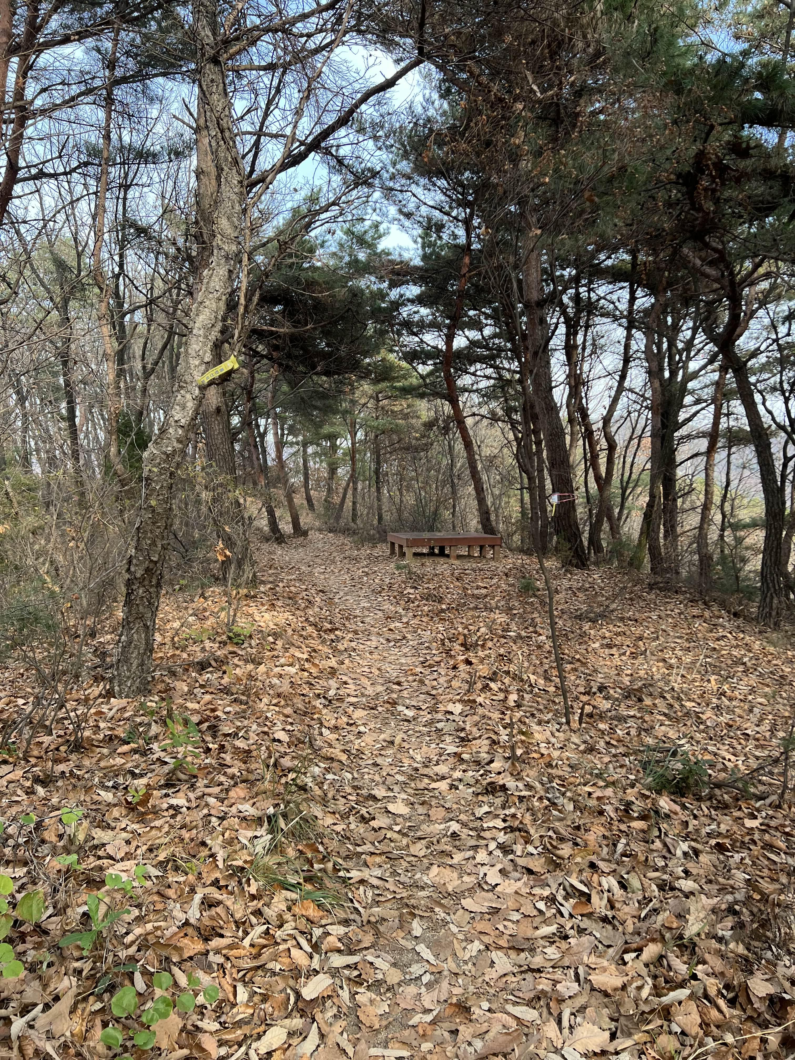 입구 10미터 정도만 오솔길이 나있고 그 담부턴 낙엽 때문에 잘 안 보인다
