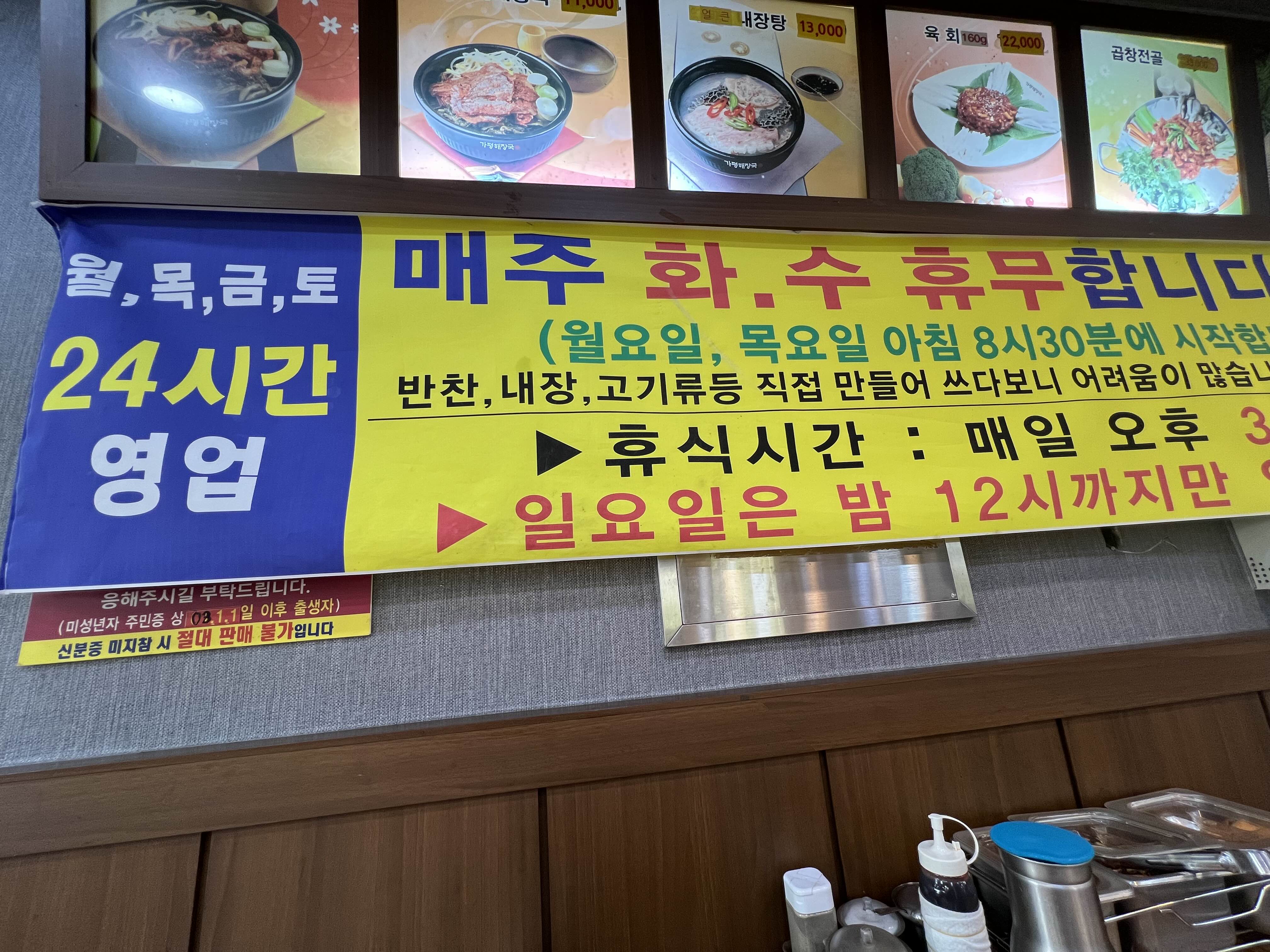 가평해장국, 소고기해장국, 내장탕, 양곰탕 엄청 골고루 다 시키신다. 신기했다. 메뉴가 다 맛있다니