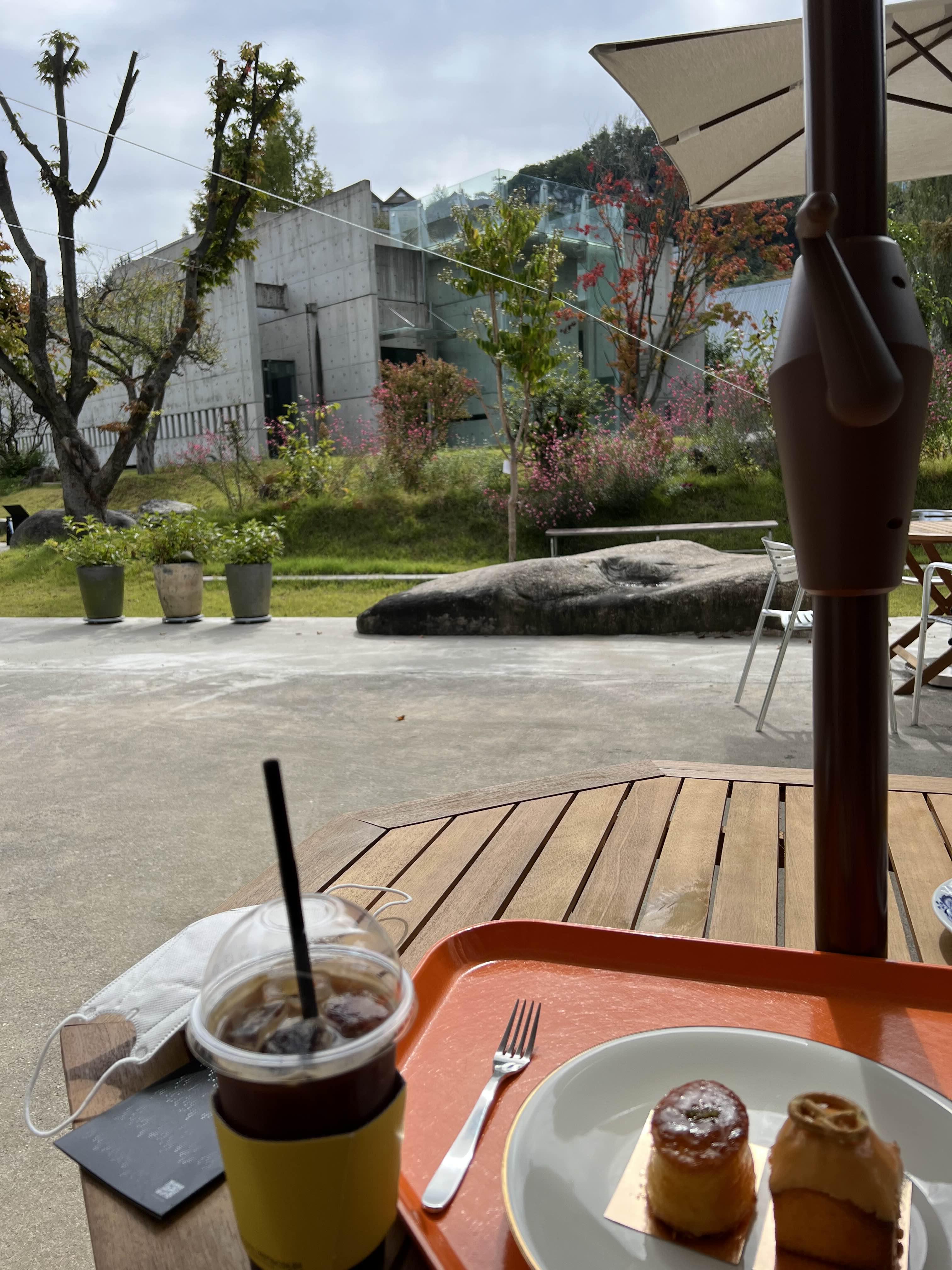 카페 바깥에 앉아 커피 한 잔 하고 전시를 보러 가기로 했다