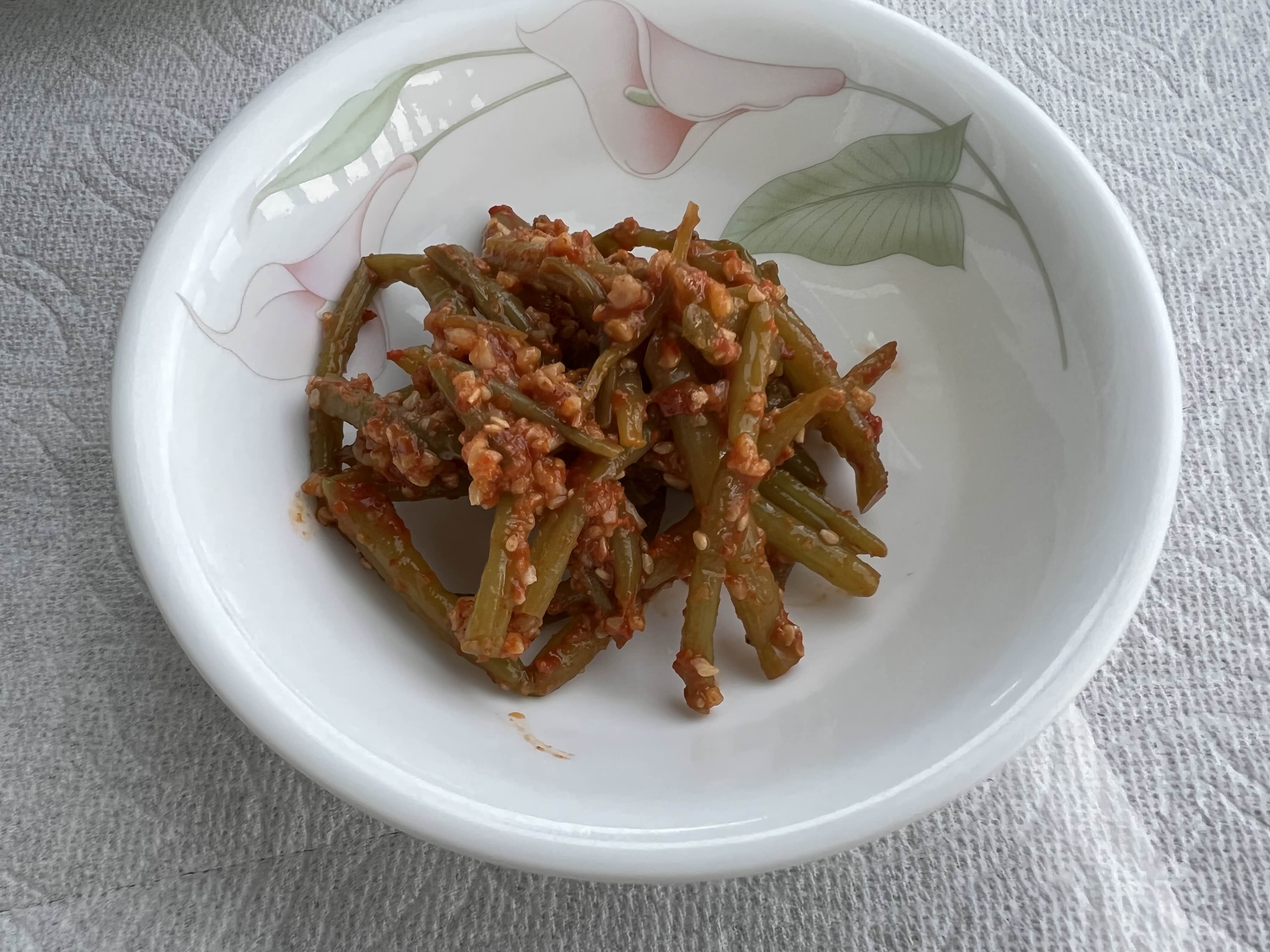 고구마순 김치를 담가서 들고 갔는데 대패삼겹살이랑 같이 먹으니까 또 맛있다.
