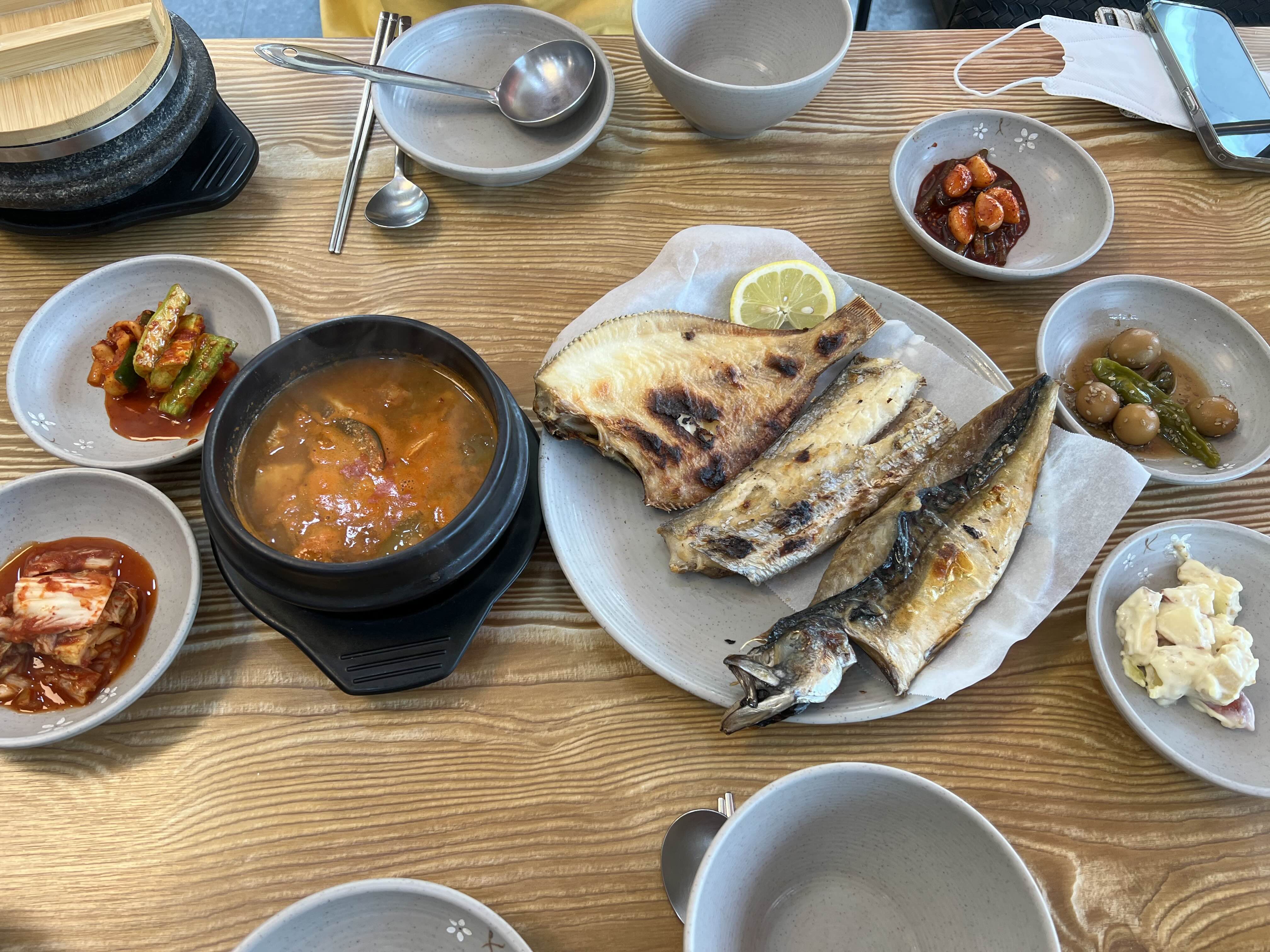 용인 오가네생선구이집에서 아점을 먹고 소백산 자연휴양림으로 간다.