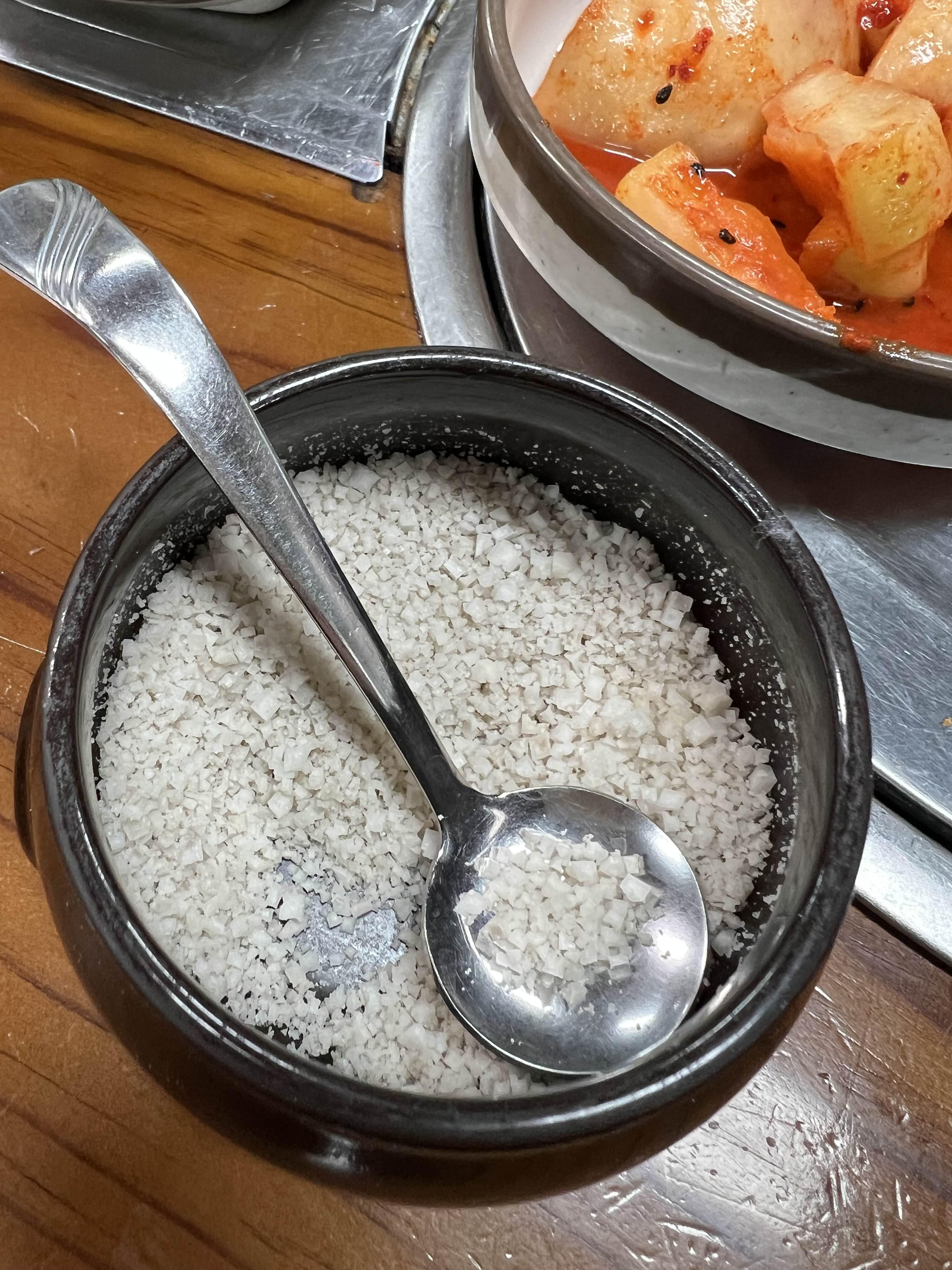 맨입에는 살짝 단데, 이게 곰탕이랑 먹으니 마구 들어간다.