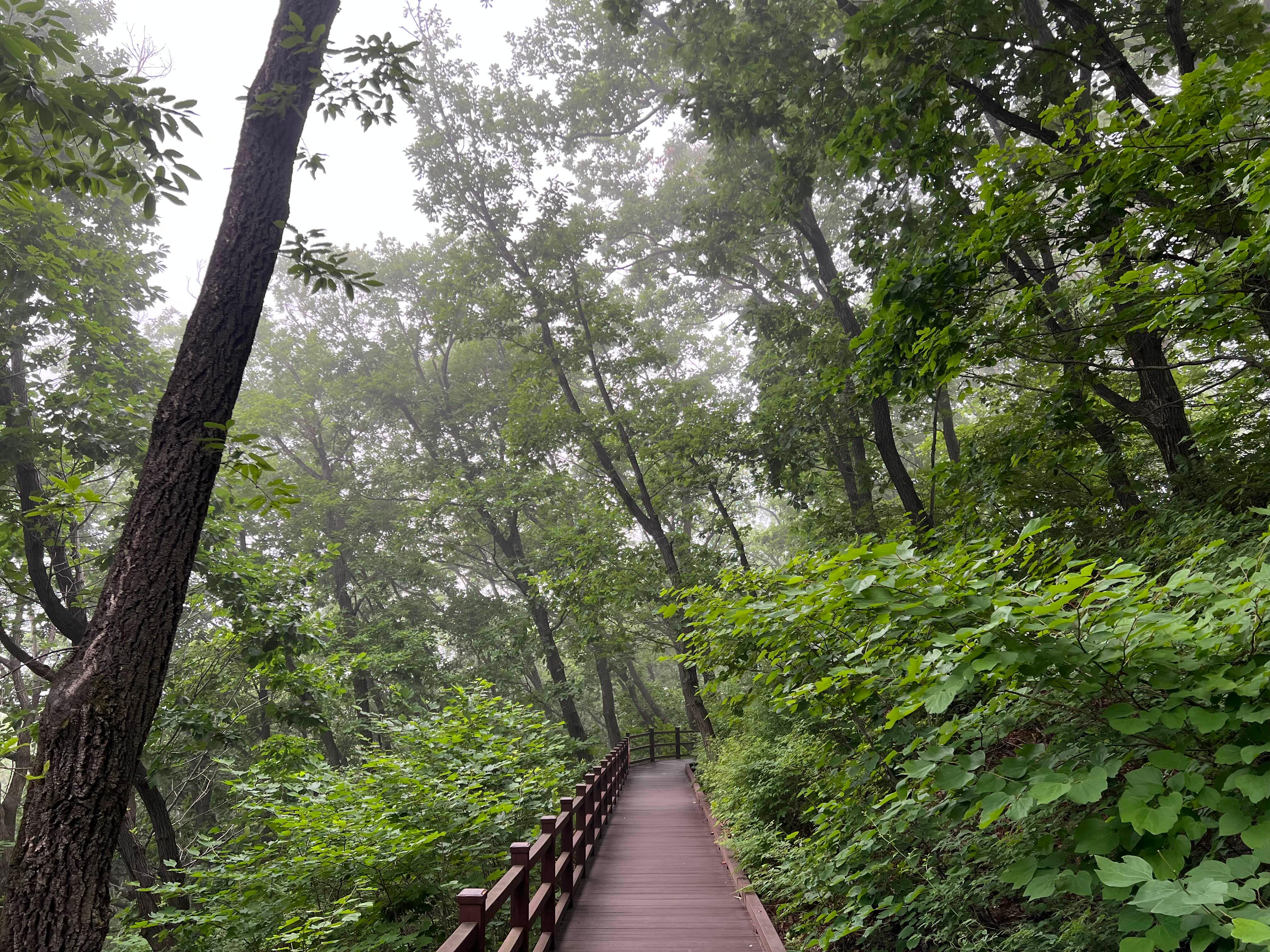 오전에 눈을 뜨니 안개가 자욱하다. 걷힐 기미도 안 보이고 해서 ‘마실치유 숲길(데크로드)’를 걸으러 나갔다.
