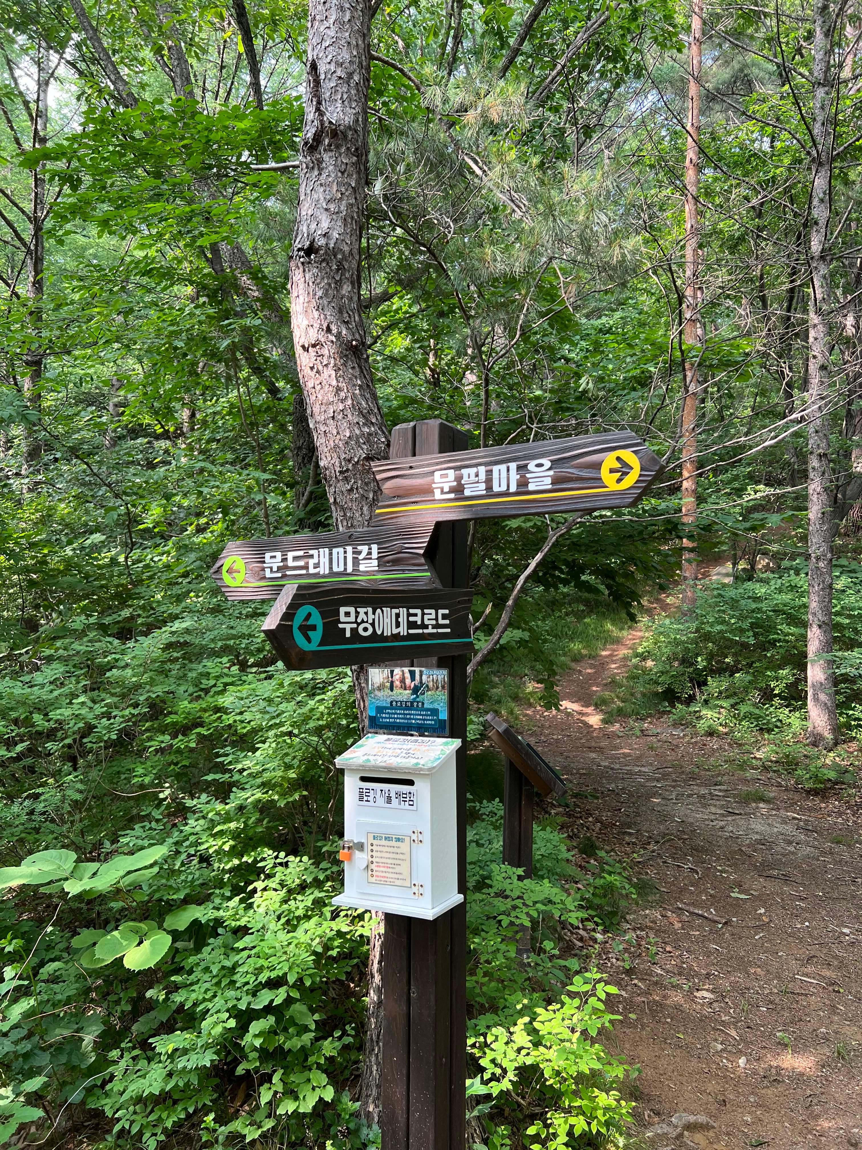 네비에 ‘국립산림치유원데크로드주차장’을 찍고 가면 된다. 문필마을에서 차로 한 4-5분이다.