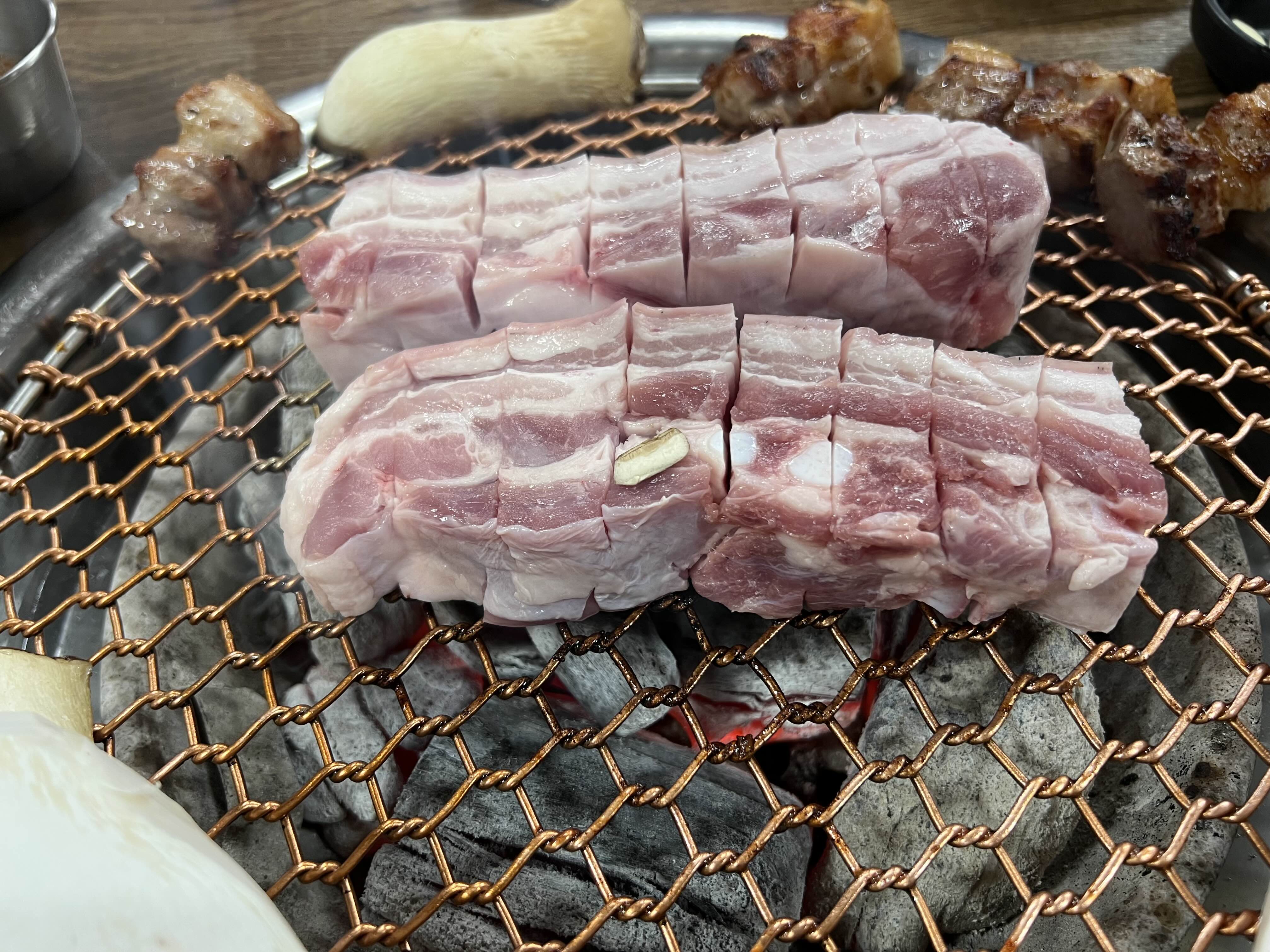 두툼하다보니 너무 고기가 입안에 가득해서 저 상태보다 조금 더 얇은 것이 우리 입맛엔 맞는 듯했다.