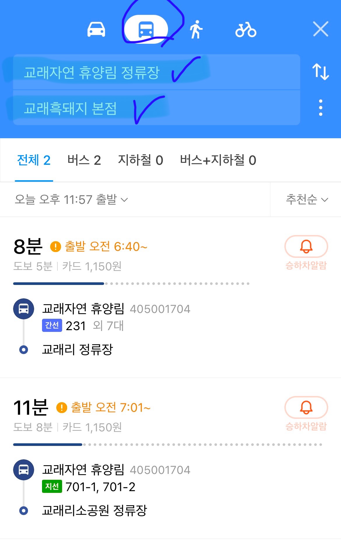 카카오맵에서 검색하면 버스가 오는 시간도 나오고 편리하다.