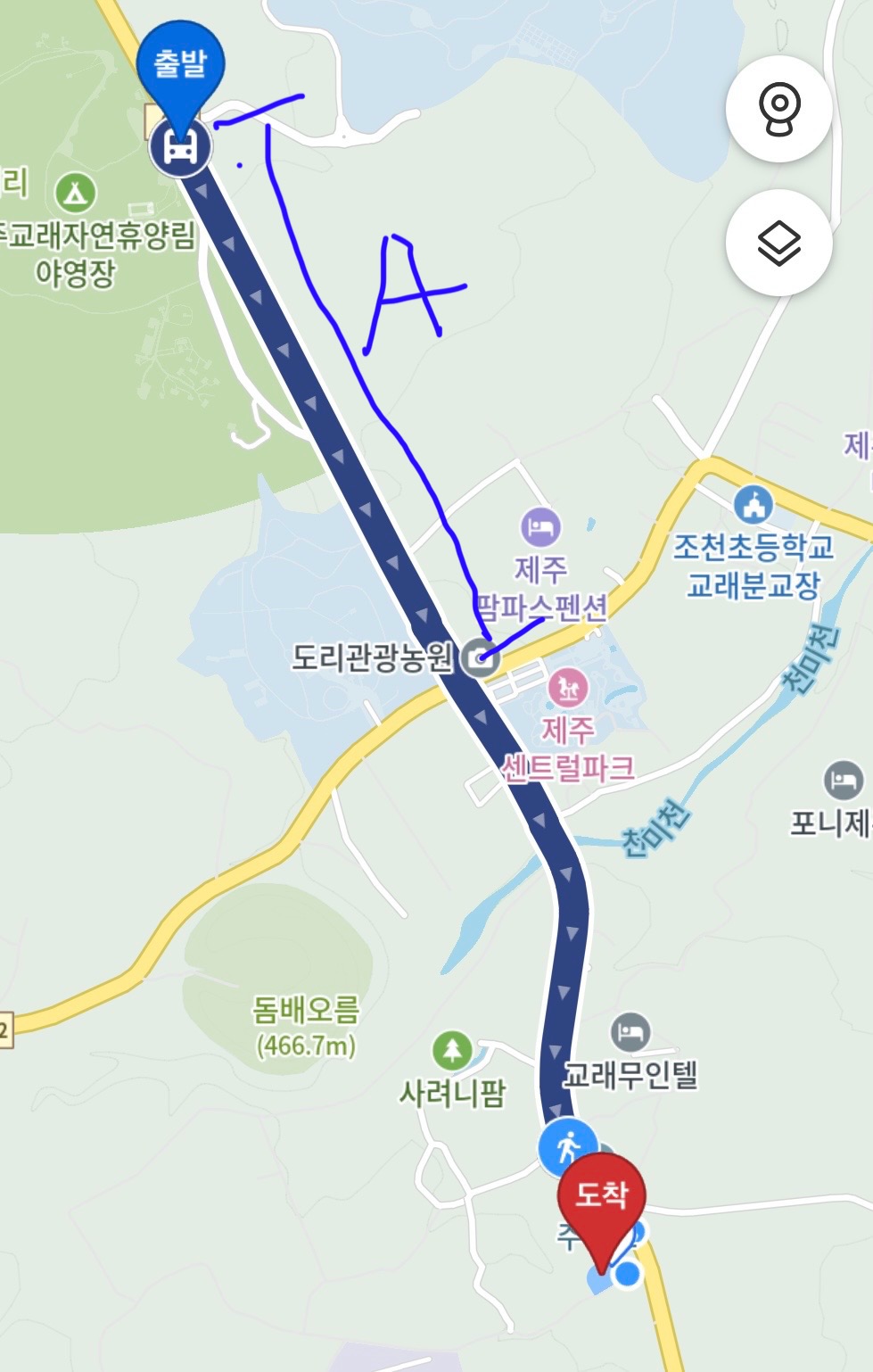 걸어갈 수도 있지만 교래자연휴양림부터 사거리까지가 아주 어둡고 인도가 없거나 부실해서