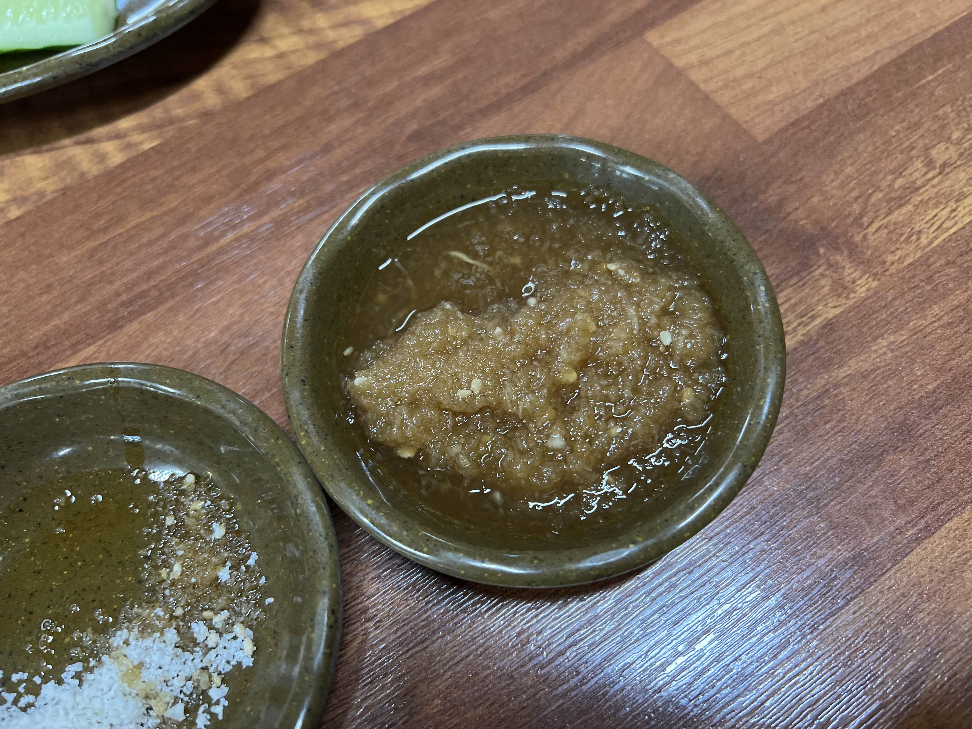 샤브샤브 양념장인데 마늘양념인데 무진 맛난다