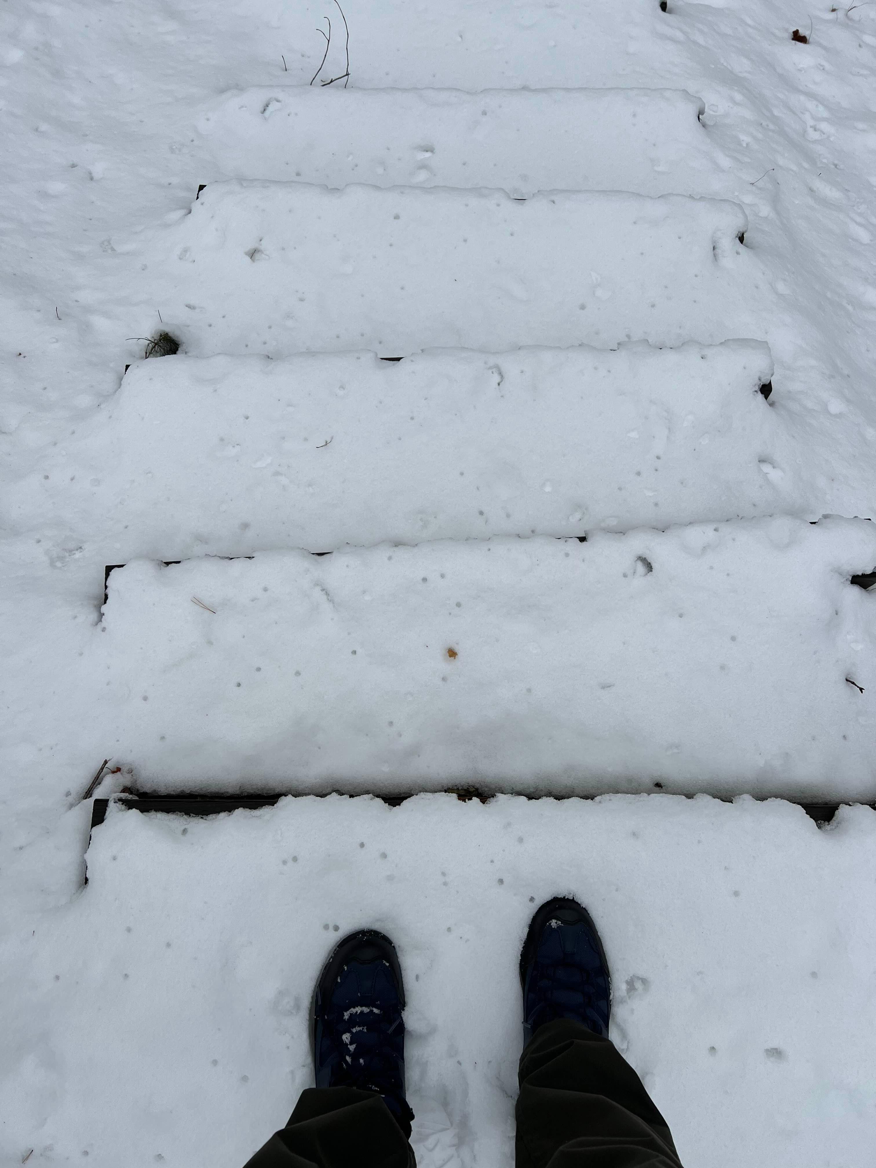 아침에 눈이 쌓여서 아직 아무도 안 밟았나보다. 눈이 푹푹 들어가는 소리가 너무 좋다.