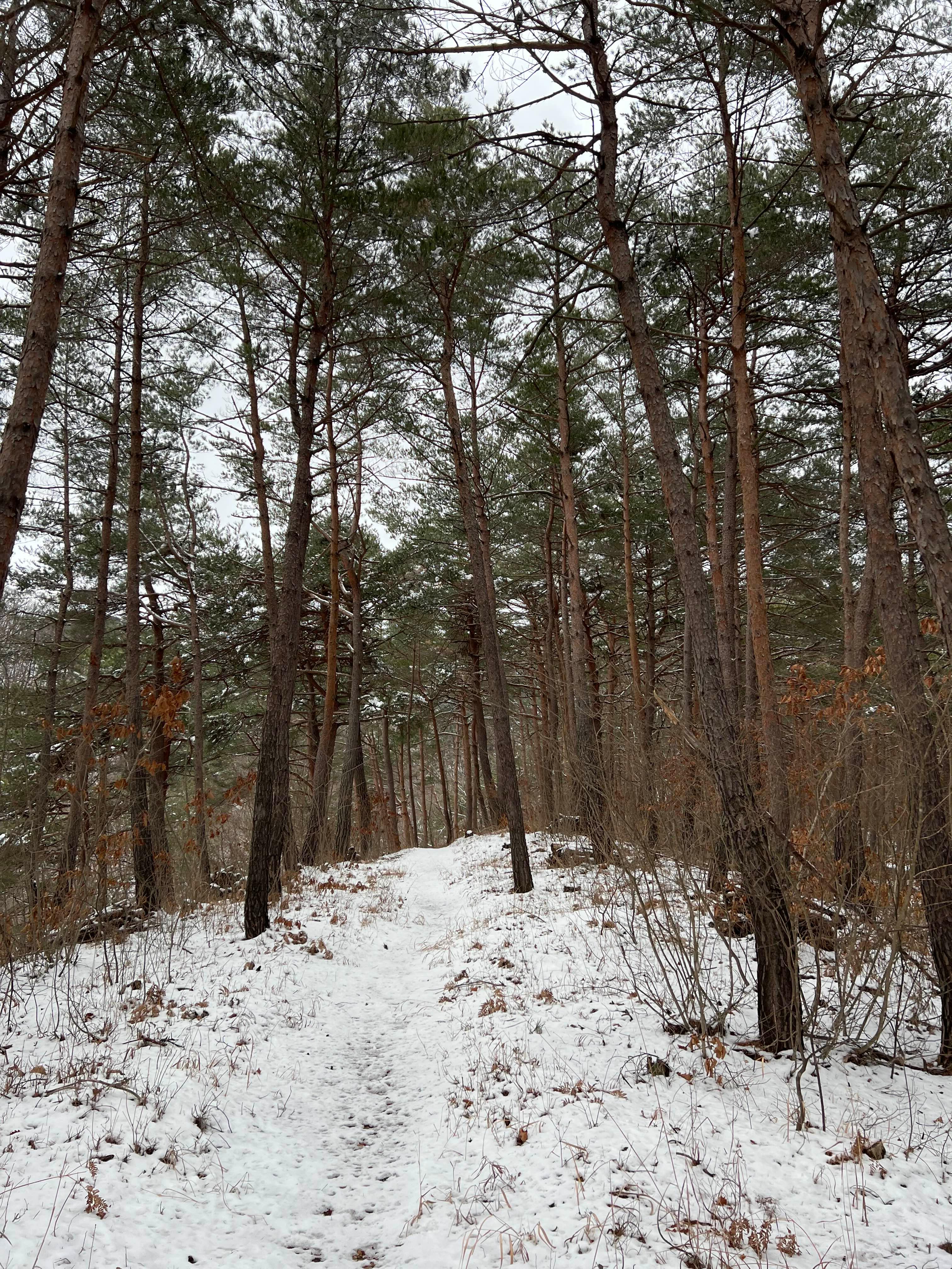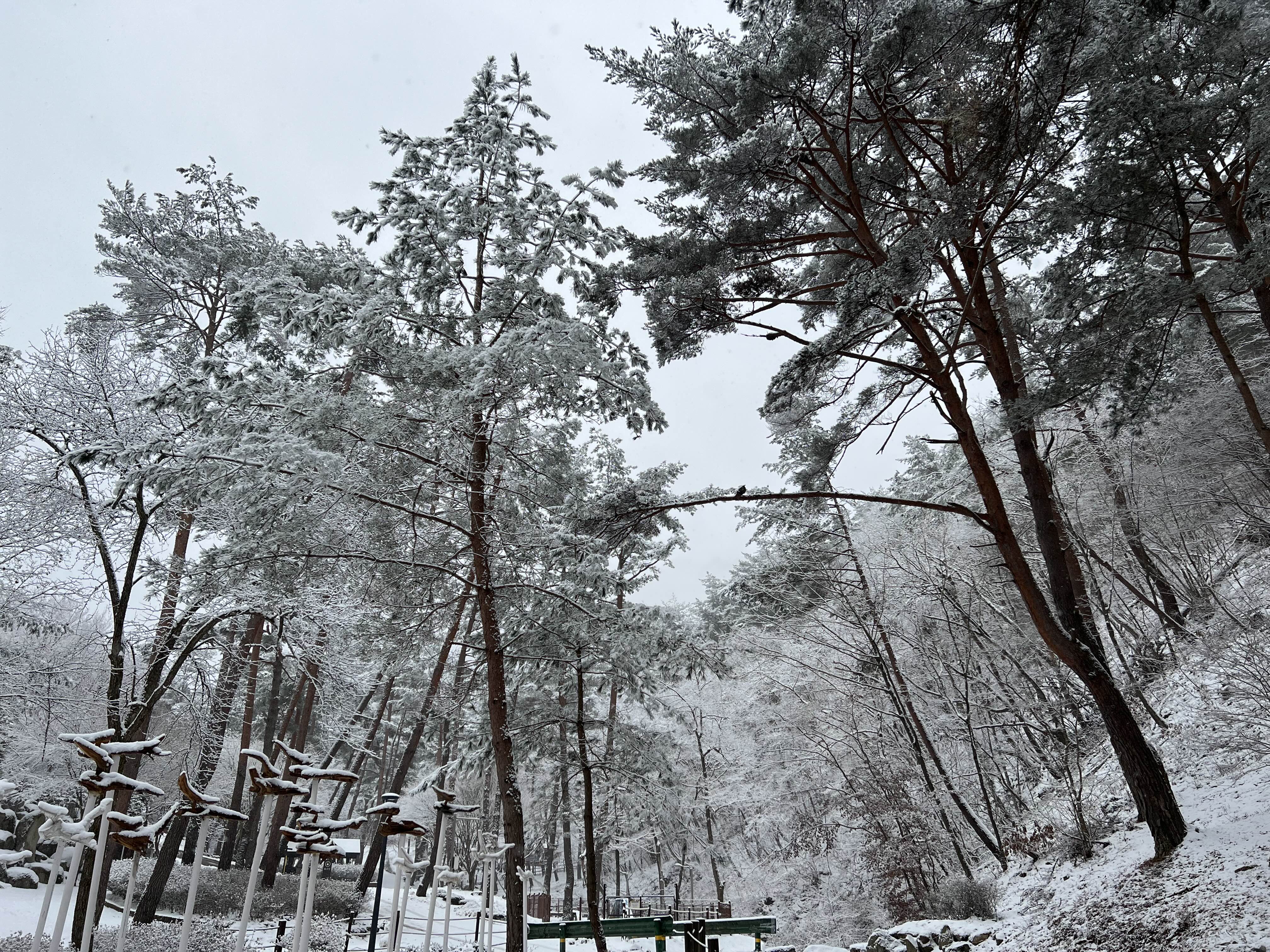 날은 흐리지만 눈이 쌓여서 기분이 좋다. 바베큐장 쪽으로 갔다.