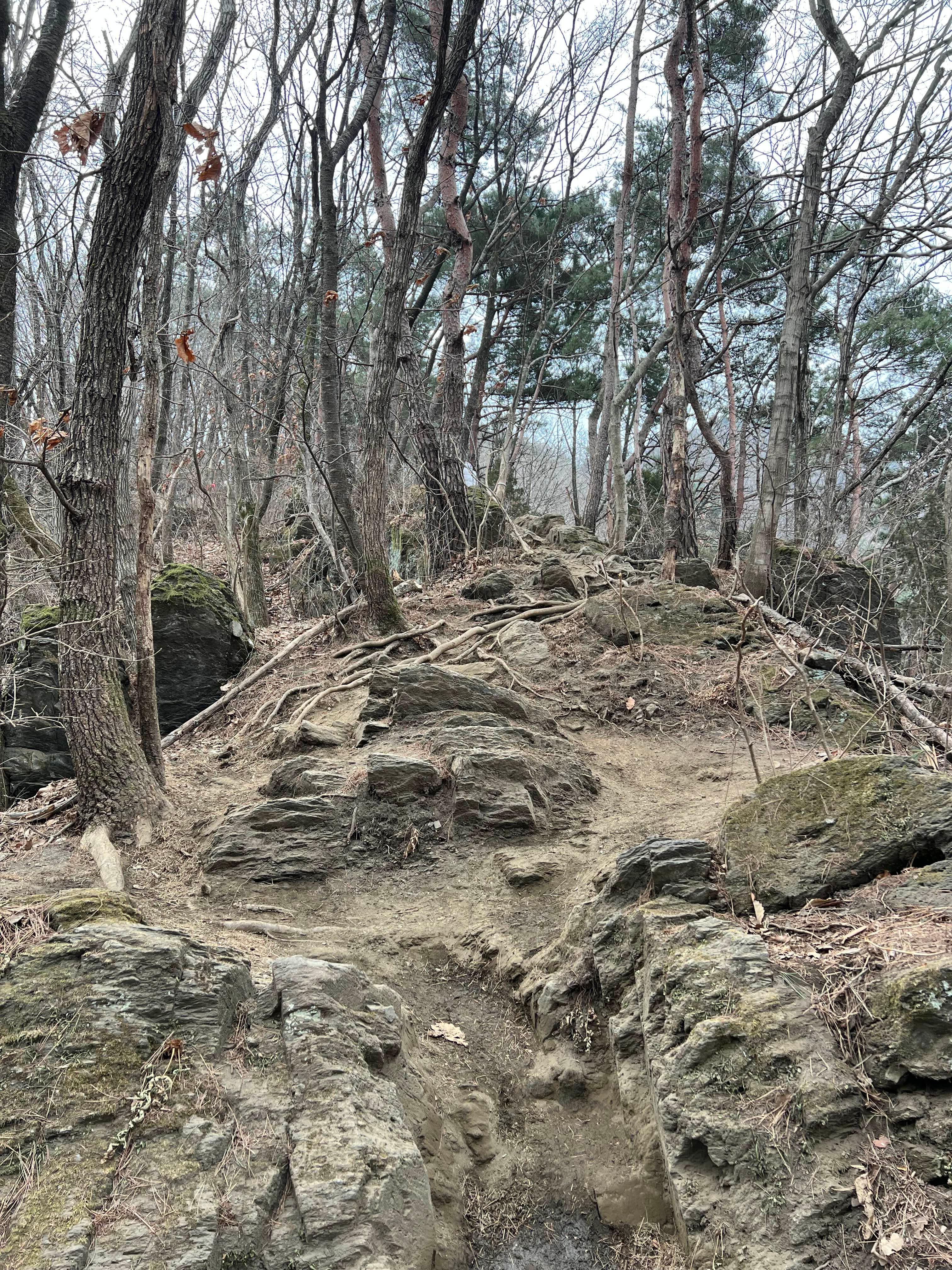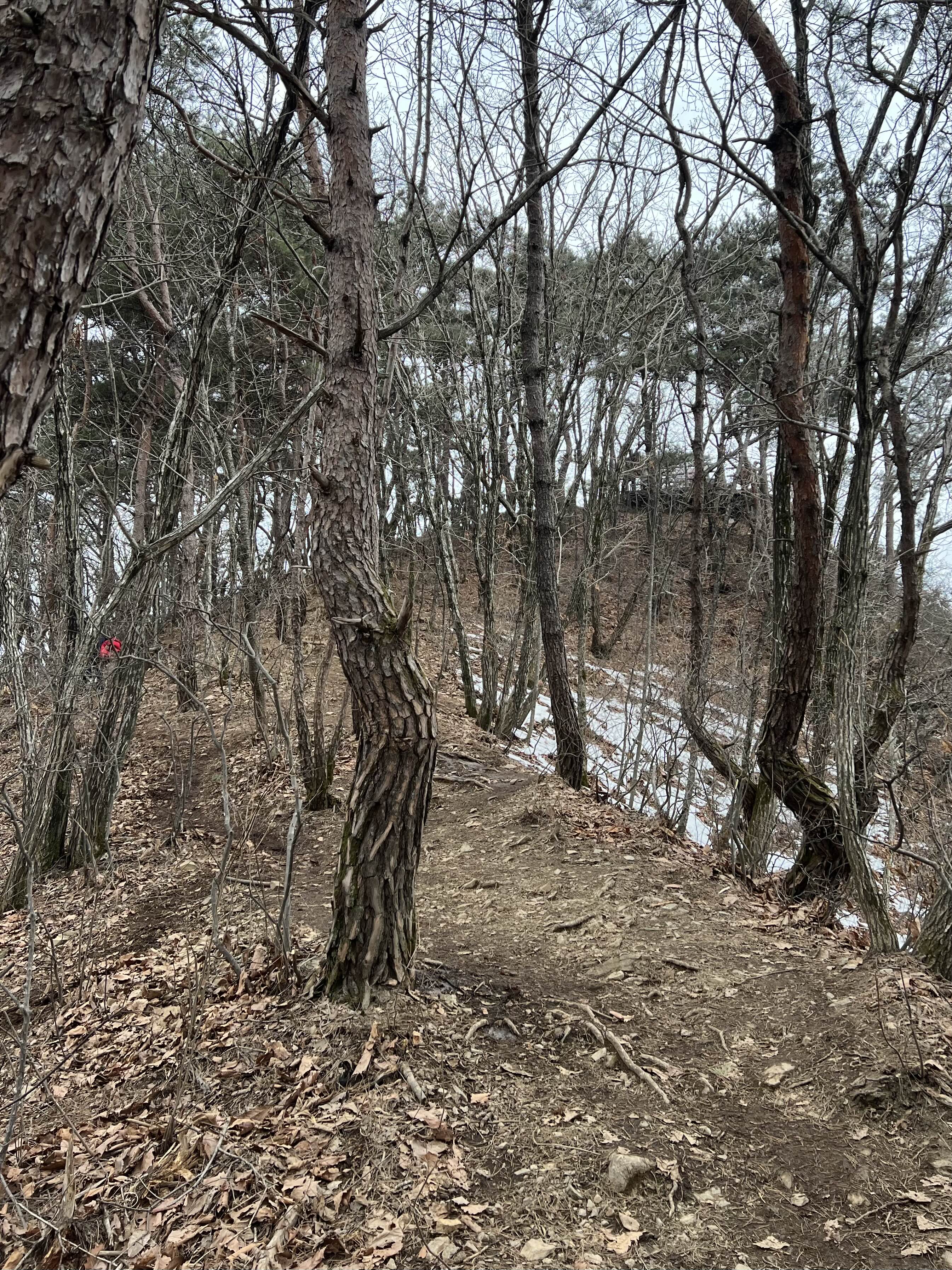 3월초라 눈이 녹아 등로에 진흙이 많은데 이게 너무 미끄러워 고생을 하는 구간이 있다.