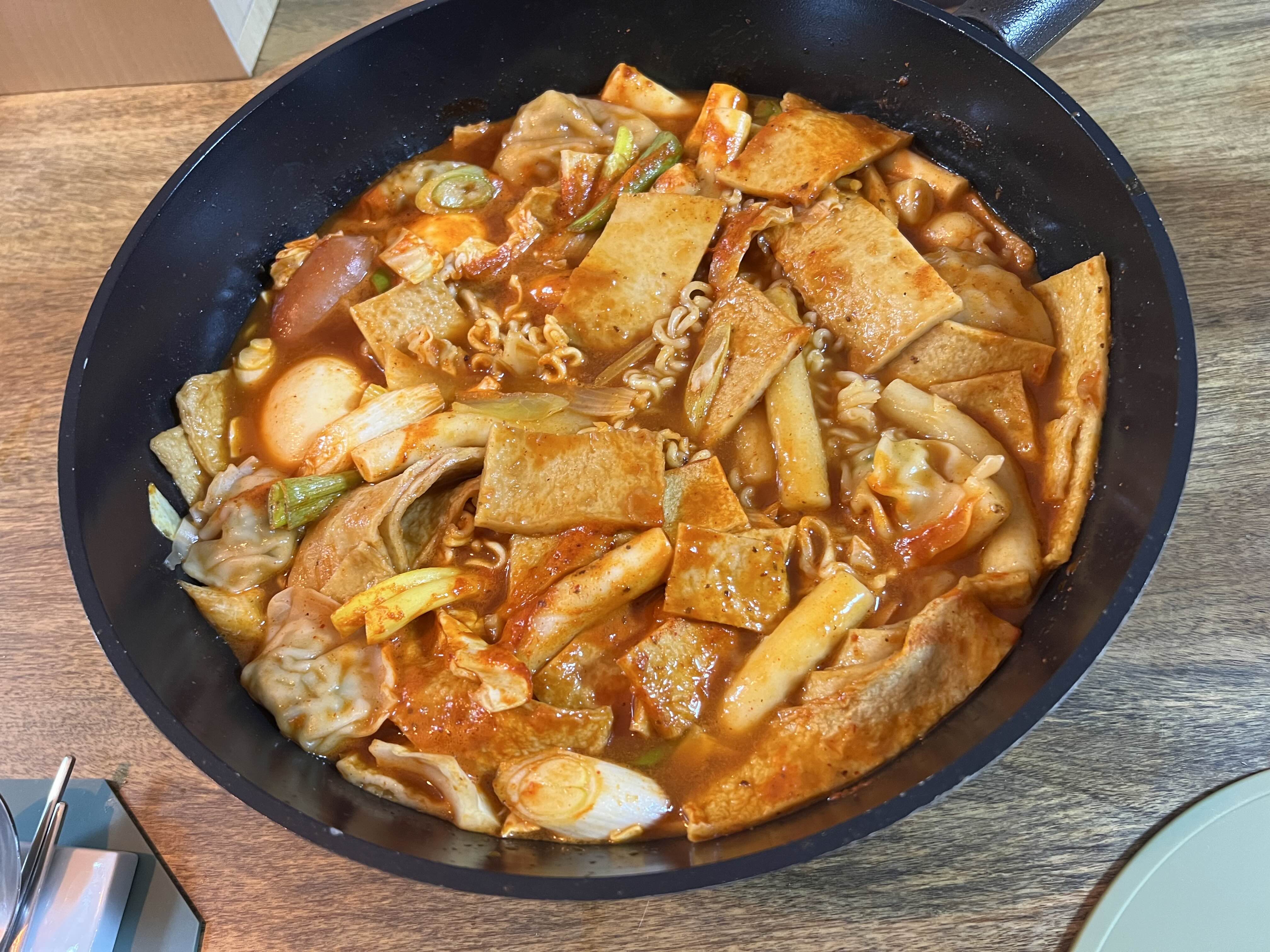 라면 사리가 넘 맛있다. 떡은 절반만 넣었다. 떡볶이의 그 치감을 안 좋아해서…