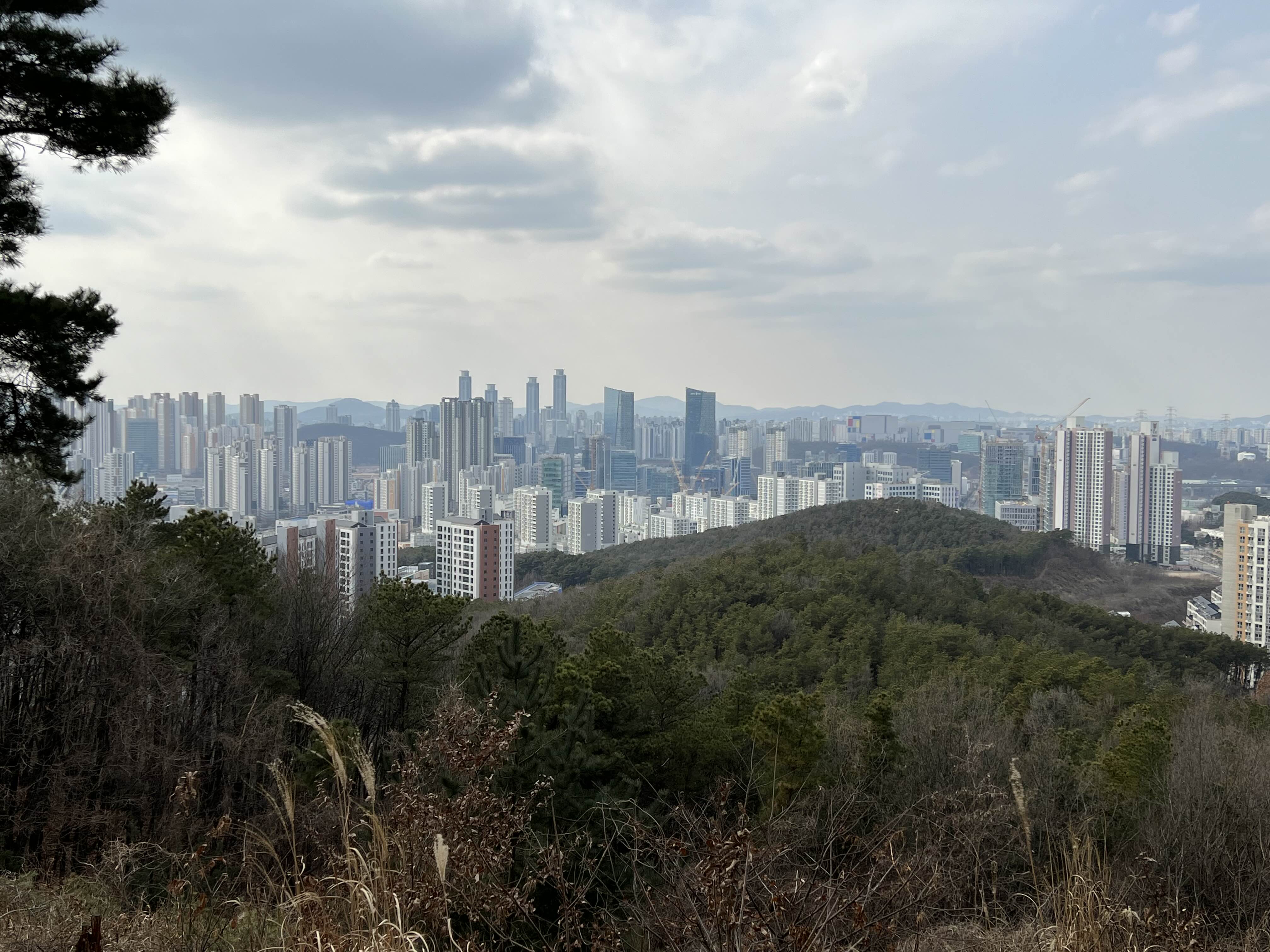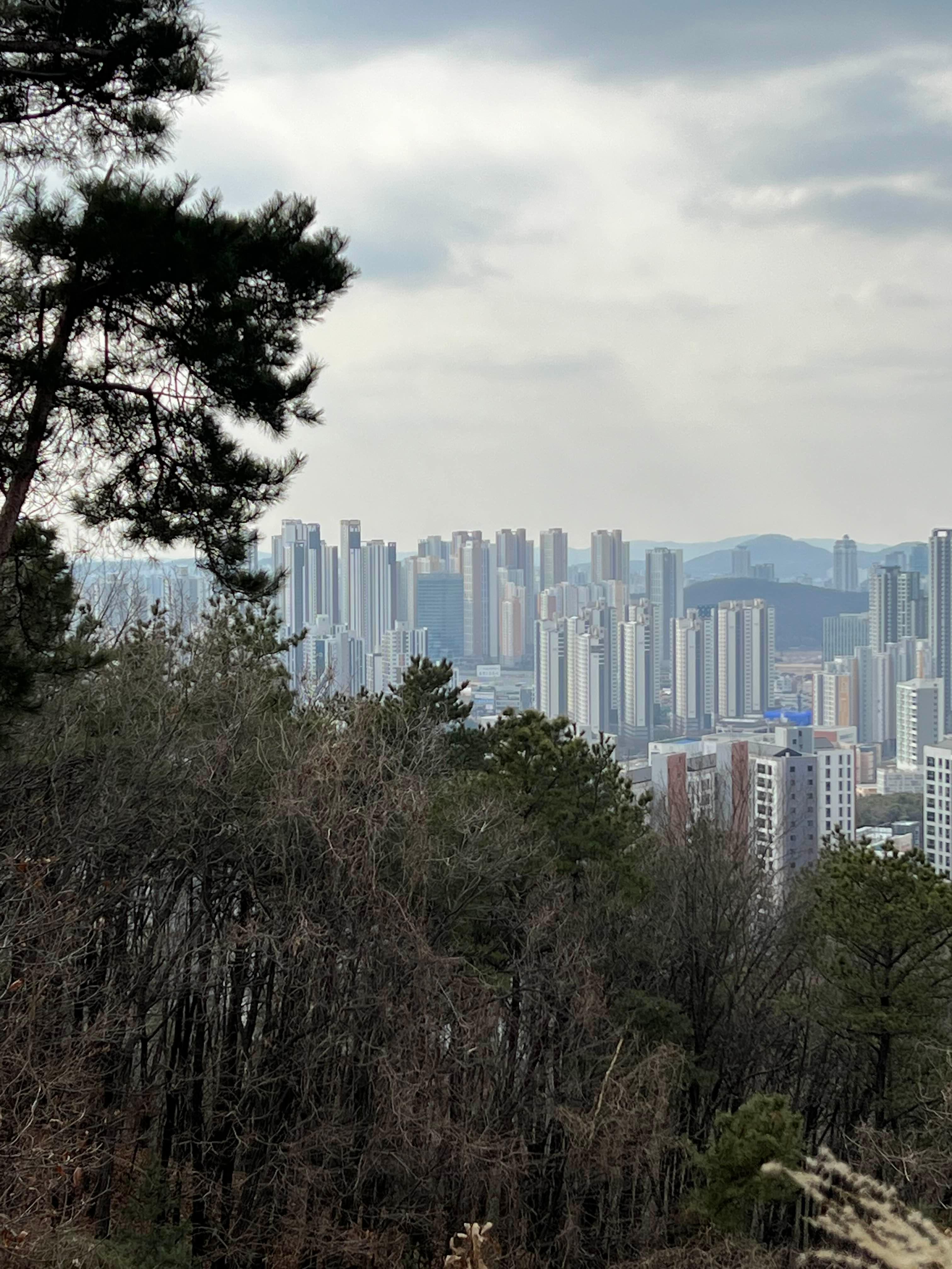 뷰 좋다. 앞에 보이는 선납숲으로부터 이어진 게 보인다.