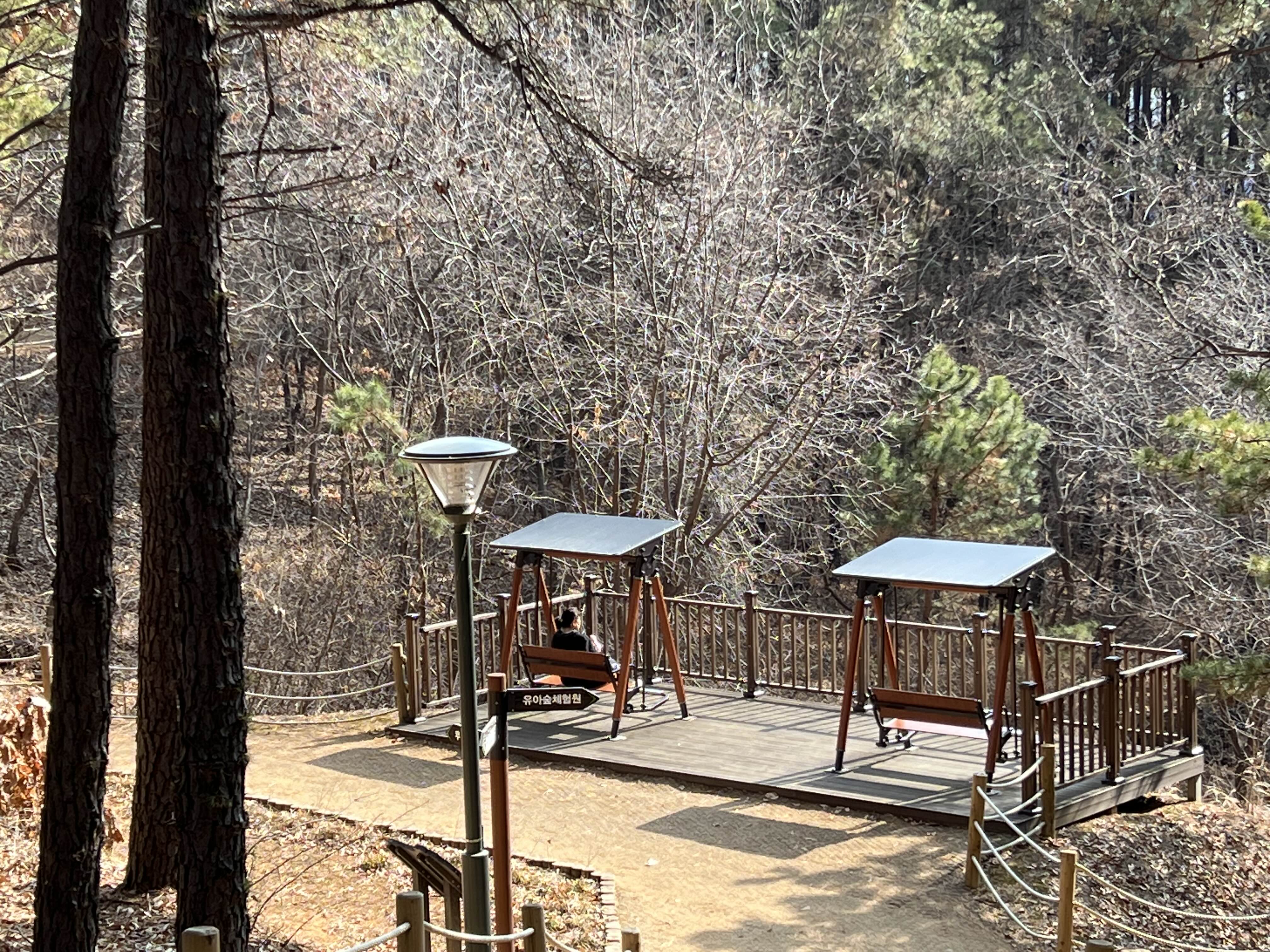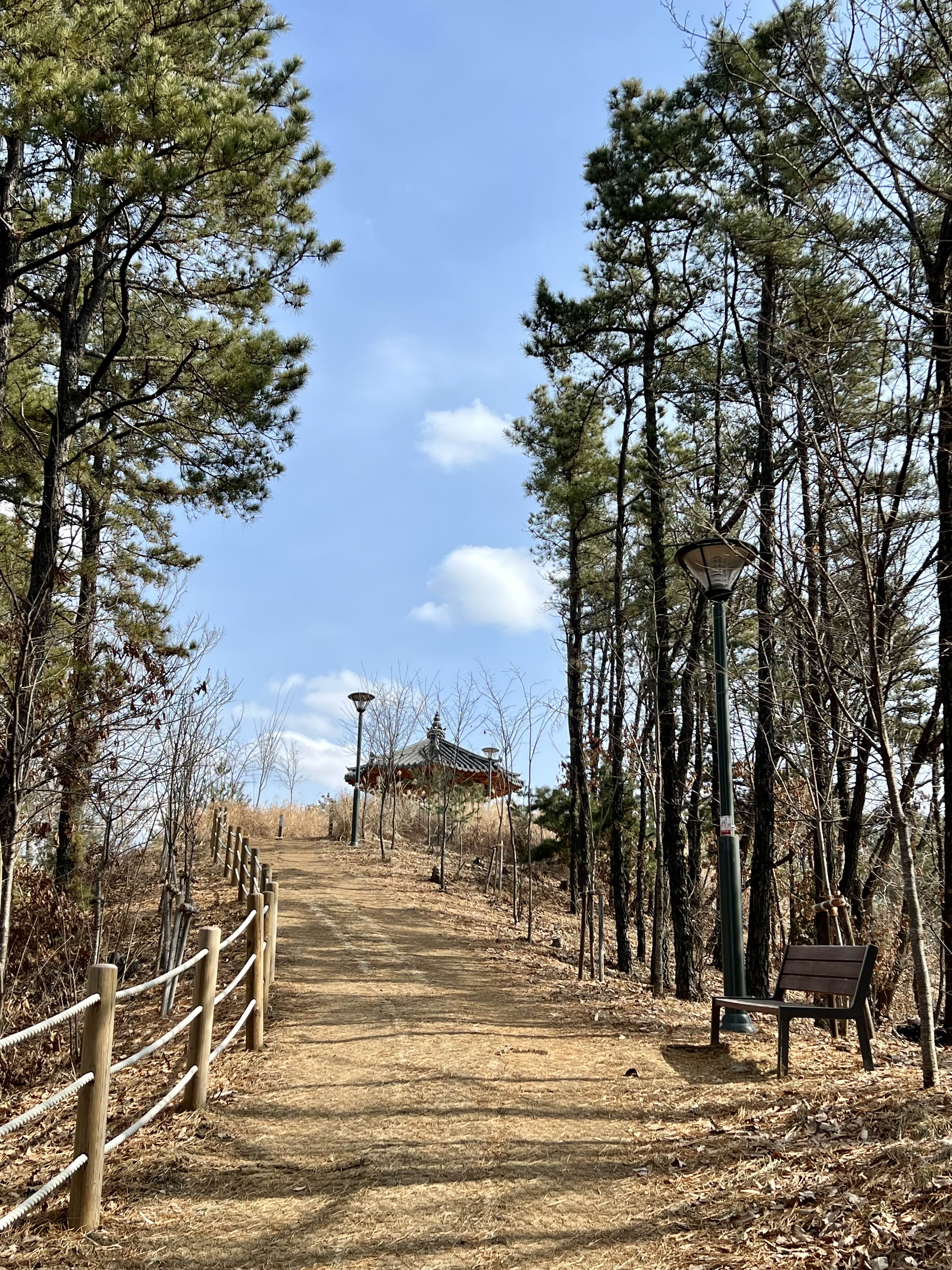 우와 가로등에 벤치, 정자도 있고 하늘이 보이니 꽤 산 정상같다.