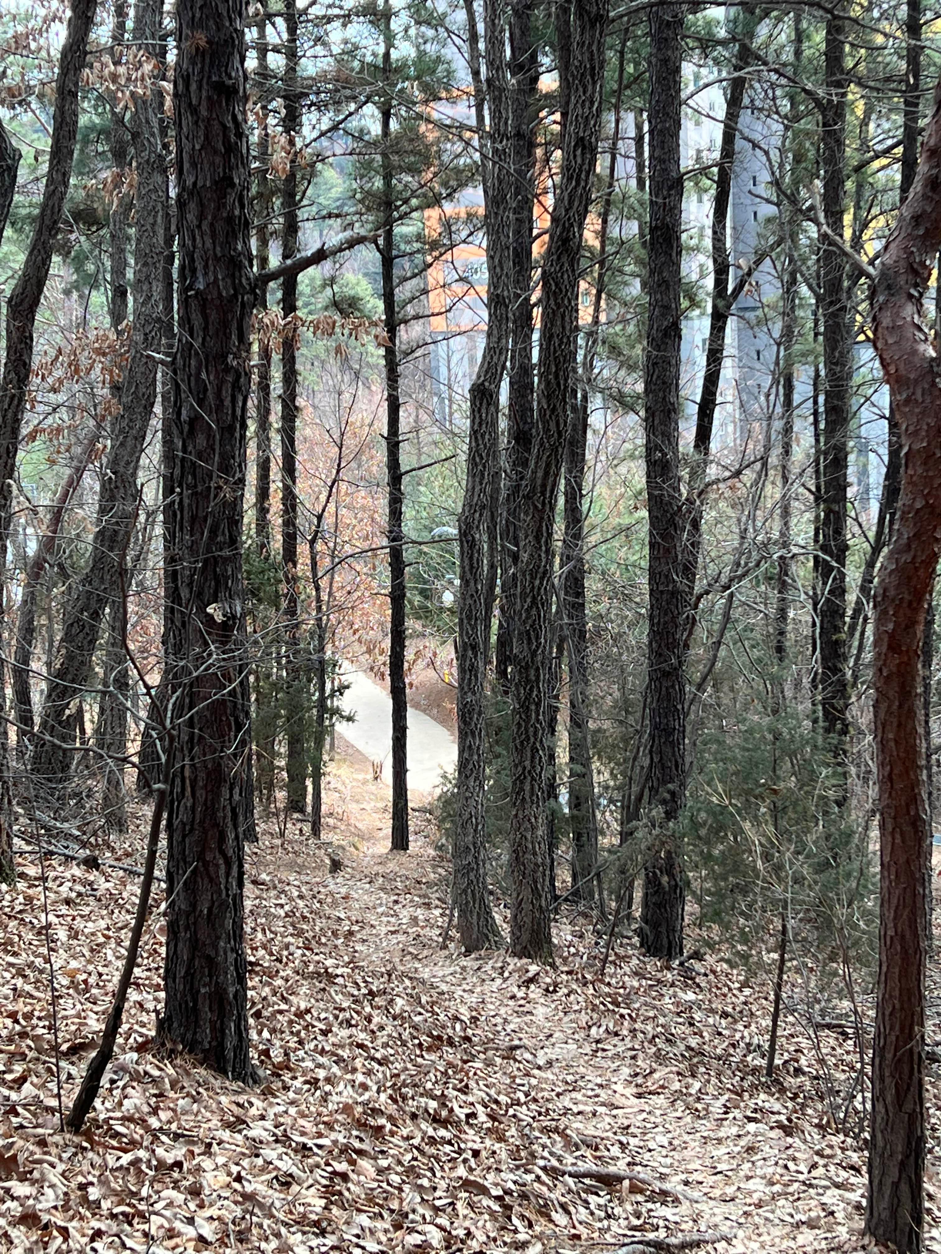 나는 선납숲 공원 입구에서 그냥 길따라 쭉 걷다가, 의도치 않게 생태터널을 지나서 빈장산을 지나 11자 상가로 나왔다.