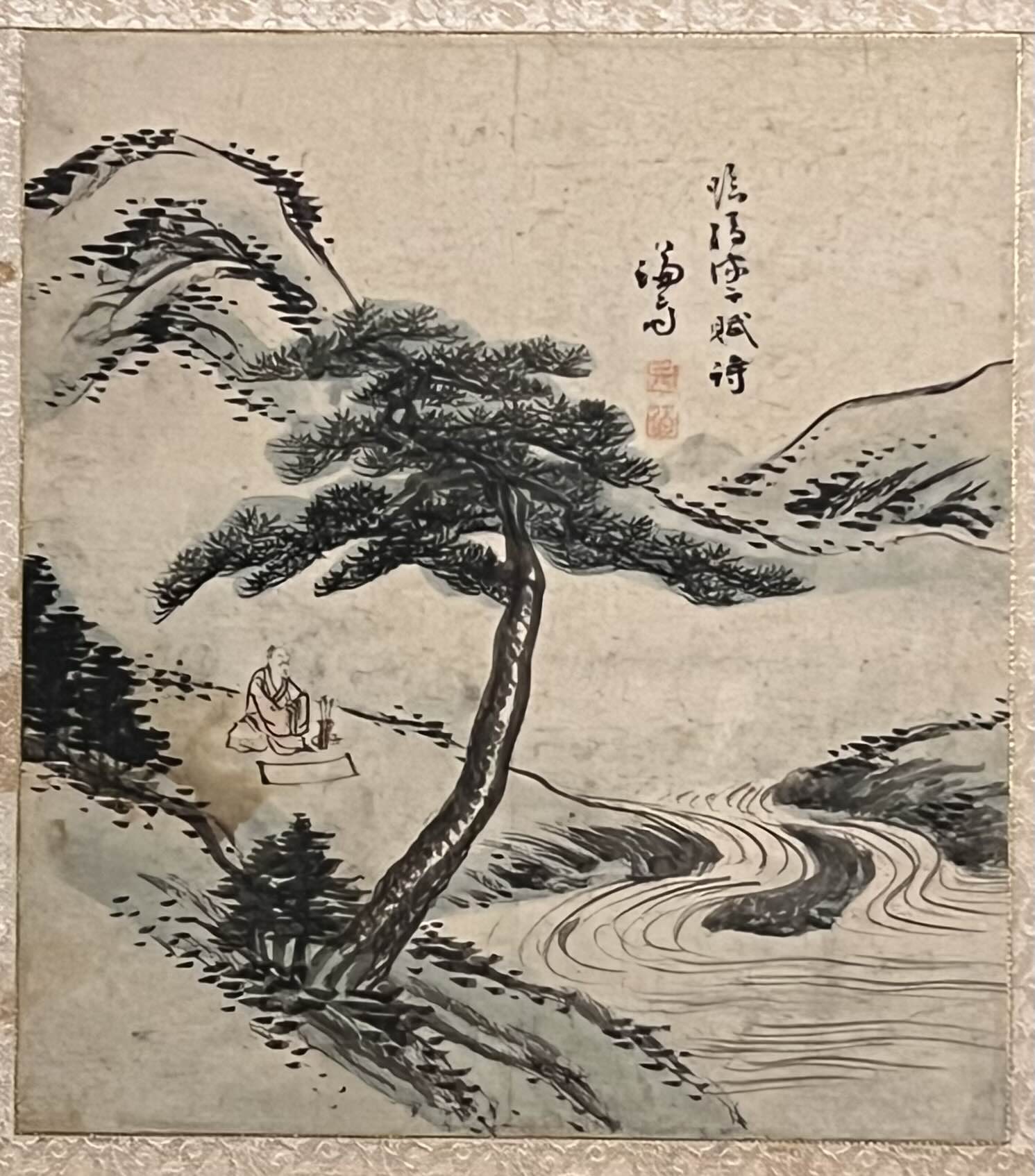 맑은 시냇가에 앉아 시를 짓네