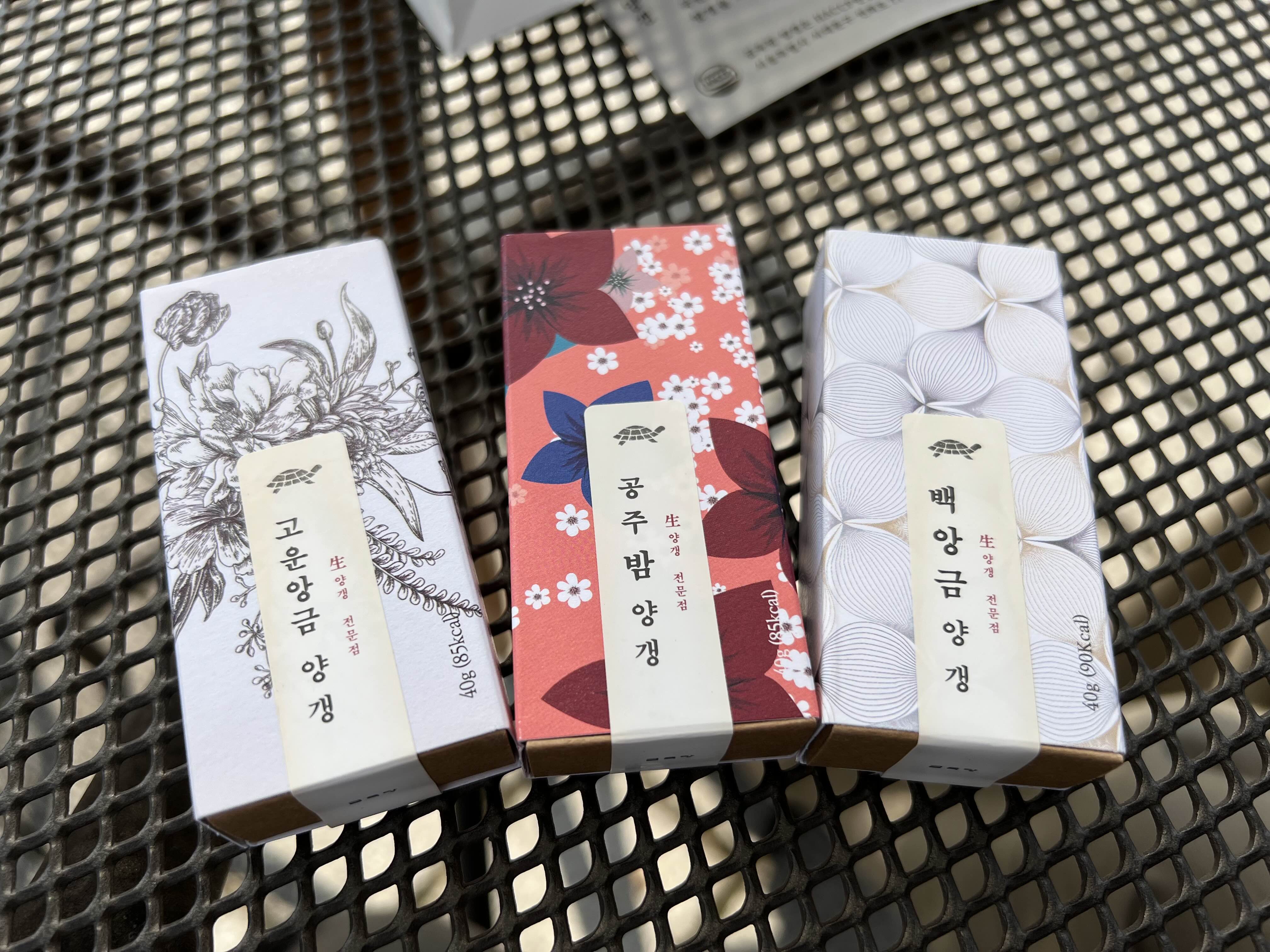 고운앙금이 제일 전통적인 느낌이고 난 백앙금도 좋아해서 만족했다. 공주 밤 양갱은 아직 안 먹었다.
