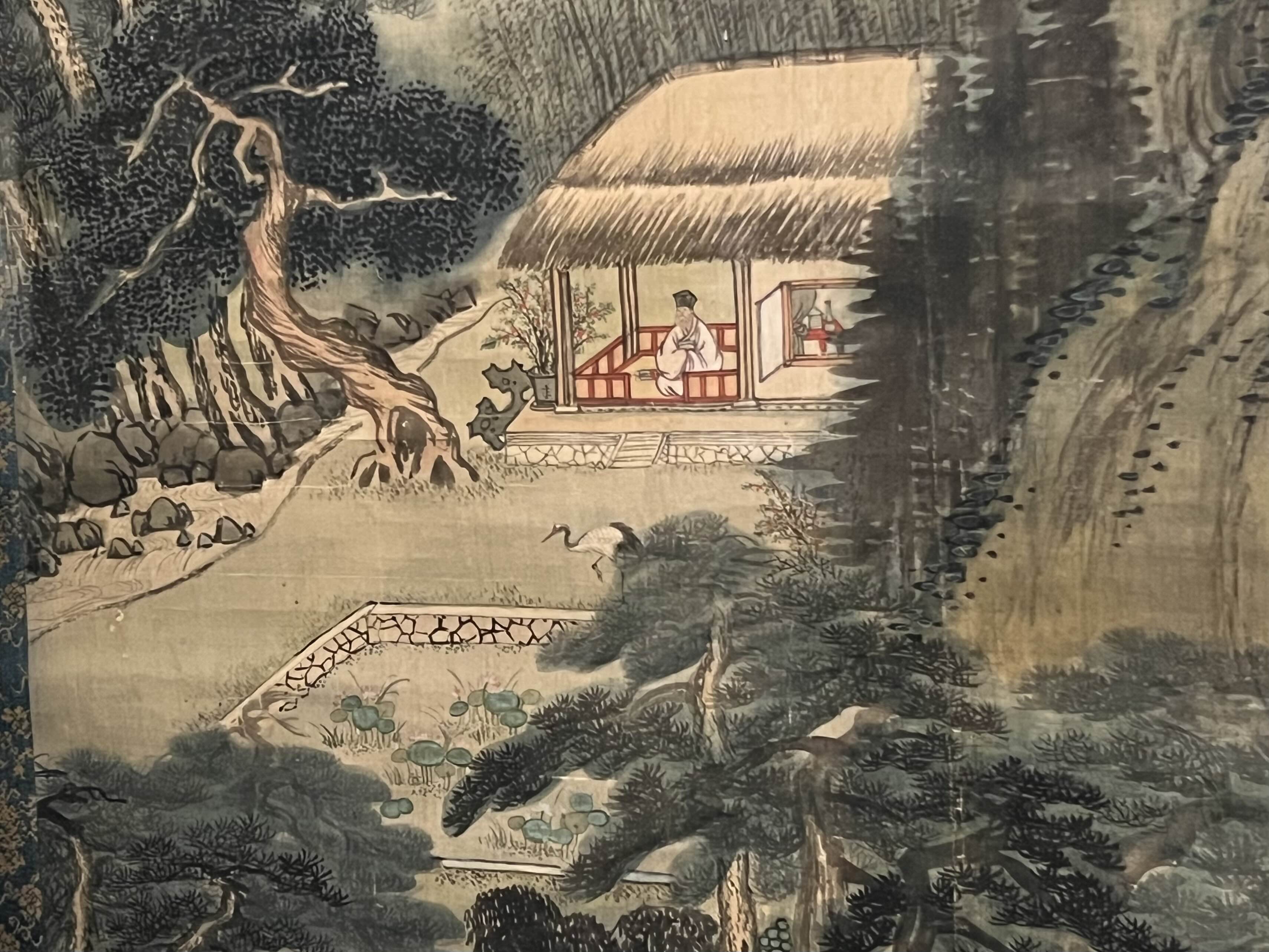 여산에서 은거한 당나라 시인 백거이의 고사를 그린 그림이다.