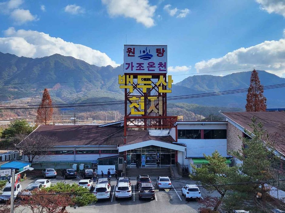 3-40분 거리에 있는 가조 백두산천지온천으로 갔다.