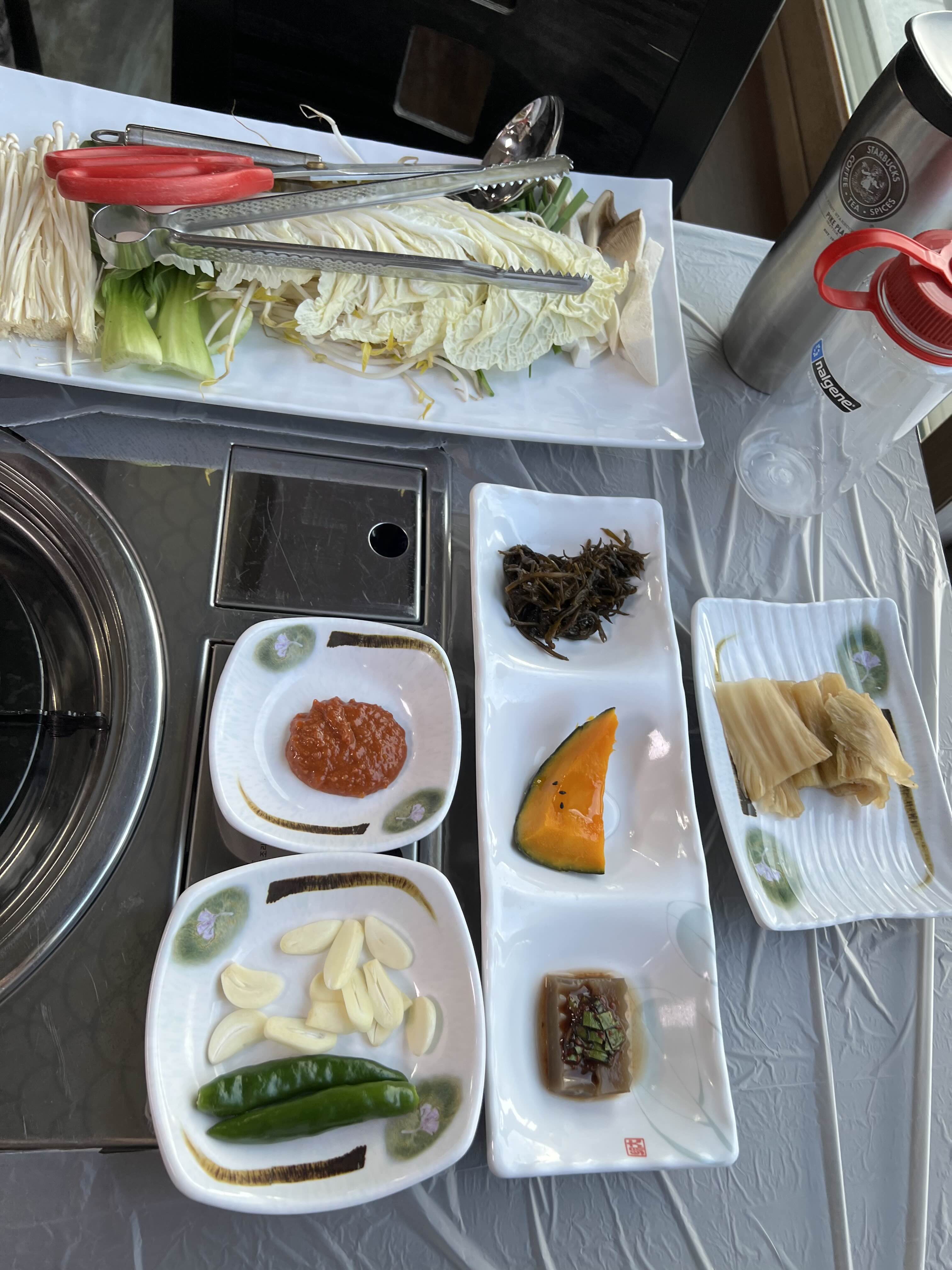 깻잎을 샤브 국물에 적셔 같이 먹으면 맛있다고 하셔서 그렇게 먹고 있다.