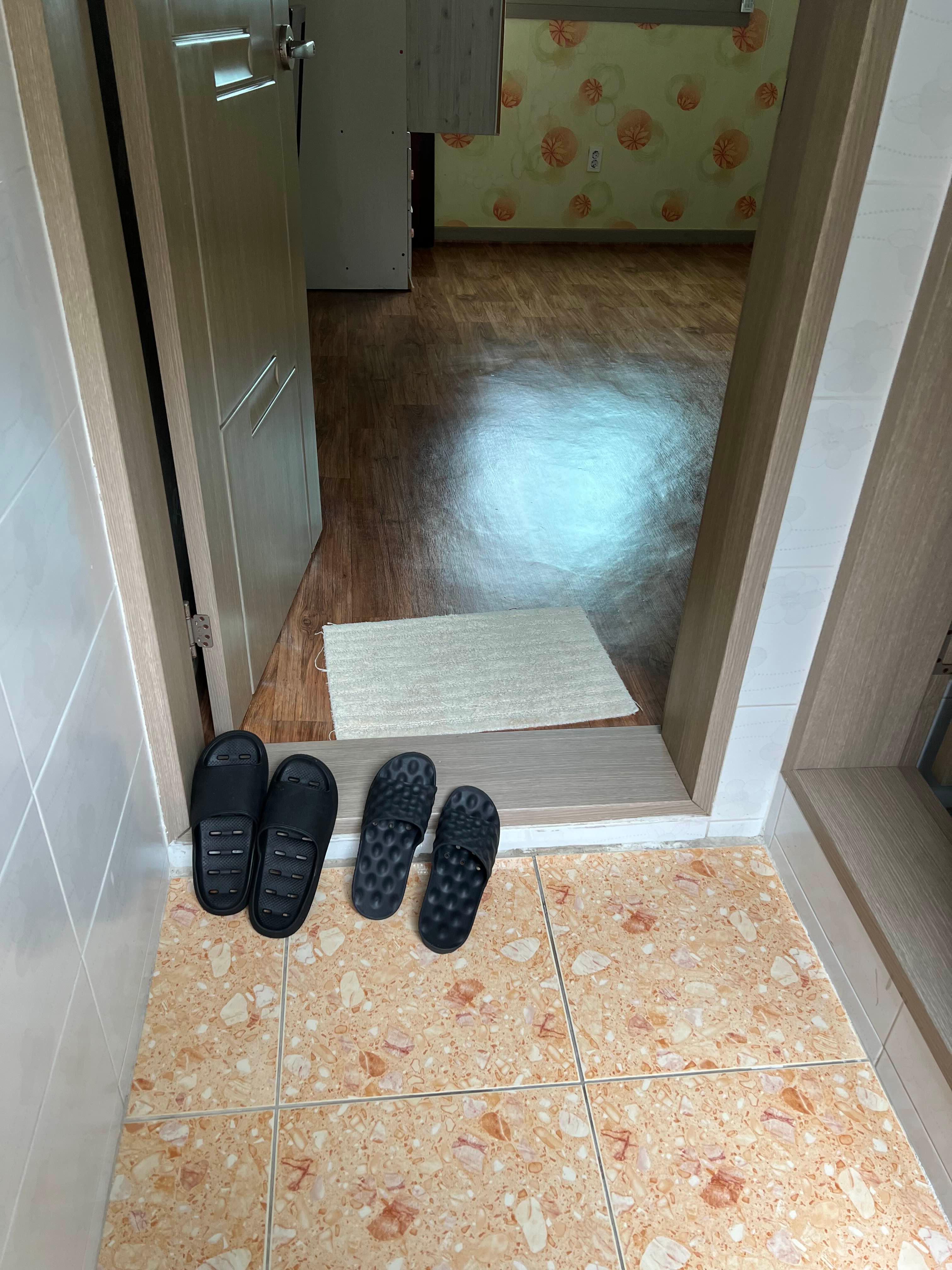 현관문 열고 보이는 현관도 깨끗하고 환하다. 슬리퍼도 있어서 아주 편했다. 작은 것에도 마음 쓰신 것이 느껴진다.