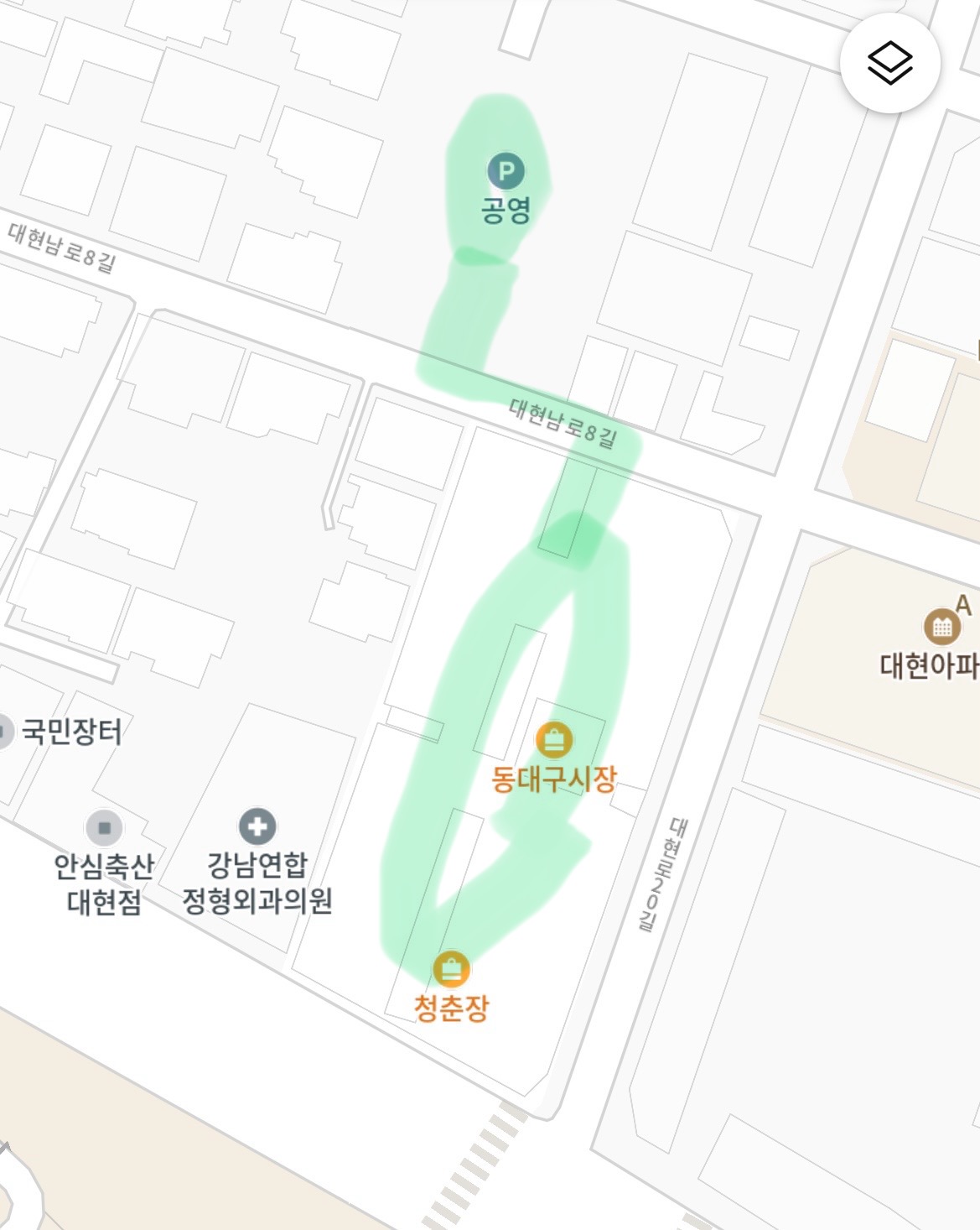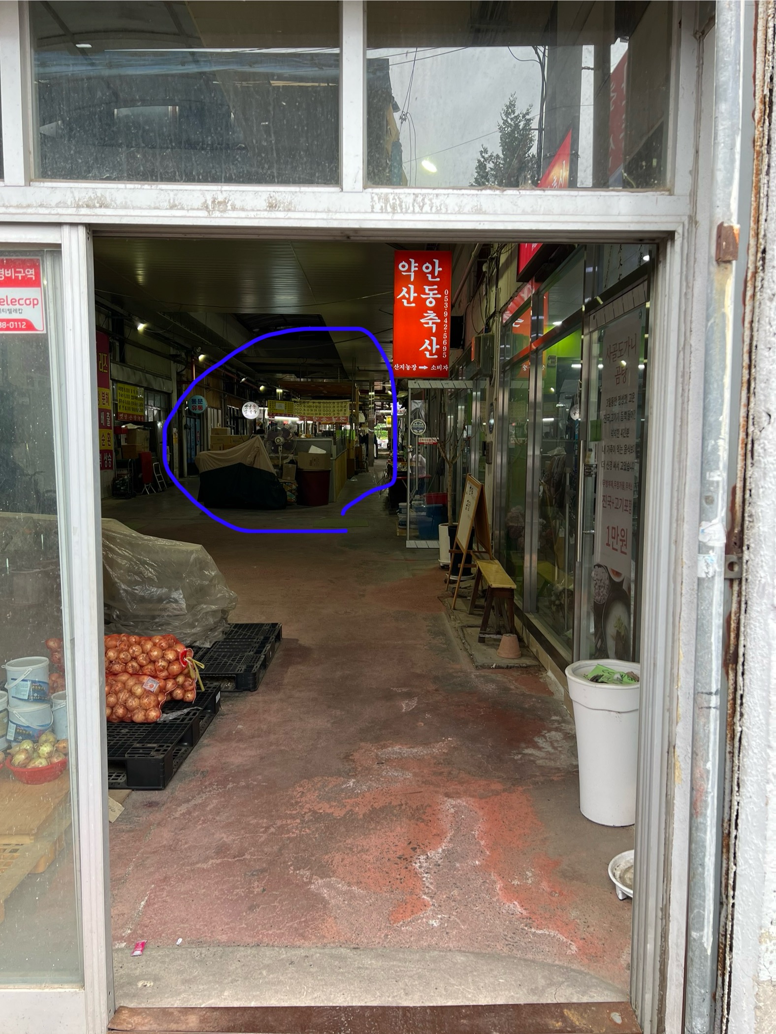 뒤가 막힌 것 같지만 시장 아케이드로 바로 들어감