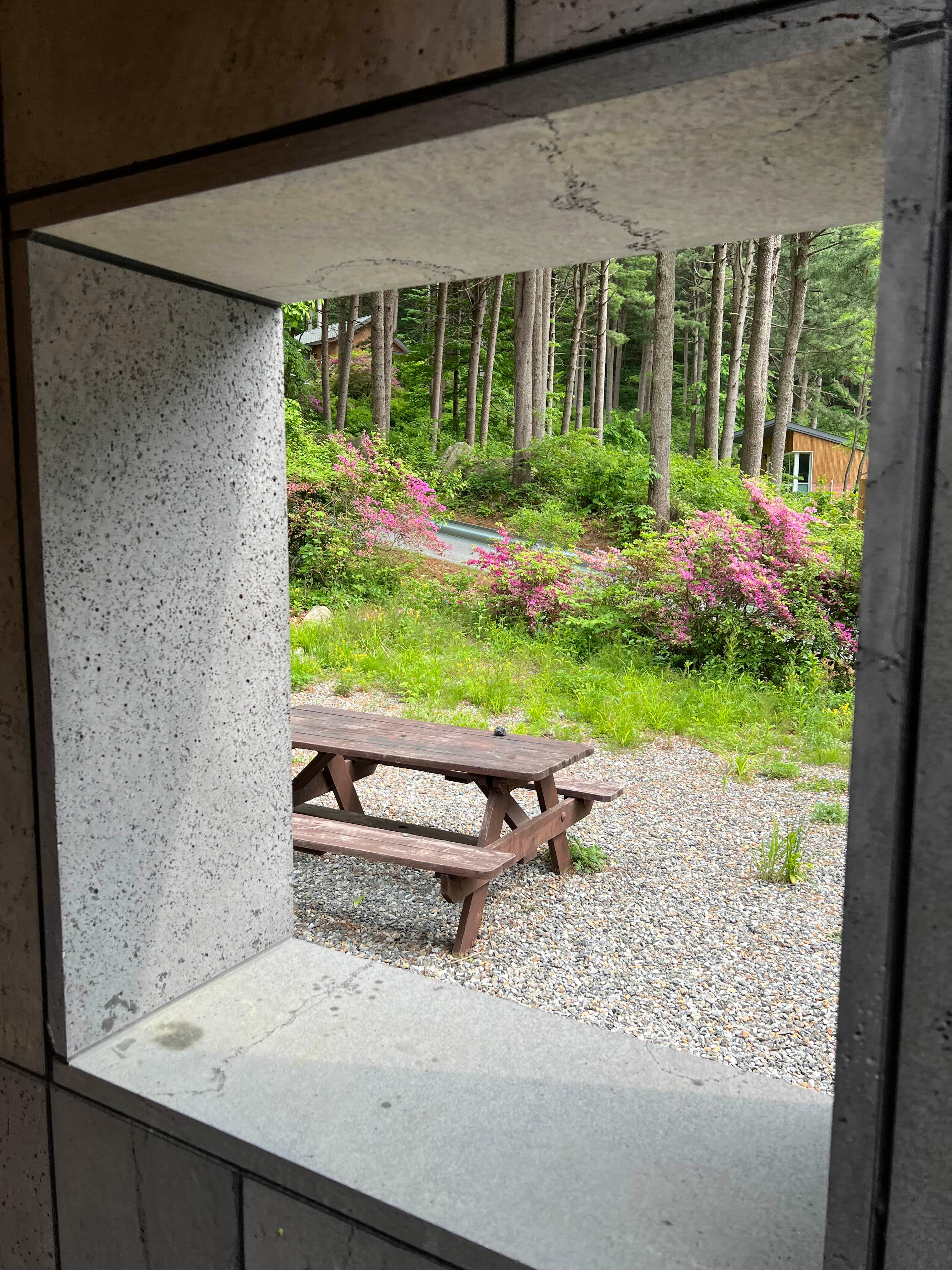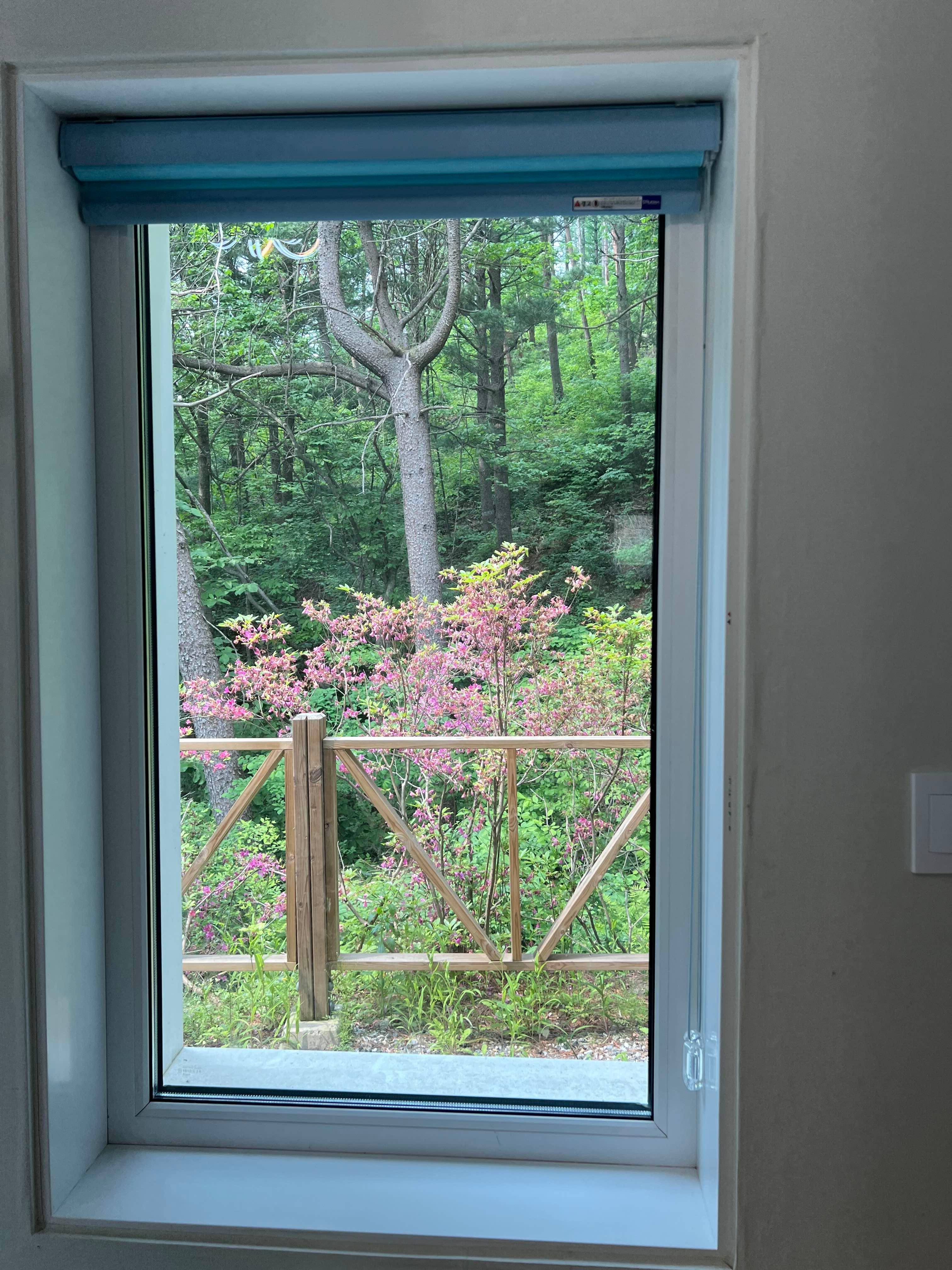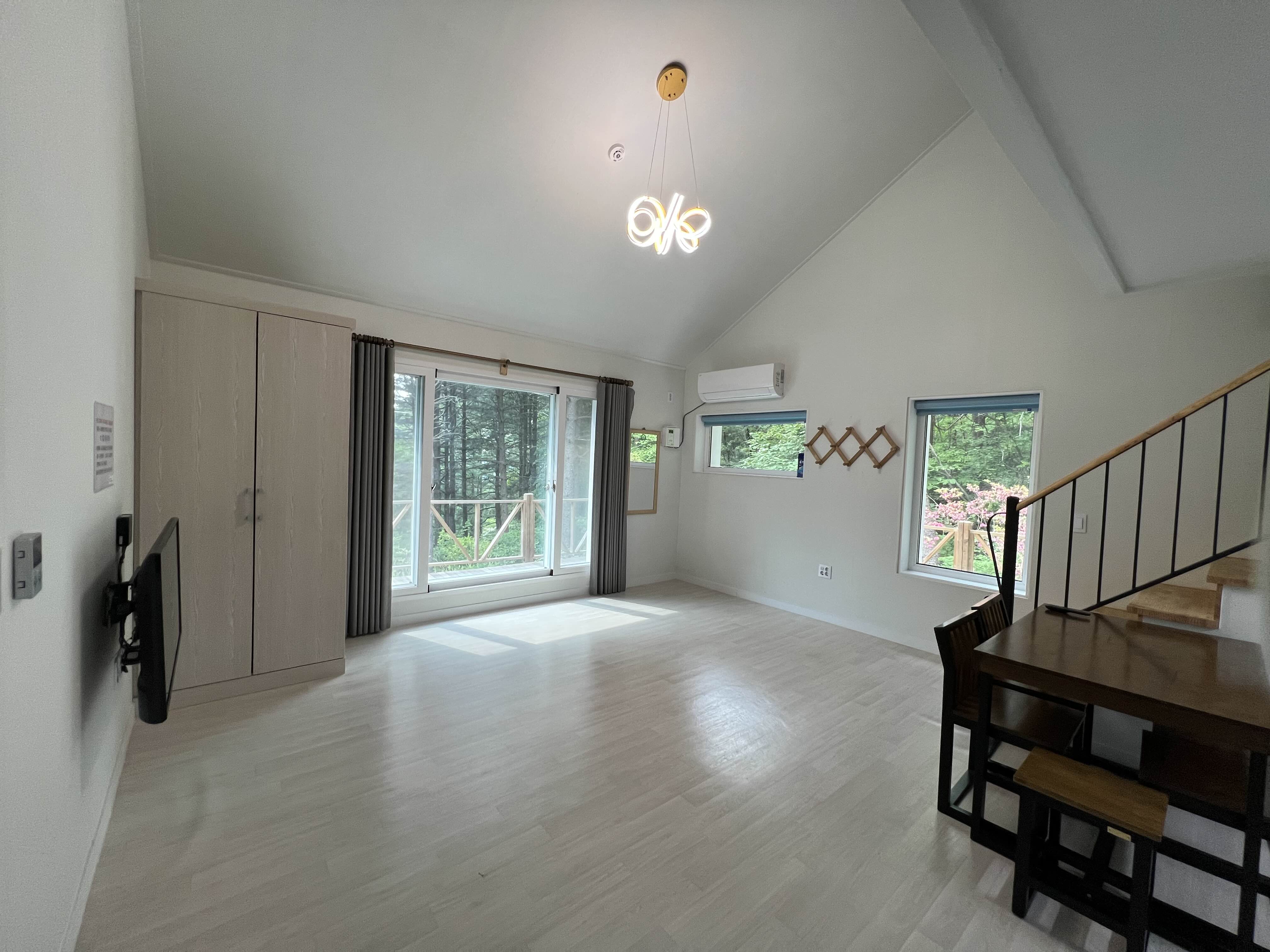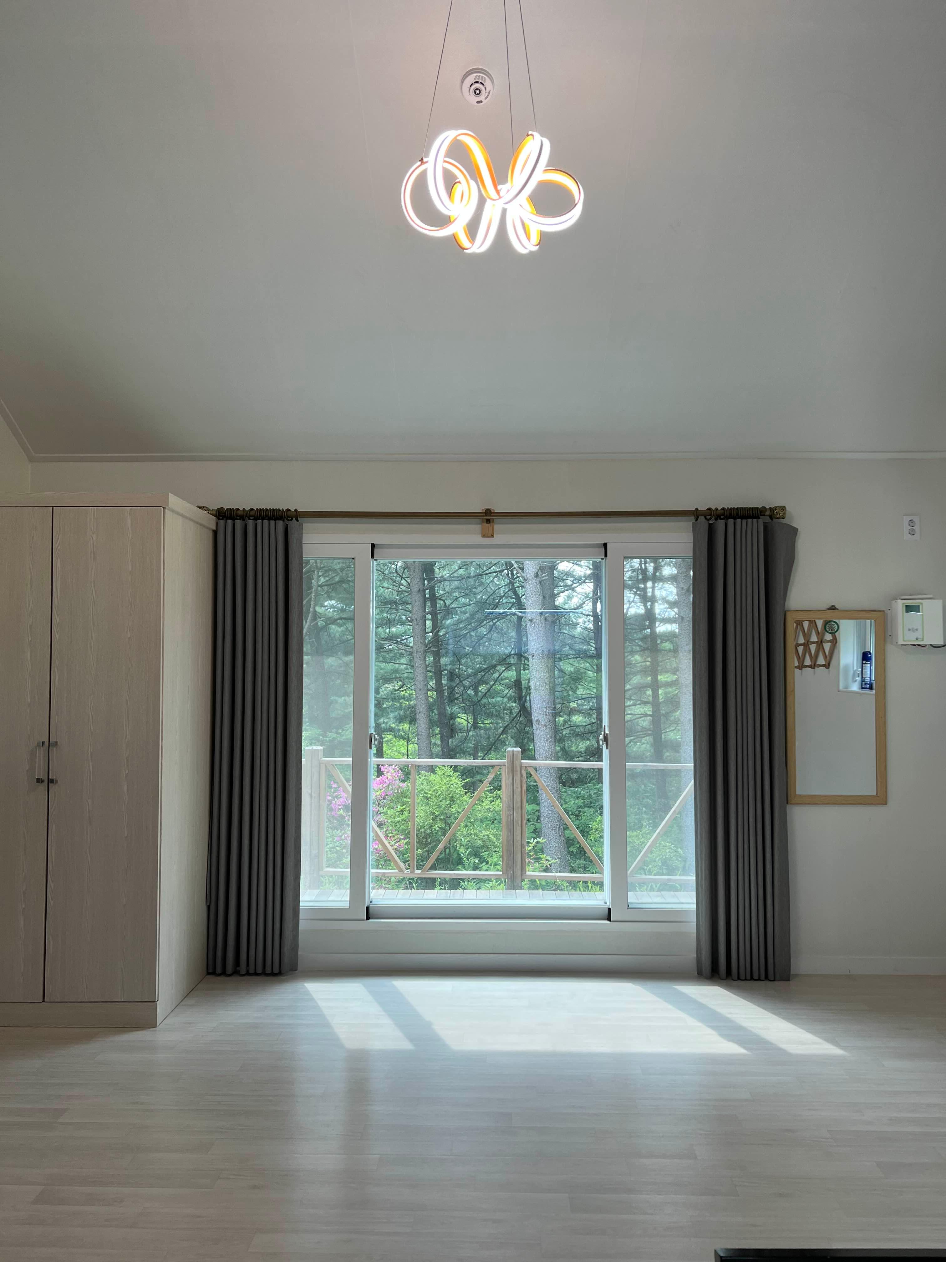 천장고가 높다. 창이 많아서 숲이 그득하다.