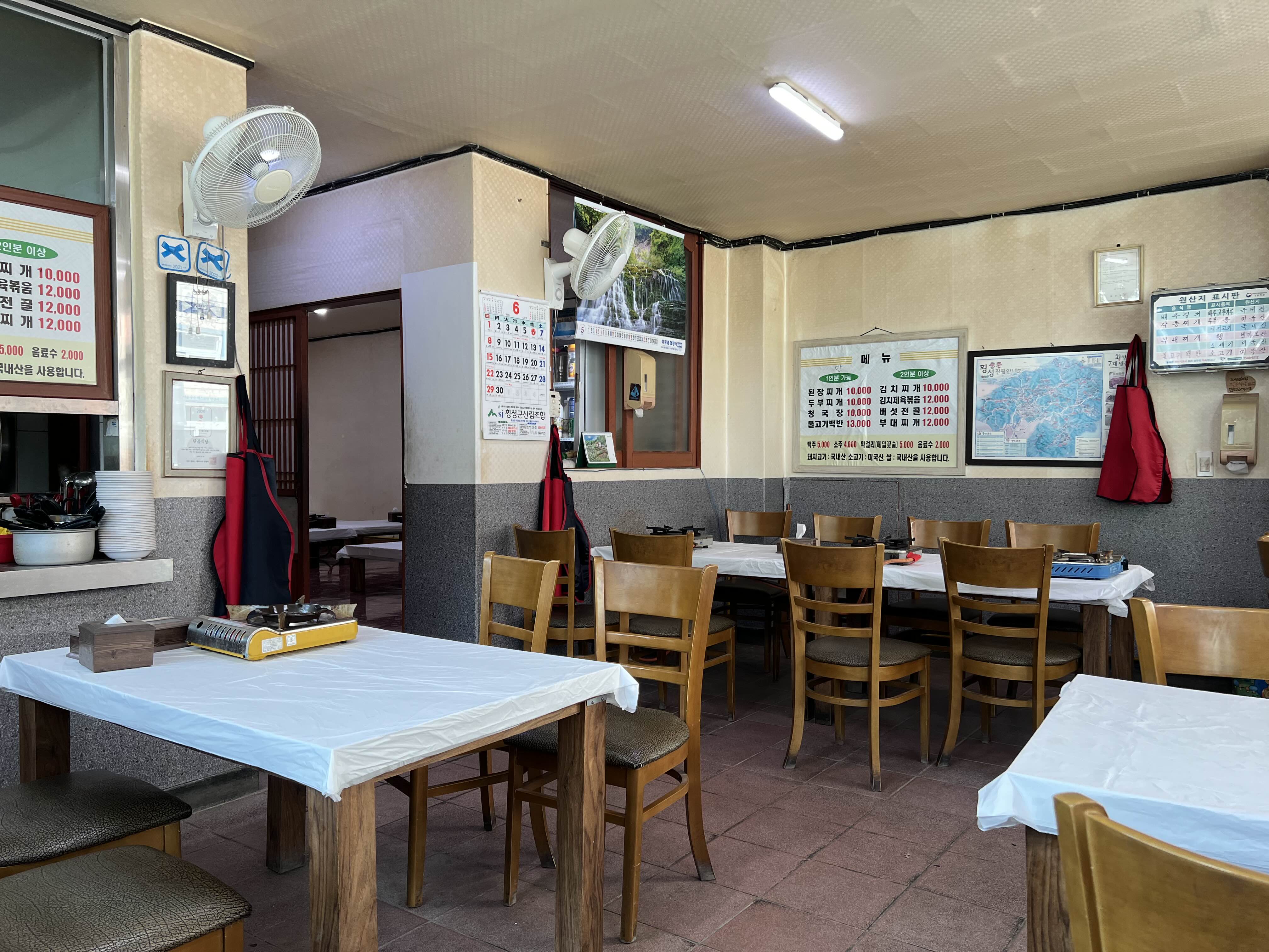 다음 날 아침 백반을 먹으러 갔다. 된장찌개가 먹고 싶어서 갔다. 둔내면 행복복지센터 맞은 편의 단골식당이다.