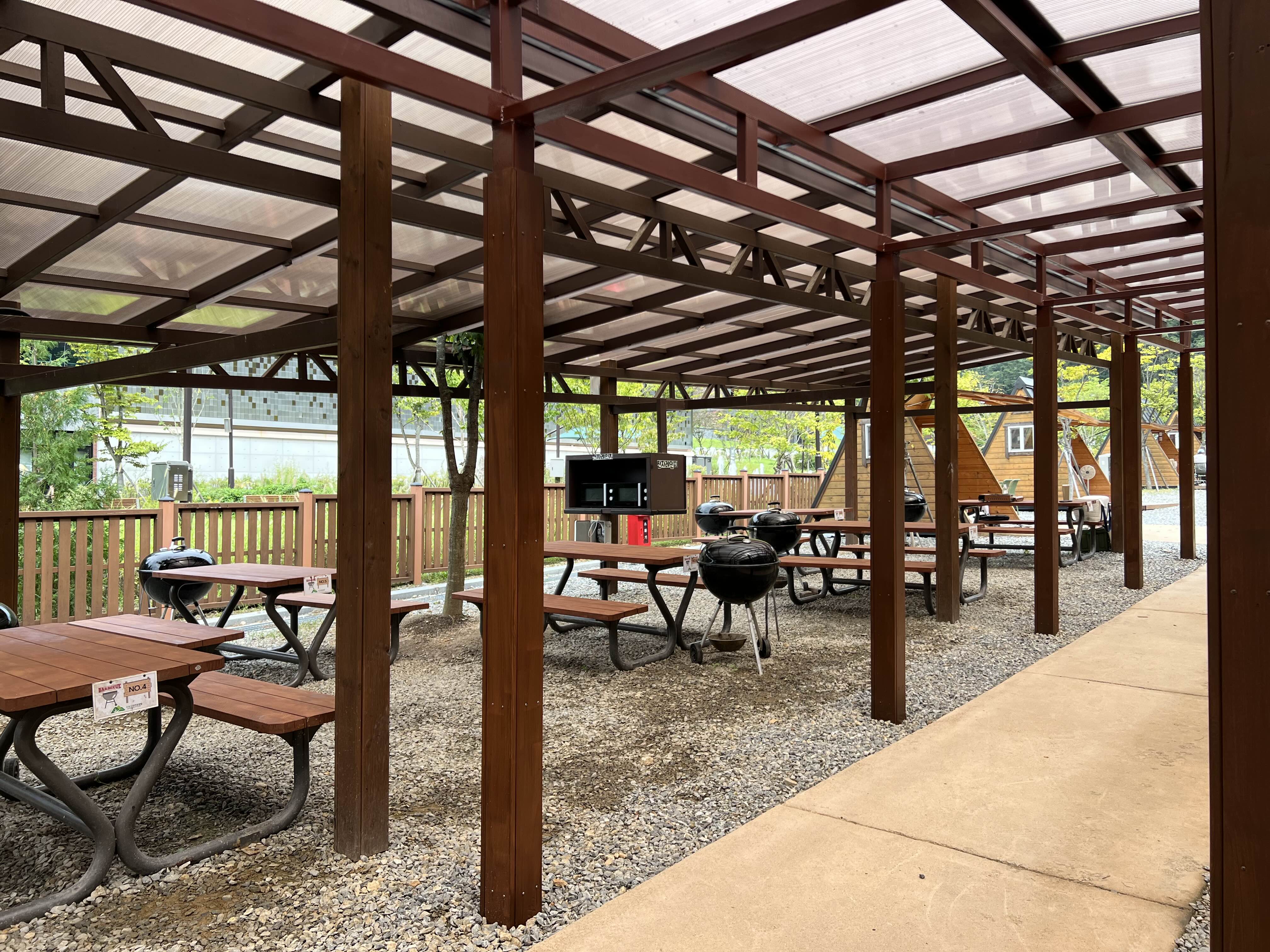 지붕이 다 있어서 비가 와도 괜찮겠더라. 중간에 전자레인지도 2개 있다.