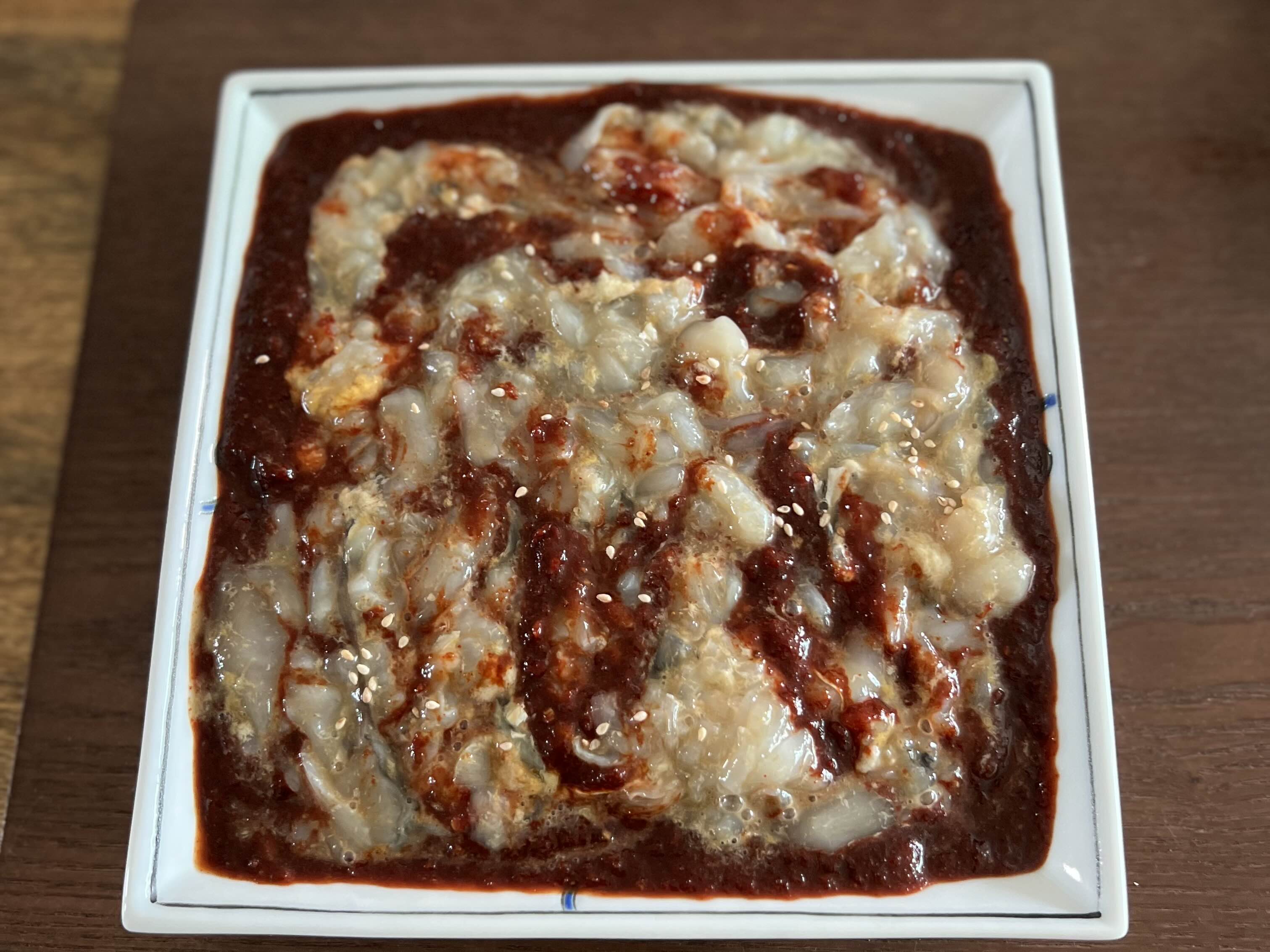 이건 게살만 바른 후에 양념장을 즉석에서 무쳐본 것이다.