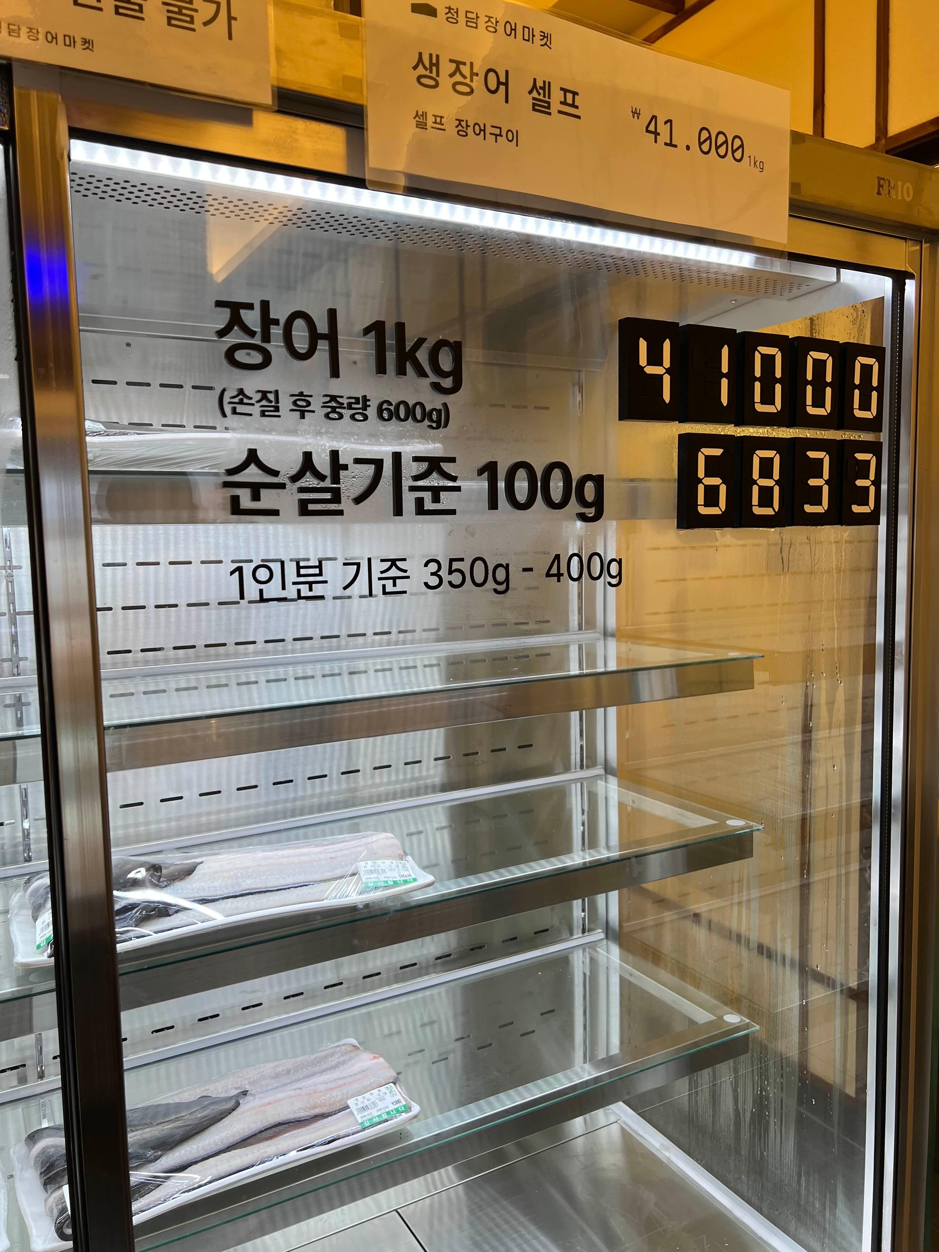 입구 냉장고에서 적당량의 장어들을 보고 선택한 후,