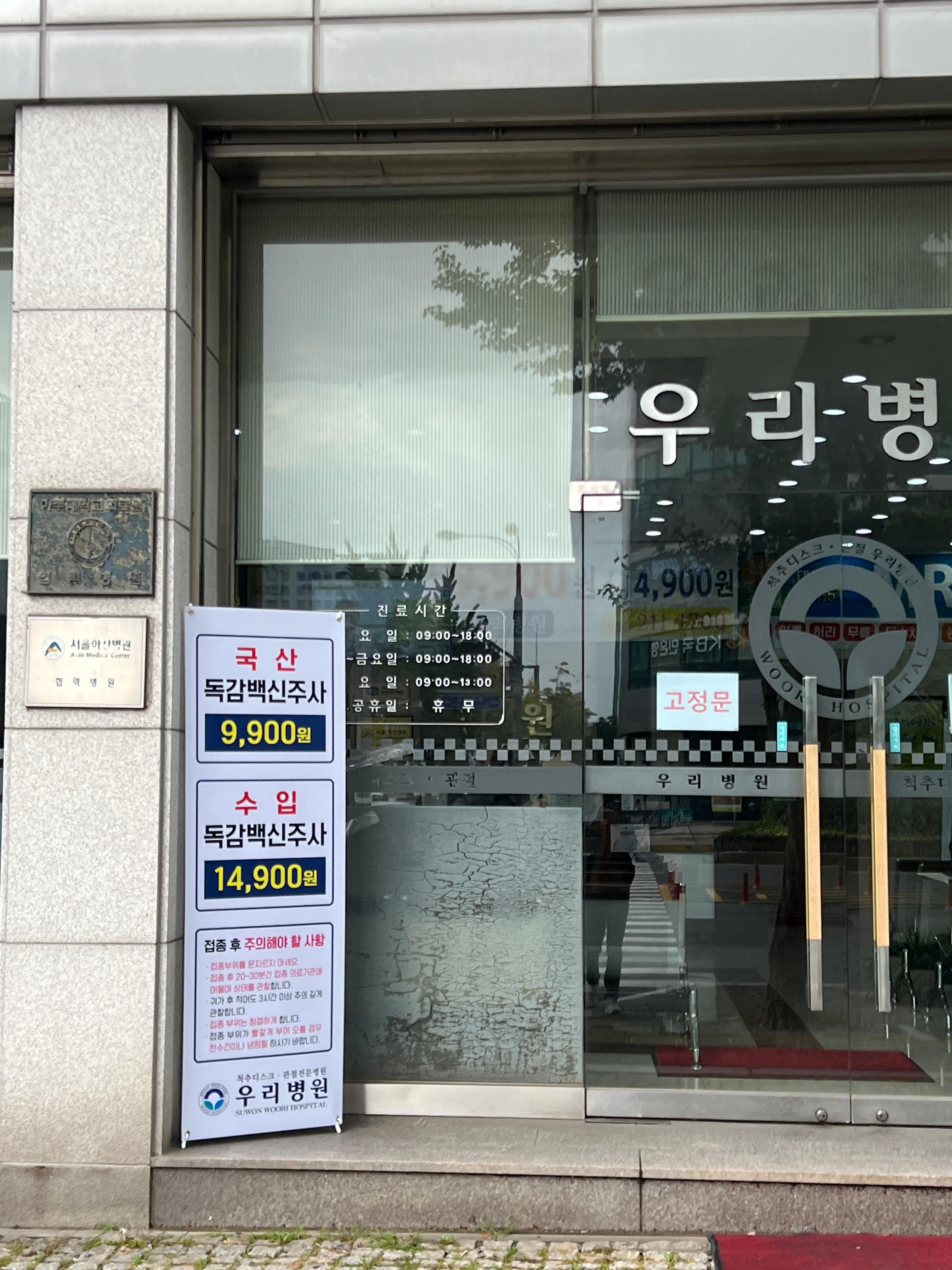 수원 우리병원이 국산 9,900원, 수입 14,900원이어서 맞으러 갔다.
