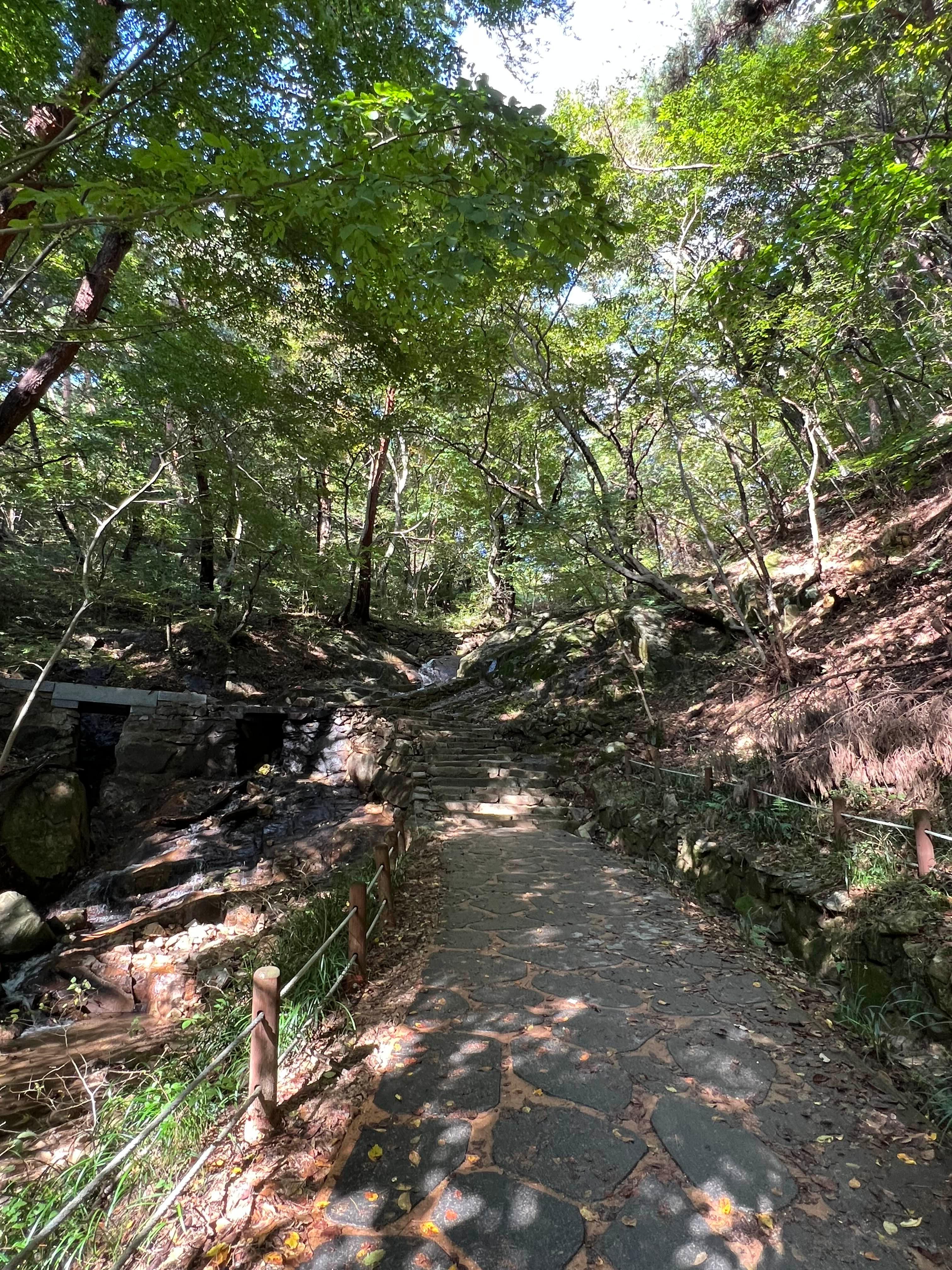 평지는 아니지만 물 소리를 들으며 조용한 숲속을 걷는 게 정말 좋다.