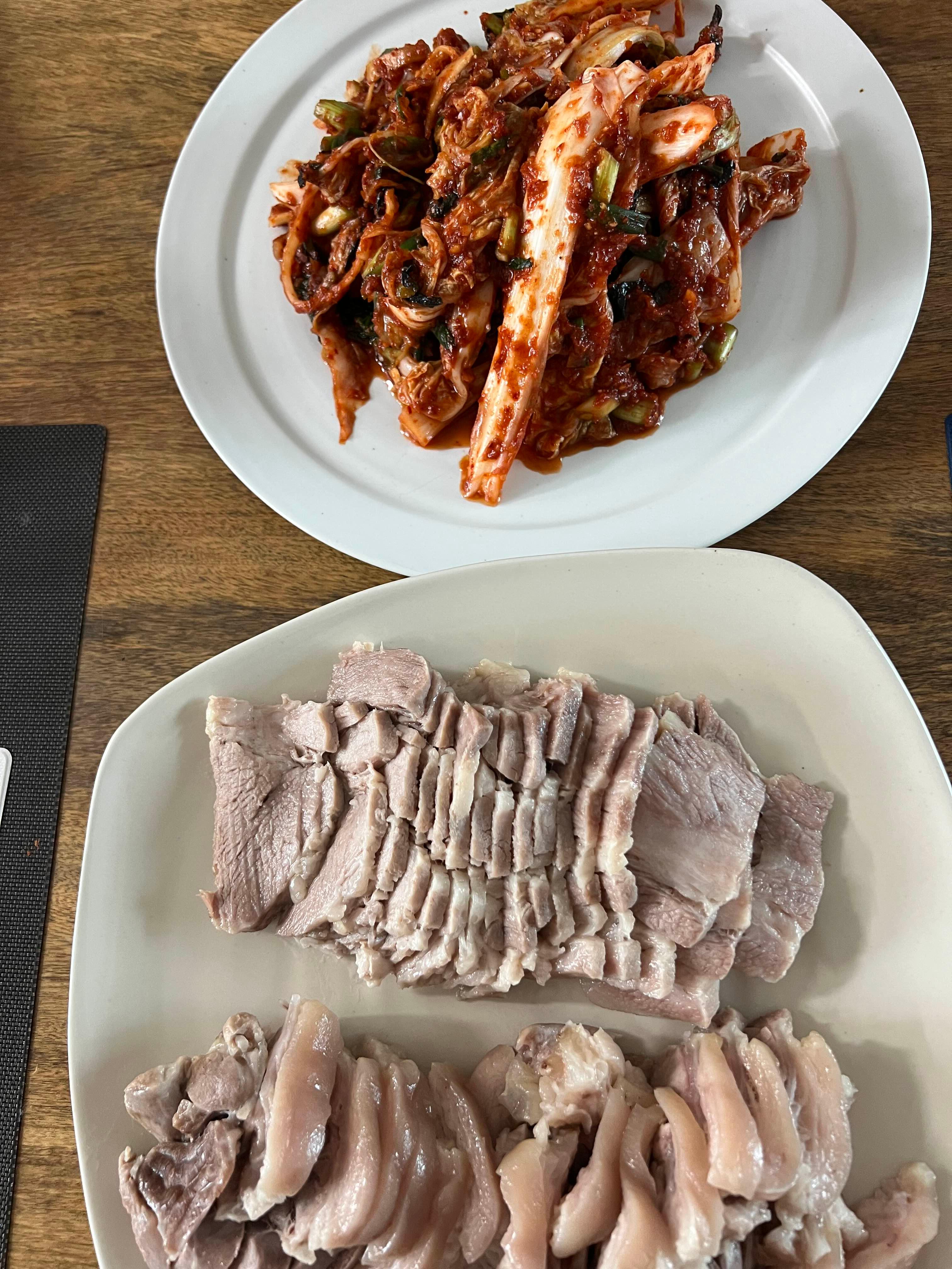 15. 수육 잘라 아까 길게 찢어둔 김치와 먹는다