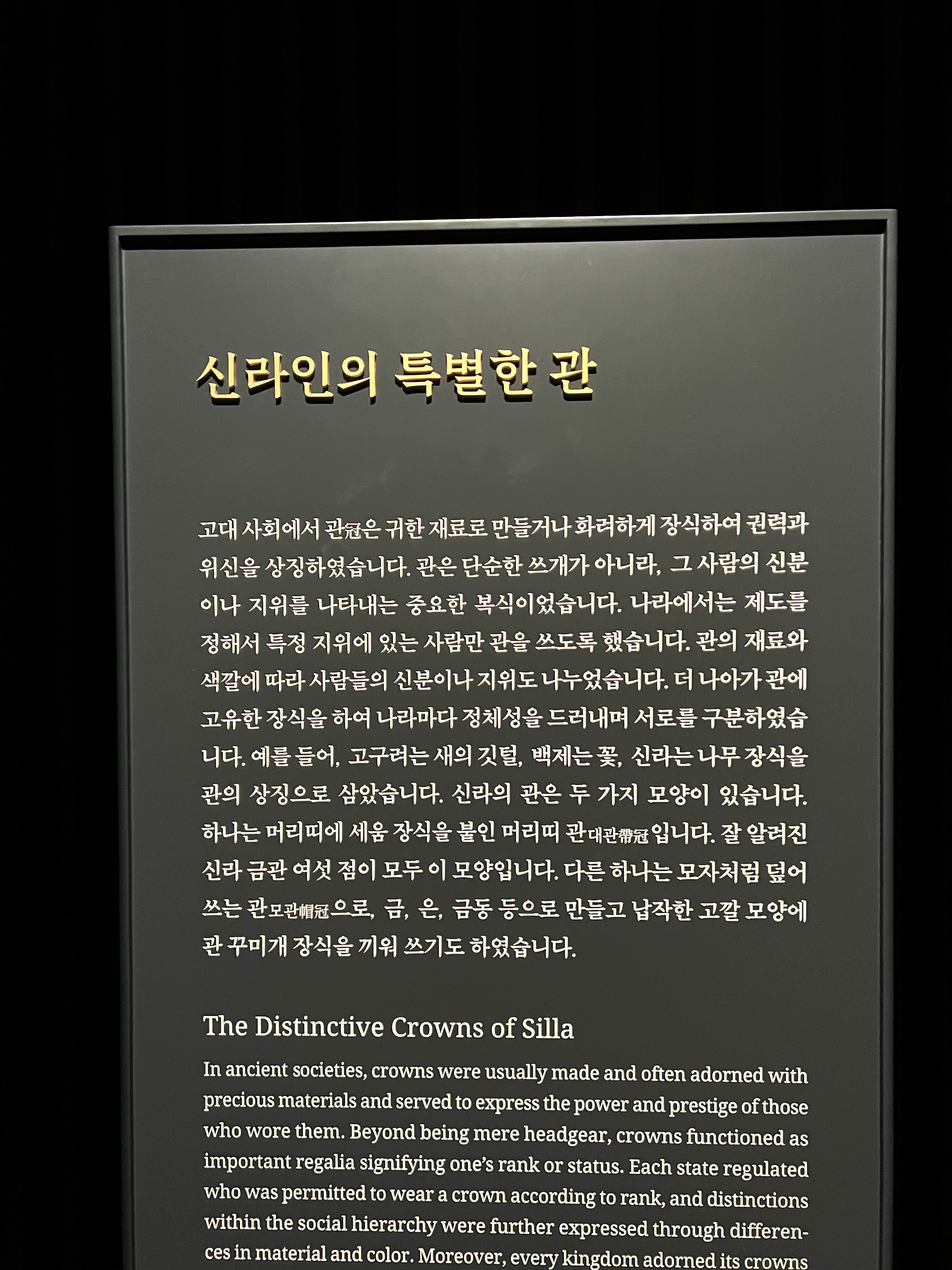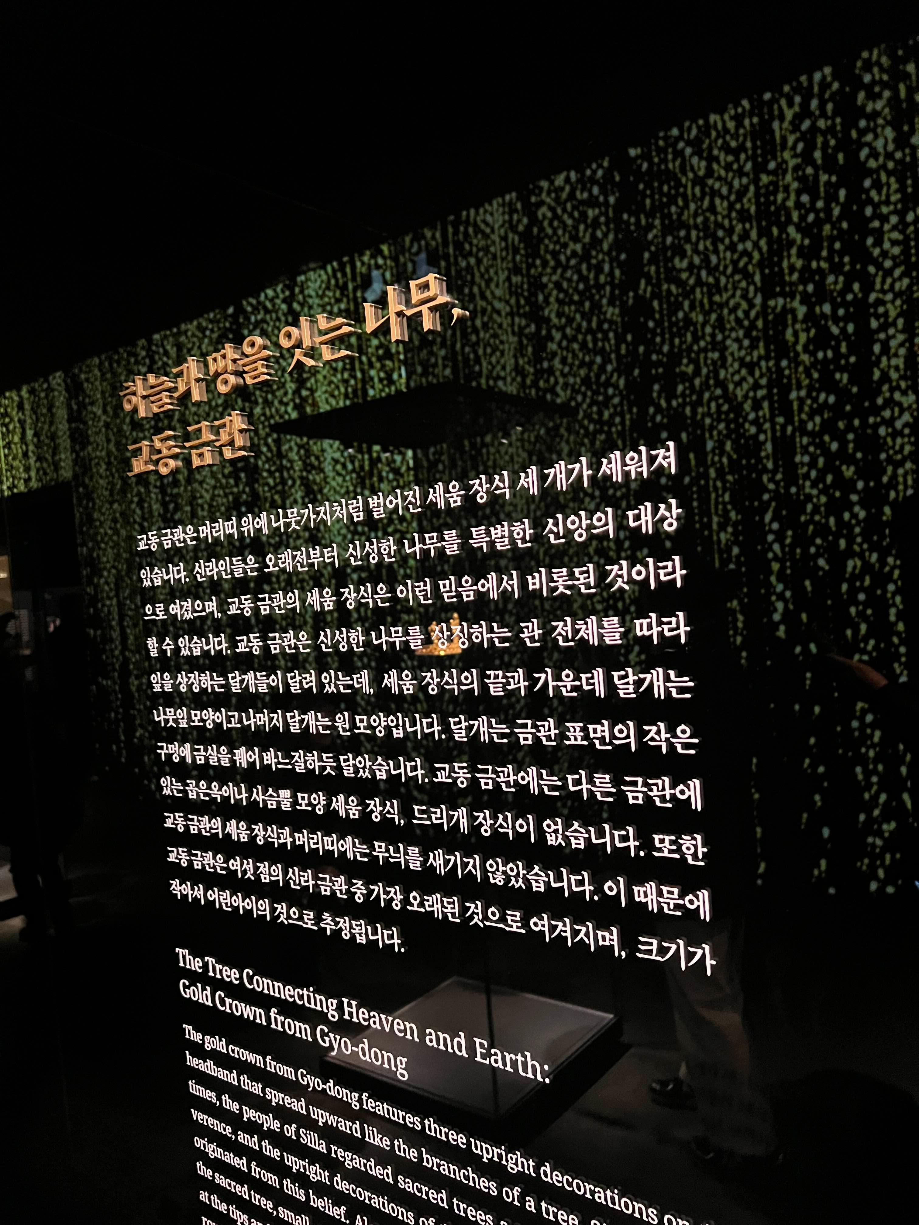 전시관 빛과 배경이 너무 훌륭해서 금관의 존재감이 정말 오롯이 와 닿았다.