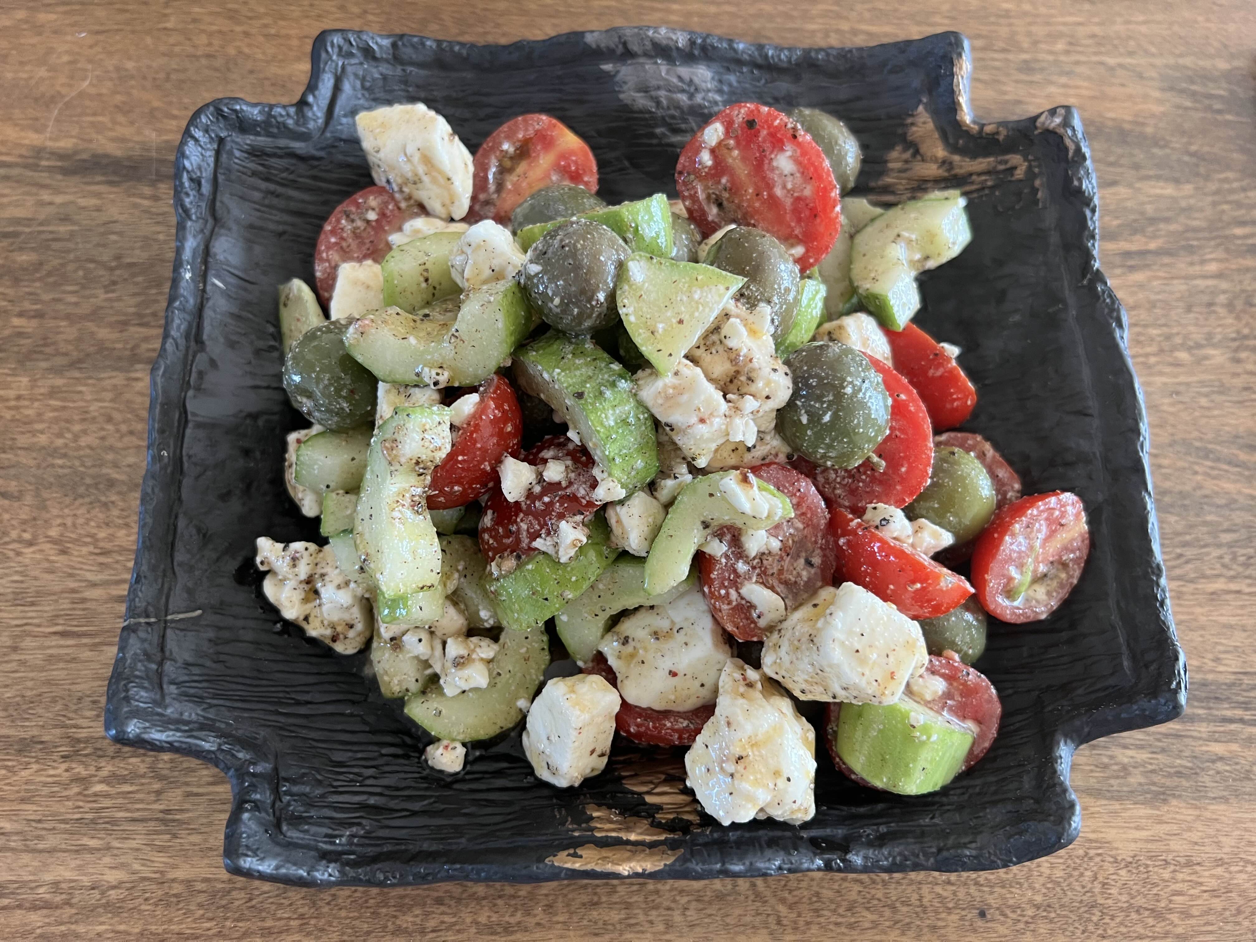 오이, 방울토마토, 올리브, 페타치즈