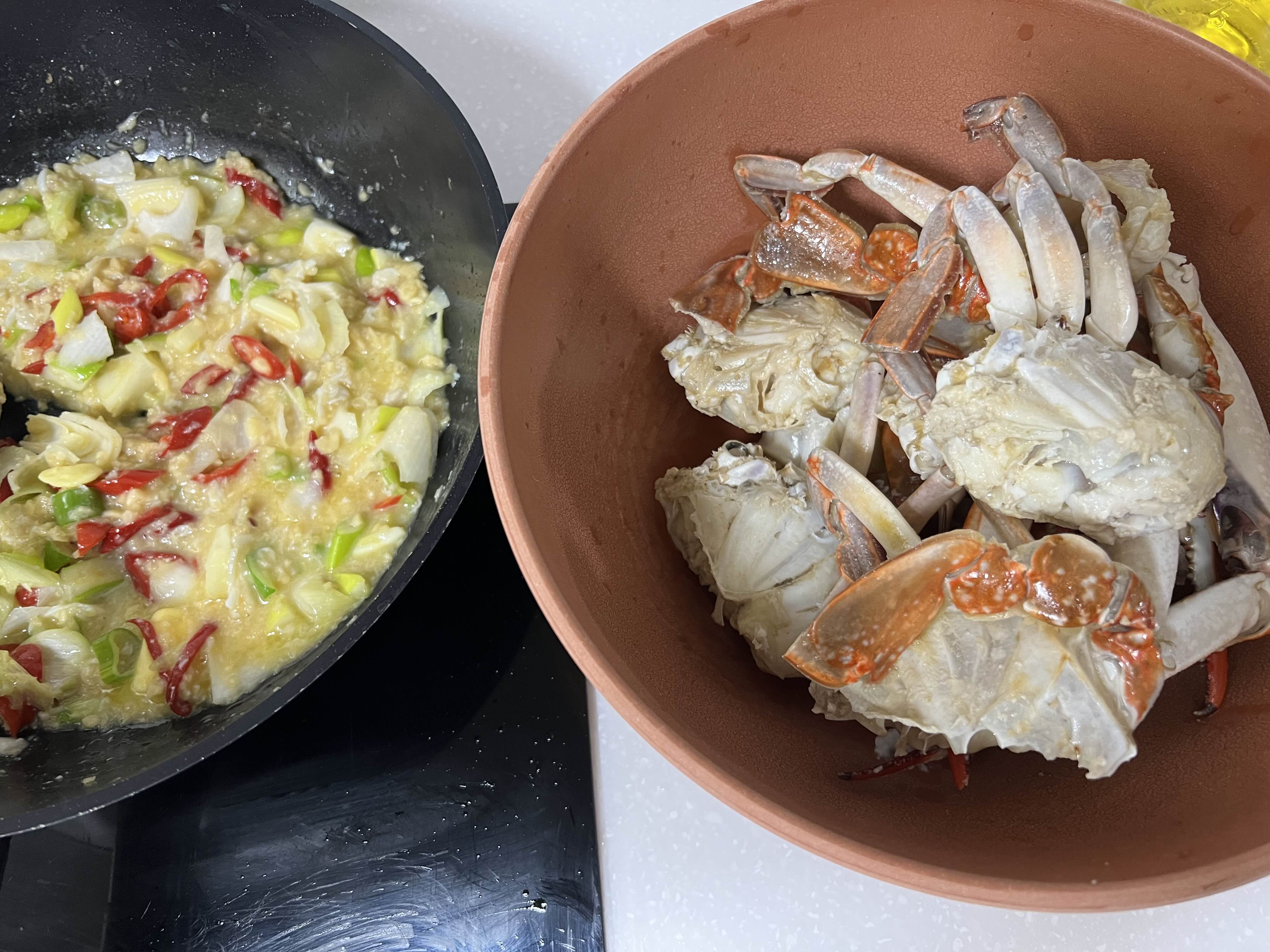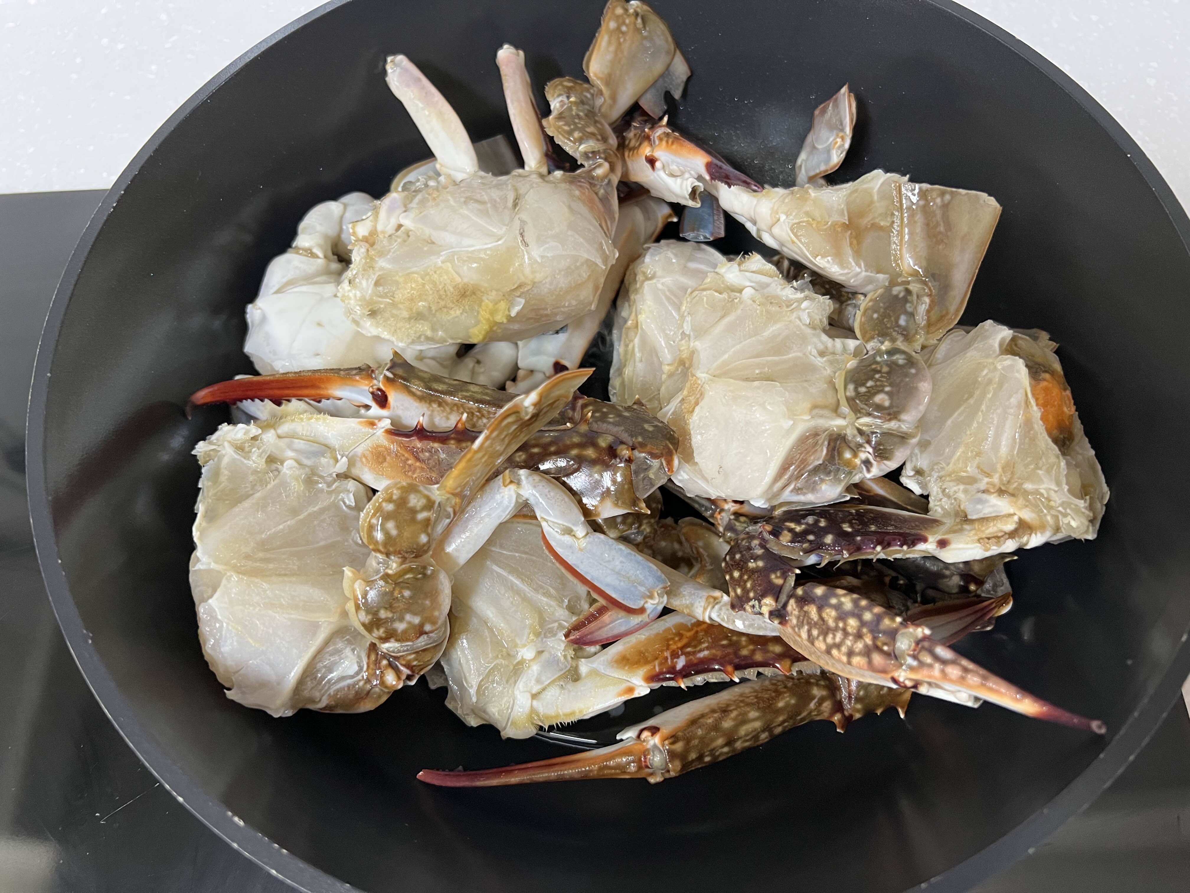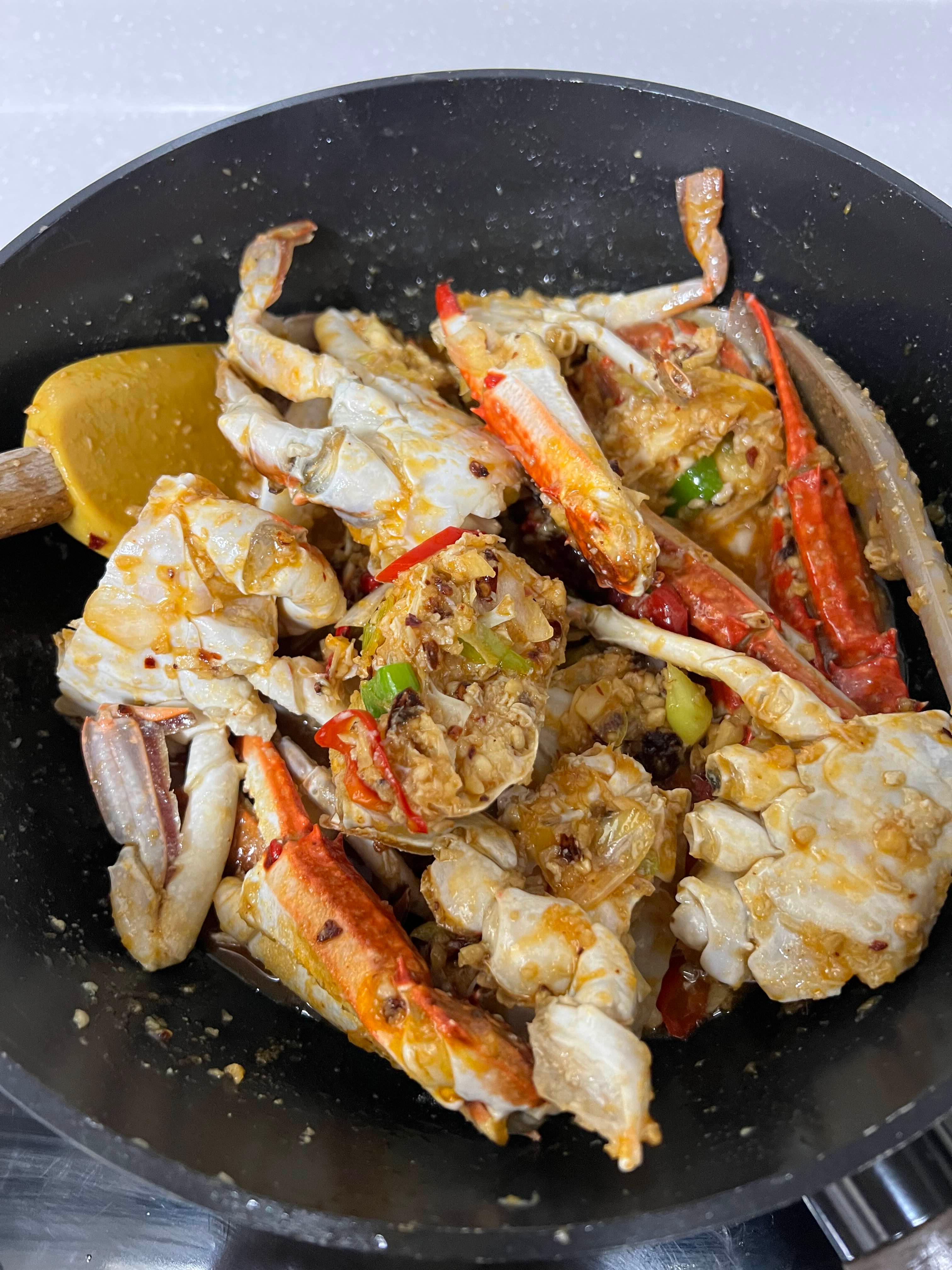 꽃게를 팬에 버터 넣고 볶는 요리다.