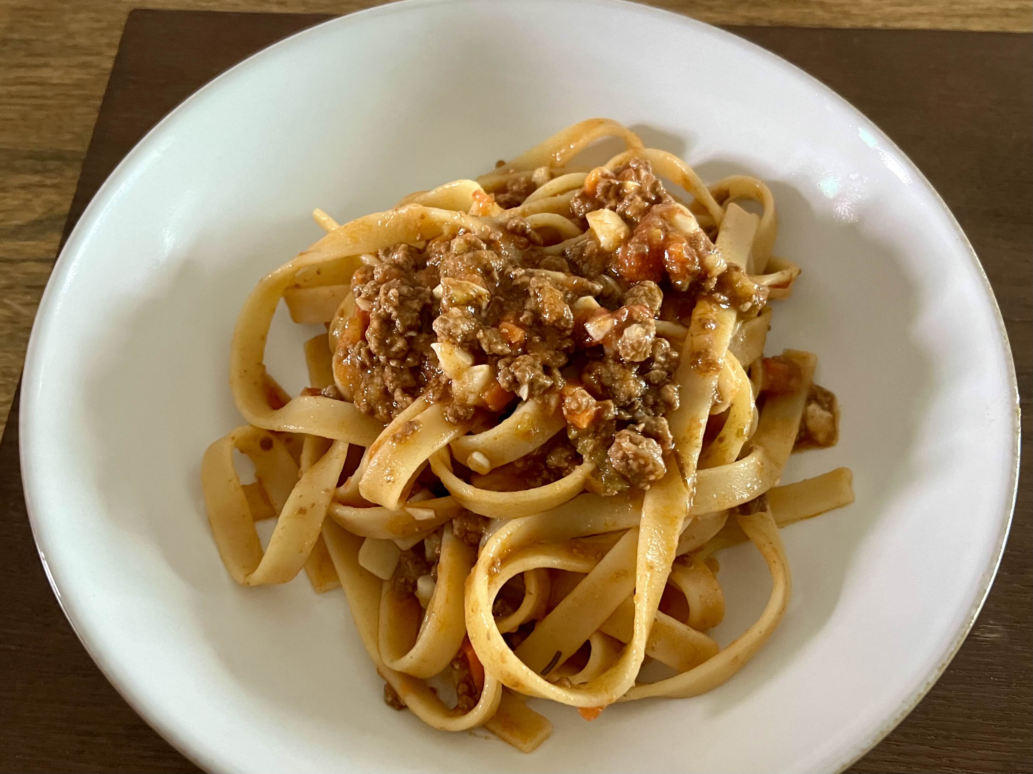 라구 소스 만들어서 냉동실에 소분해서 보관해도 된다. 급할 때 꺼내서 이렇게 무쳐 먹으면 속도 편하고 빠르게 한 끼를 해치울 수 있다.