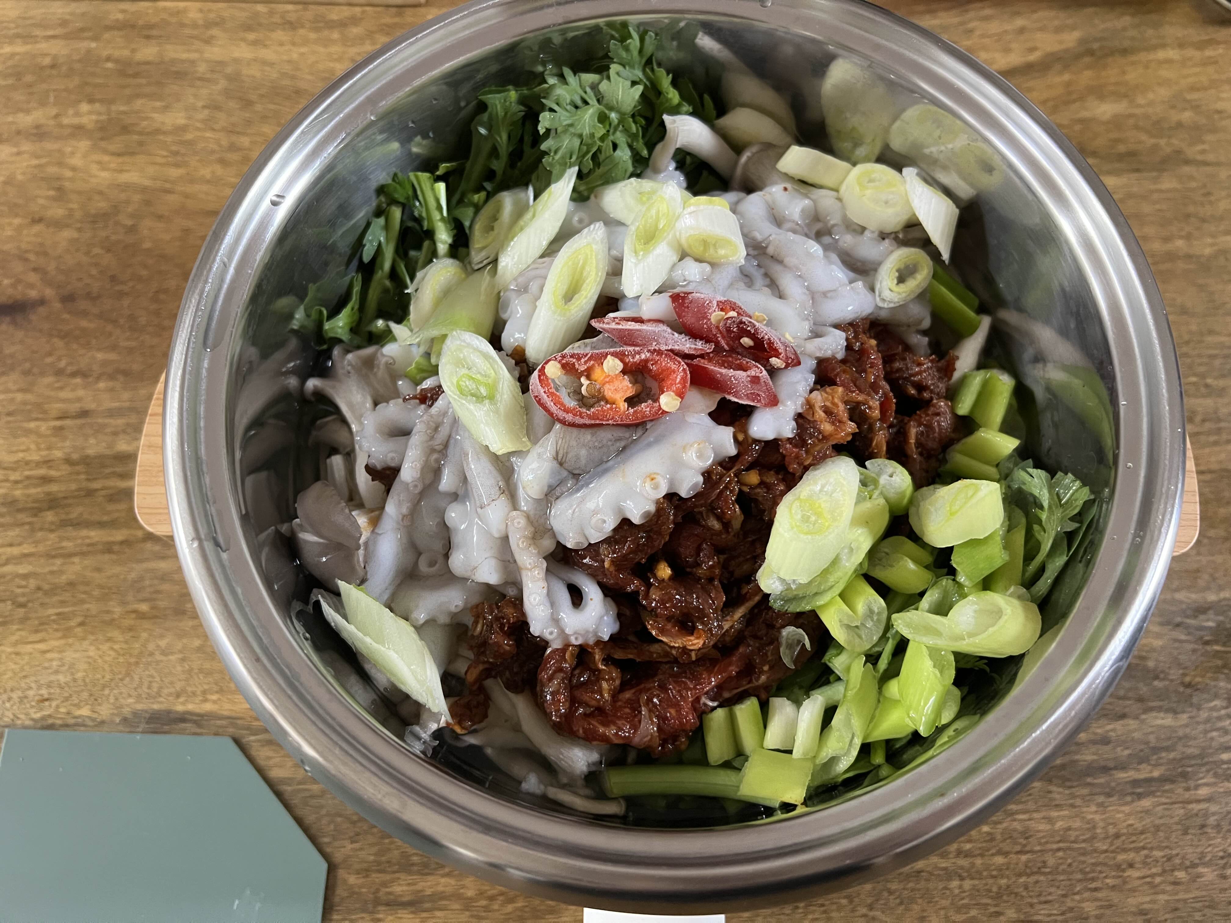 주꾸미가 싱싱한 게 들어 와서 오랜만에 볶음을 했다. 한 번 데쳐서 볶을 때 물기가 없게 했다.
