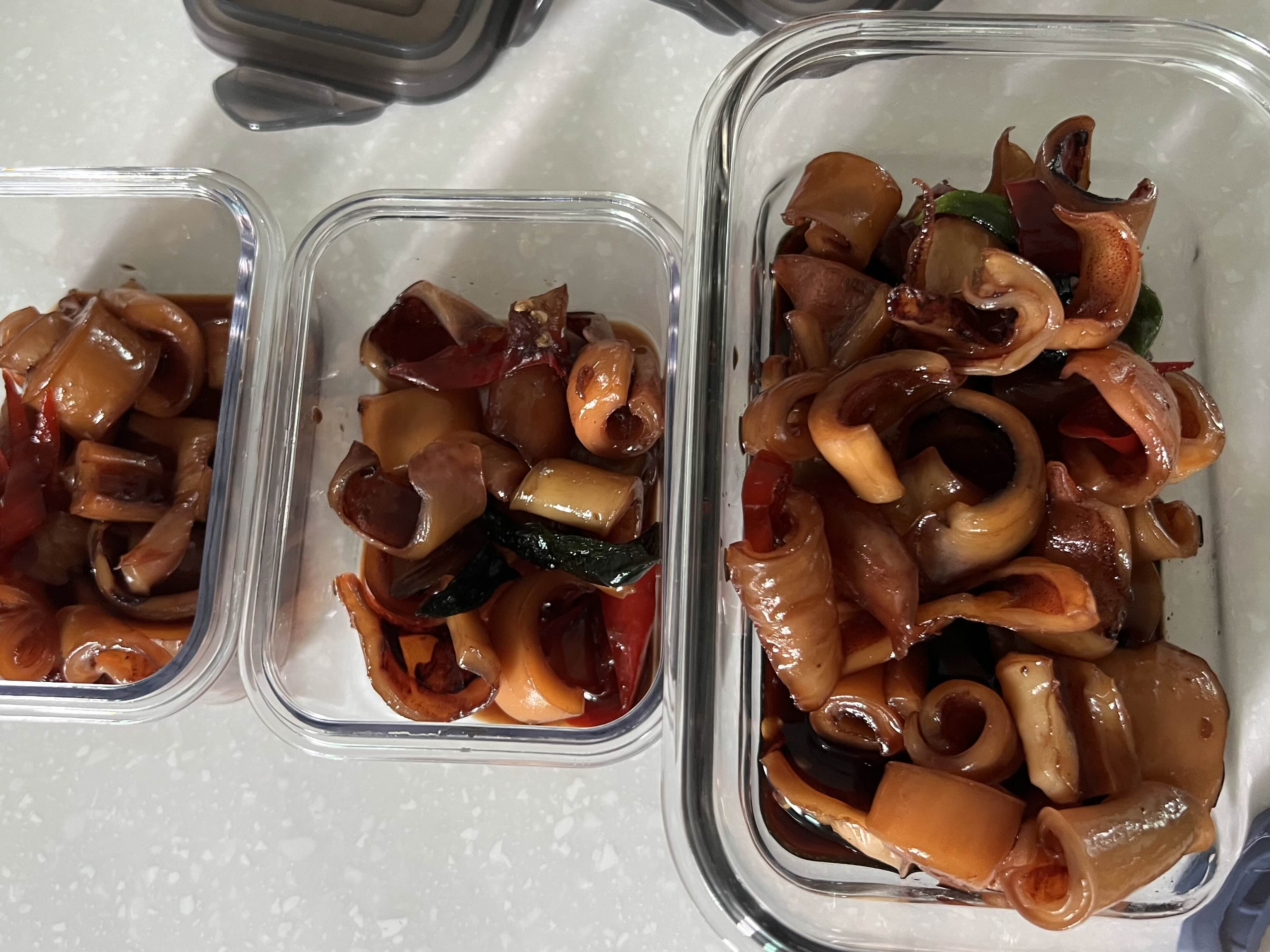 오징어를 건조기에 넣고 반건조로 만든 후에 간장조림물 만들어서 했다. 한동안 너무 맛있어서 이것으로 밥을 잘 먹었다.