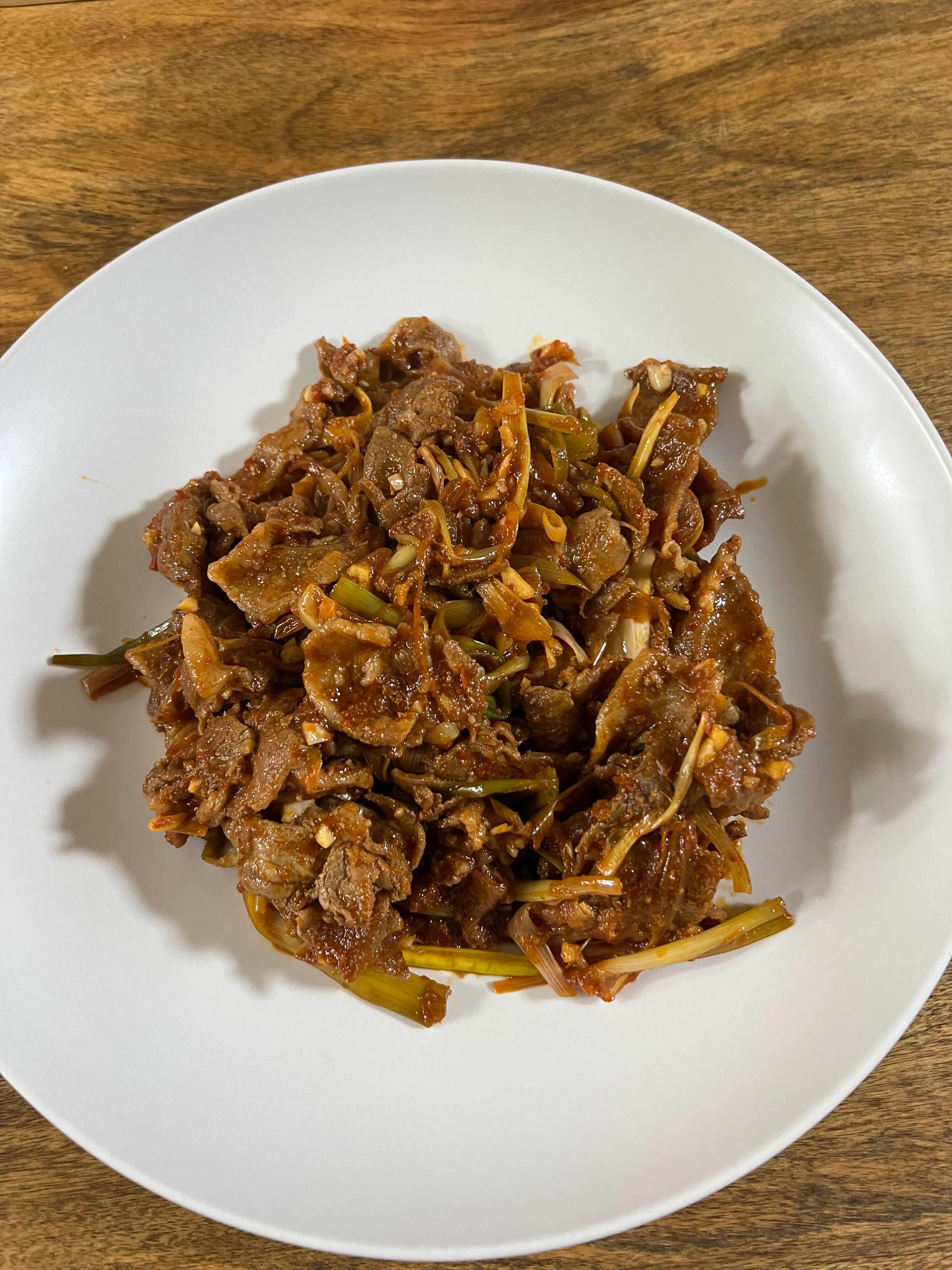 이건 샤브용 소고기를 볶은 것 같다. 마라 소스를 좀 넣은 듯