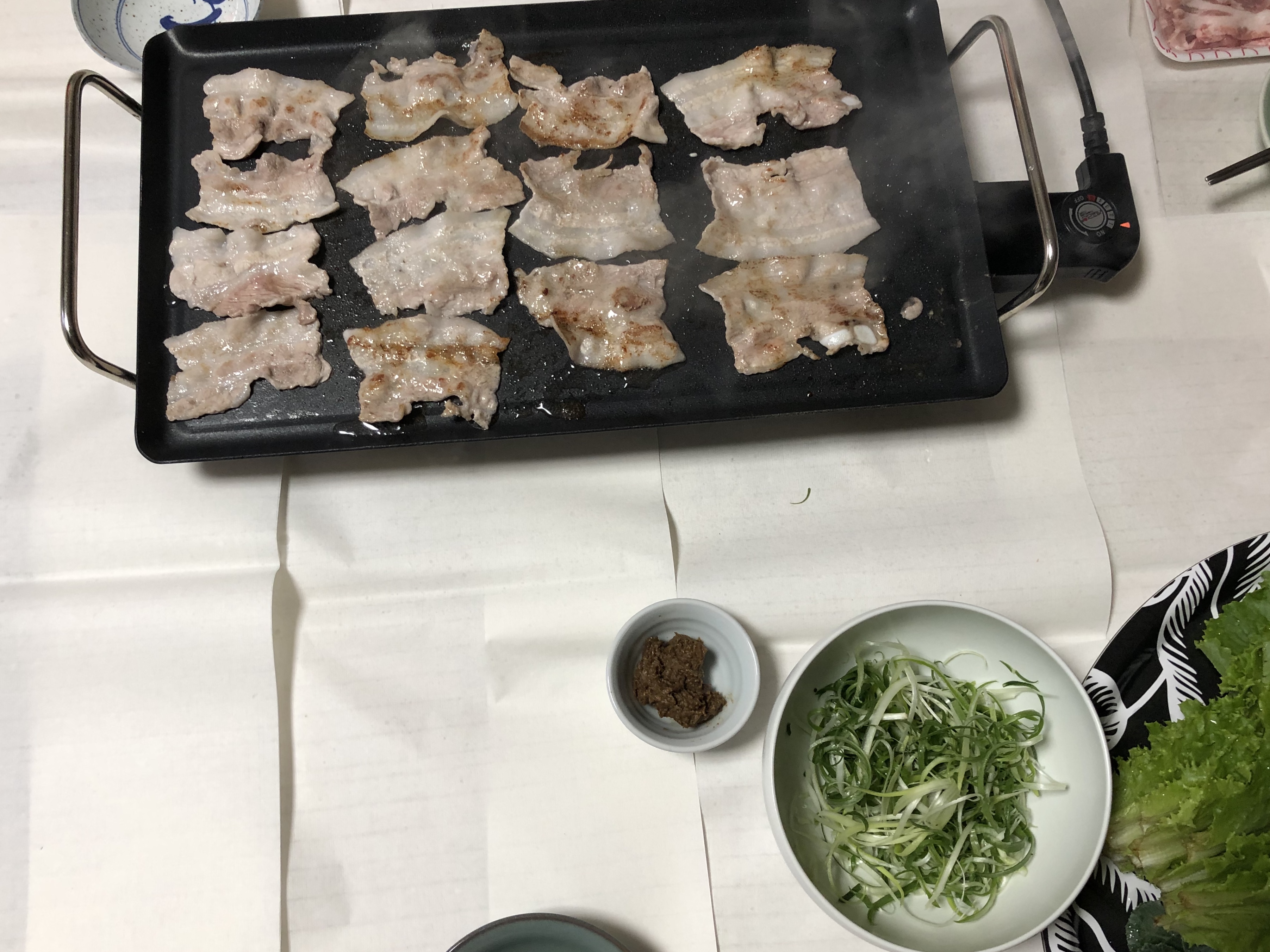 남는 화선지가 많아서 최대한 깔고 전기구이판 꺼냈다. 각자 알아서 구워 먹는 시스템