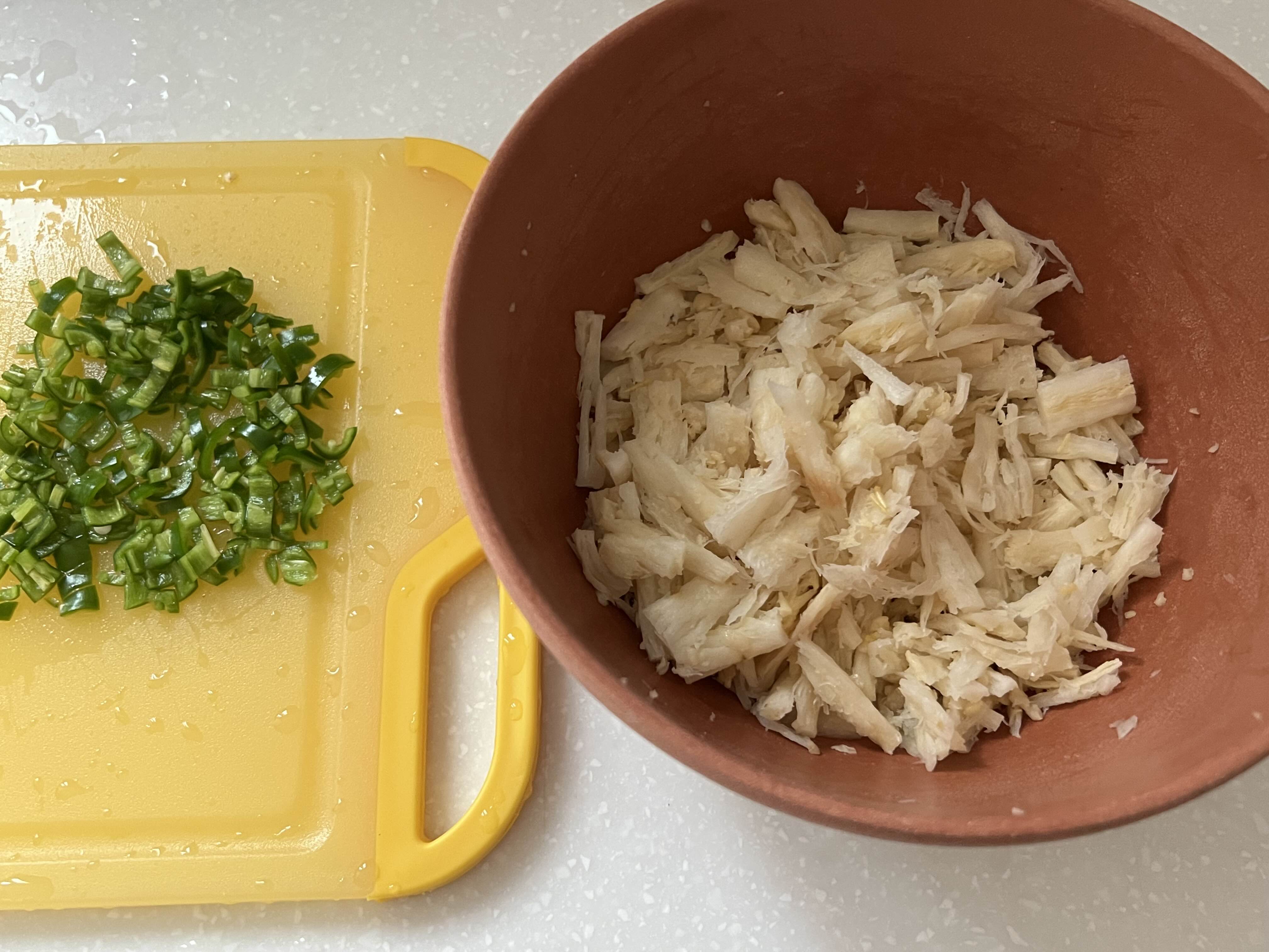 청양고추 씨 빼고 송송썰고, 더덕도 짧게 잘라 으깨 둔다.