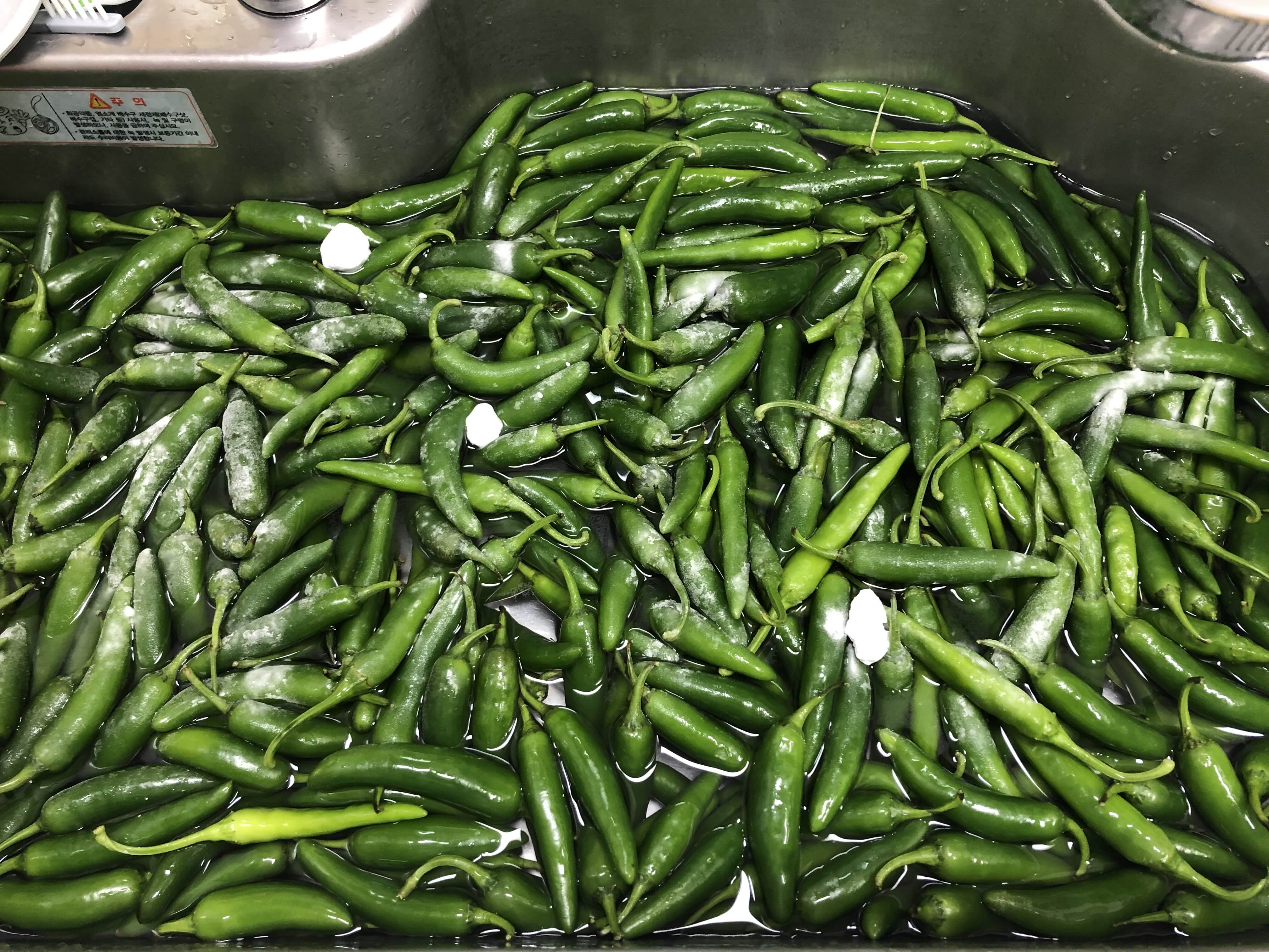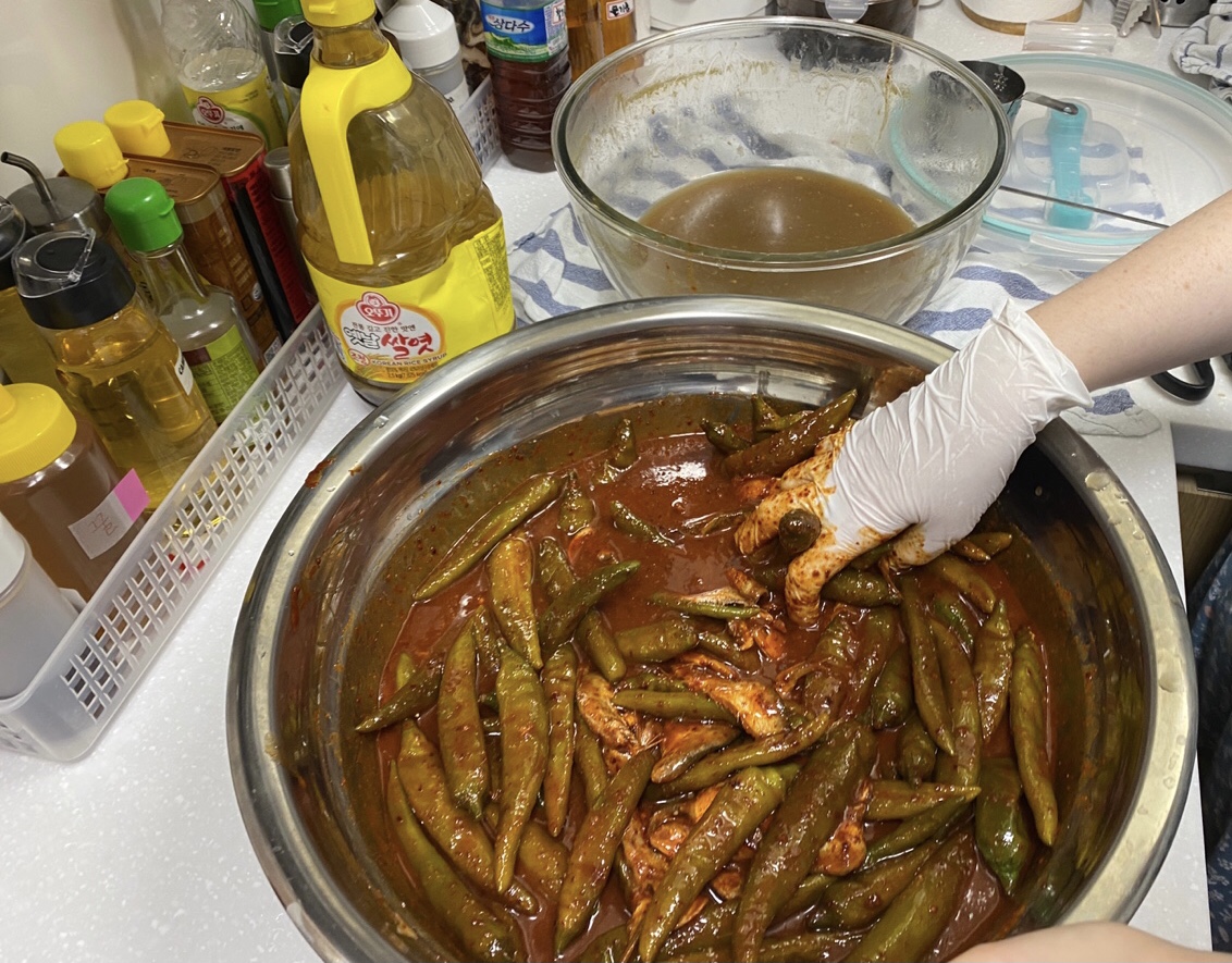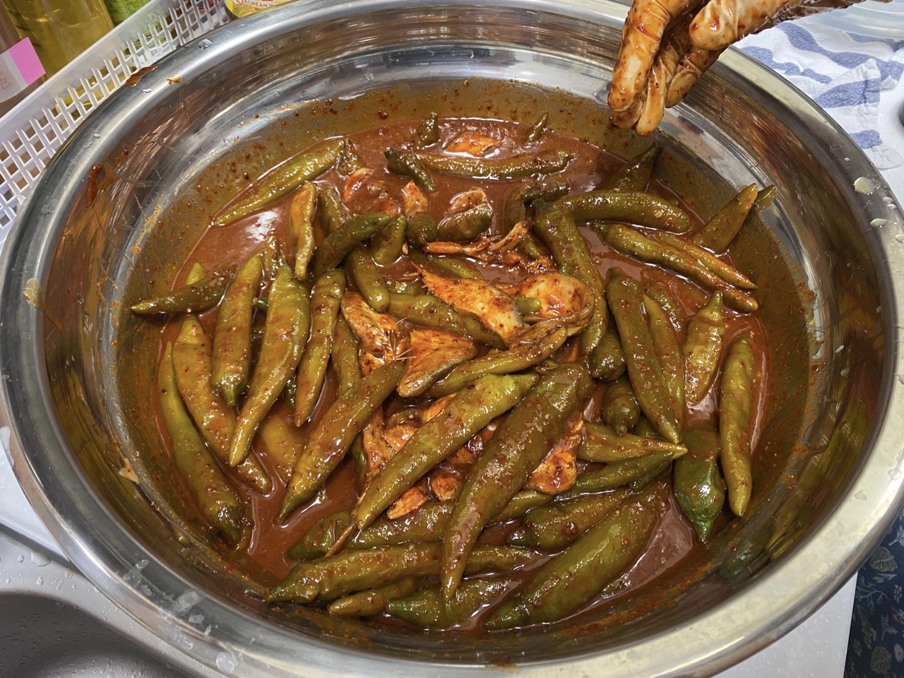 (우리 집은 매운 것을 못 먹어서, 청양고추 6개, 오이맛 고추 20개, 풋고추 10개를 했다.)