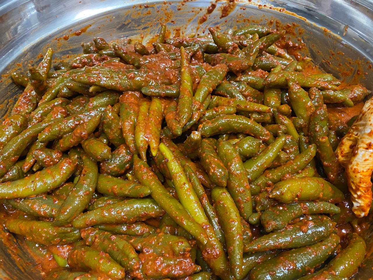 모닝고추로 하면 오래 두어도 더 상큼하고 맛있을 것 같다고 해서, 모닝고추를 절반 넘게 했다.